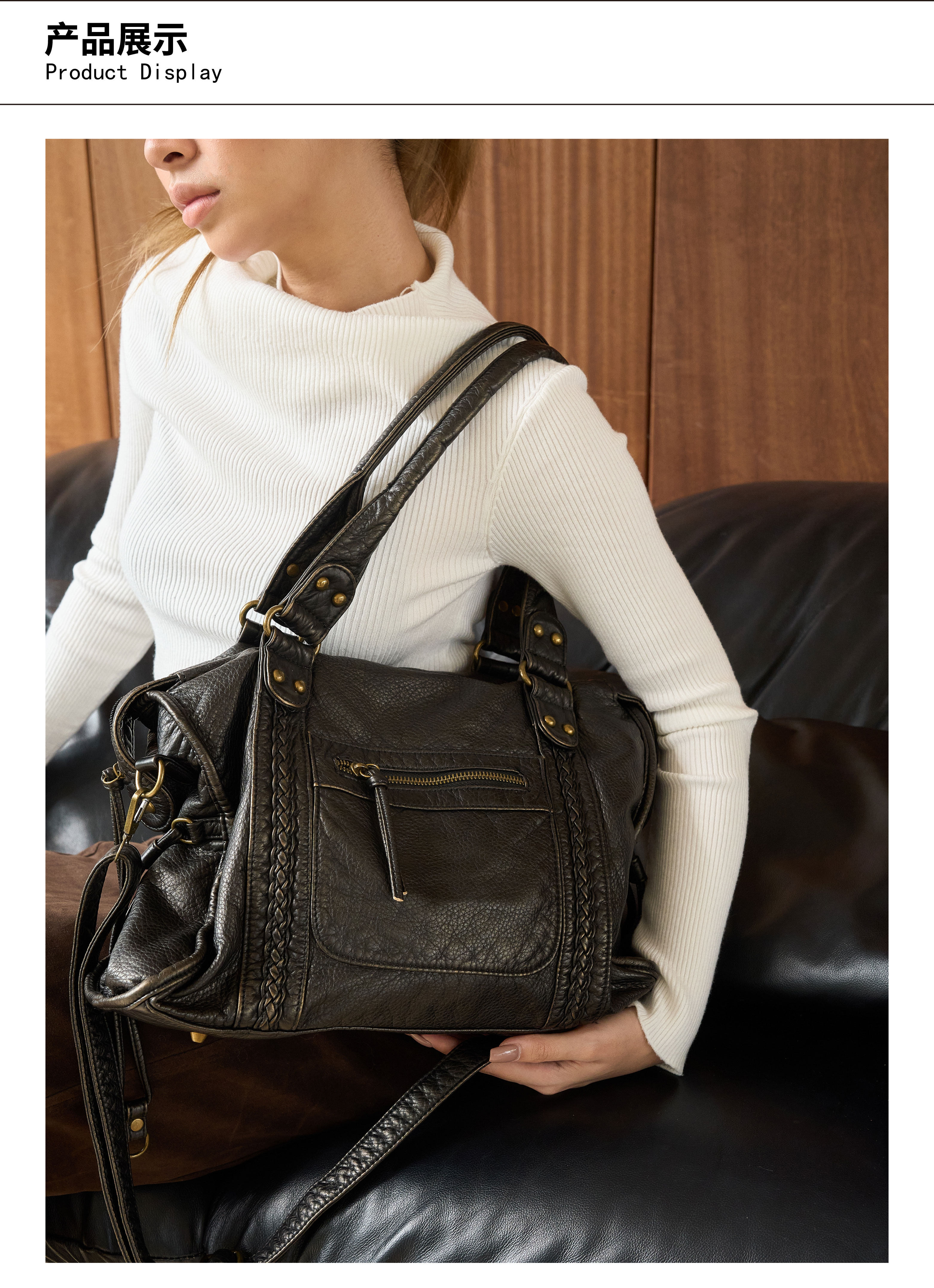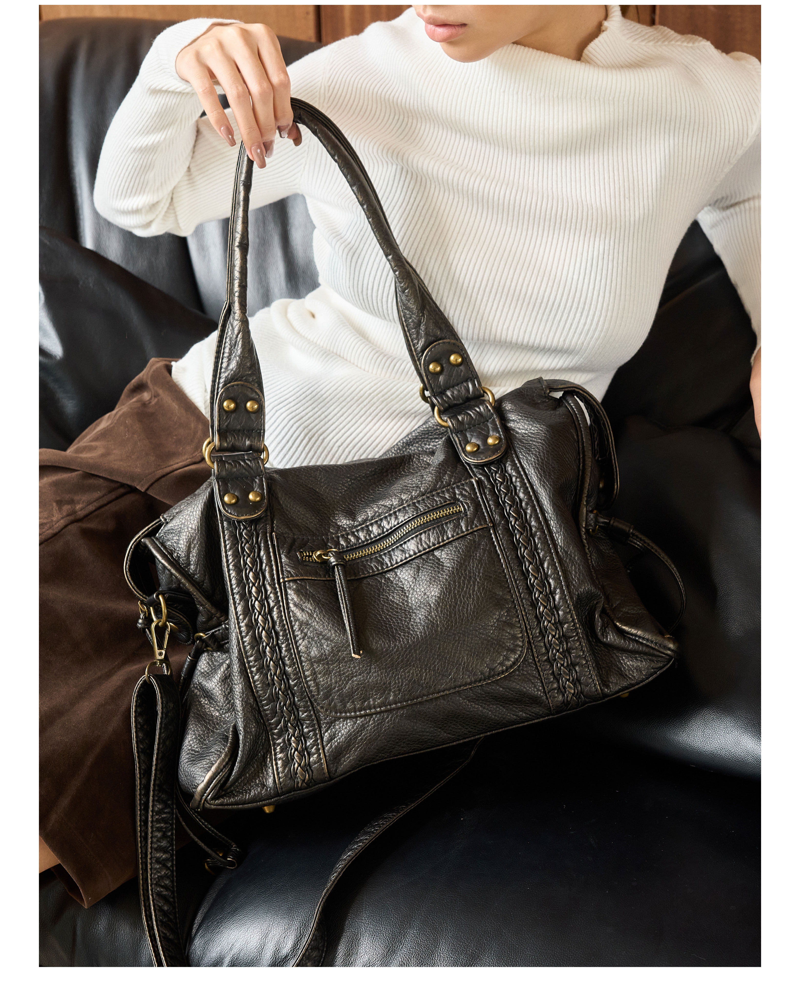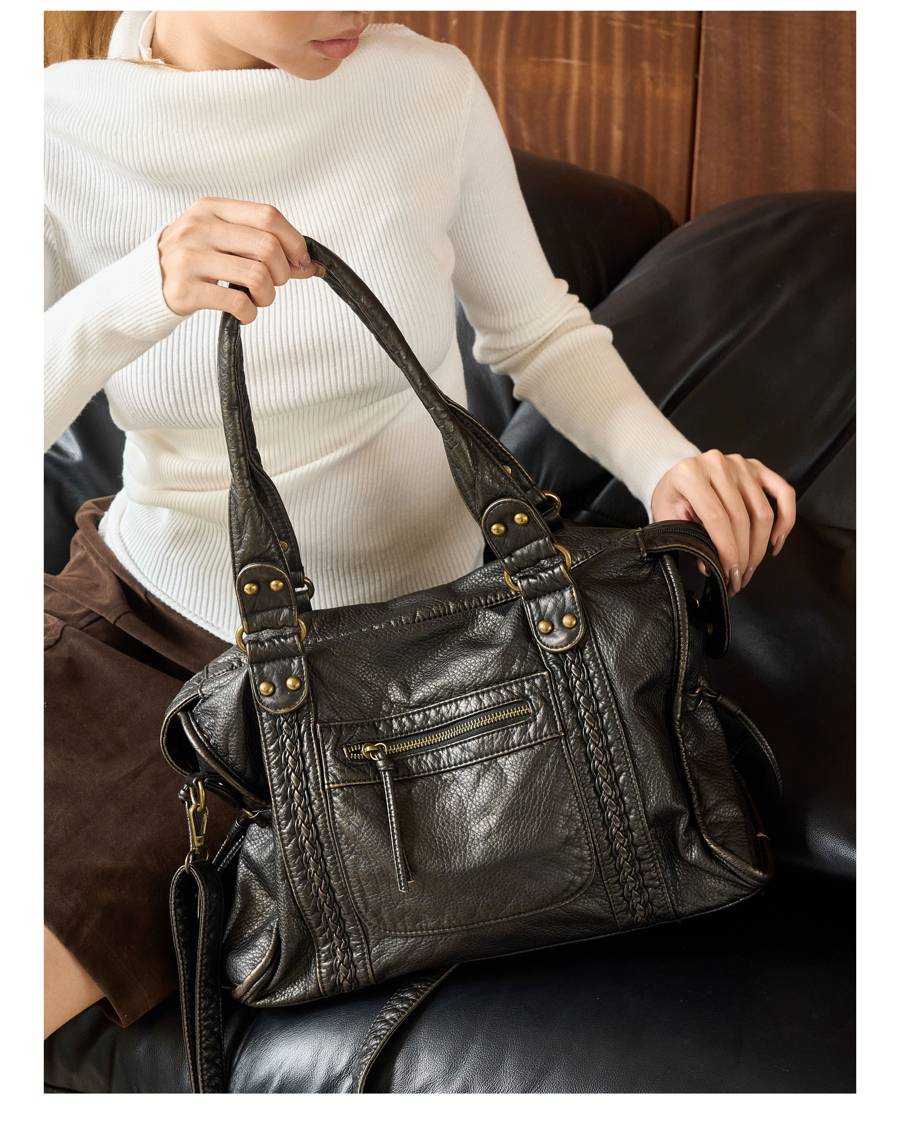2026初春新款法式復古機車包托特包廢土風軟皮單肩斜後後背包大容量包