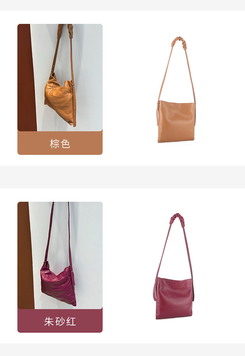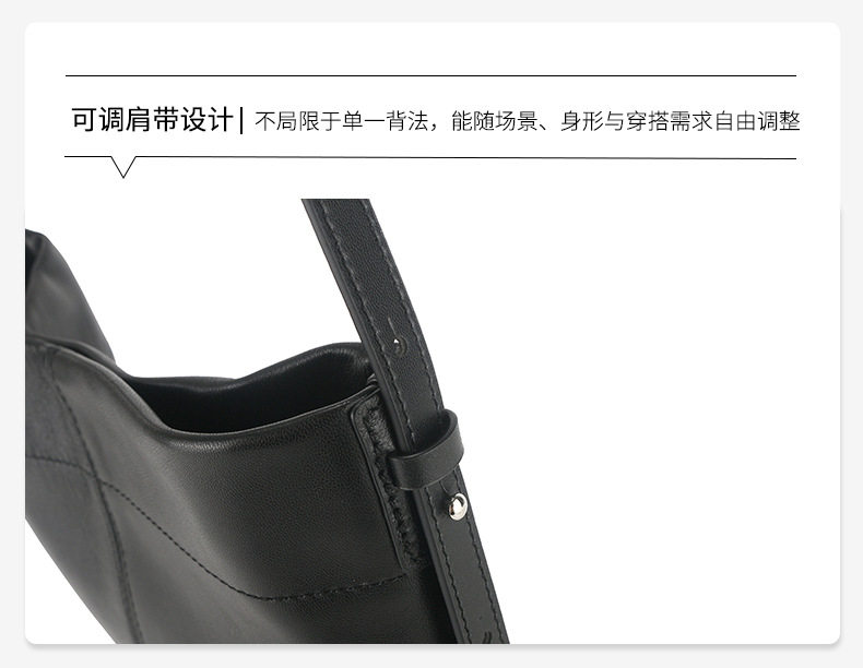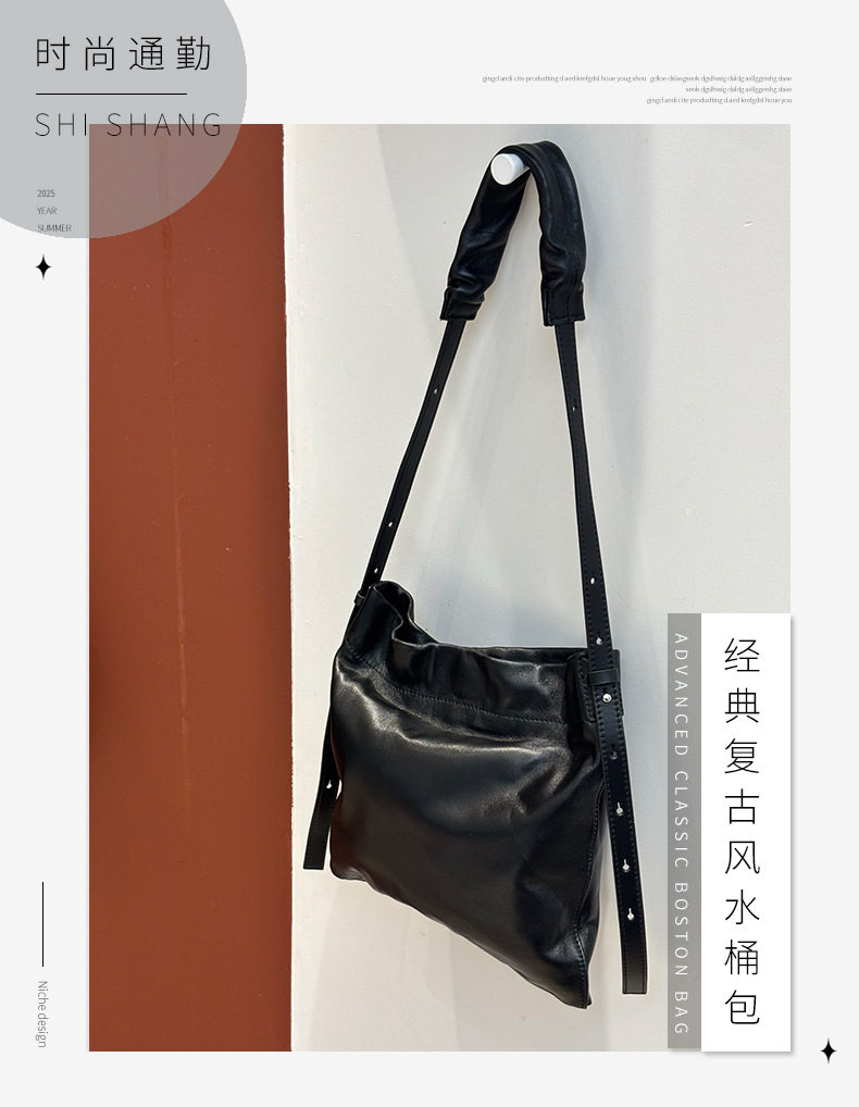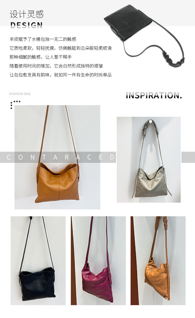 小衆真皮女包新款簡約托特包通勤百搭羊皮單肩包大容量斜背水桶包