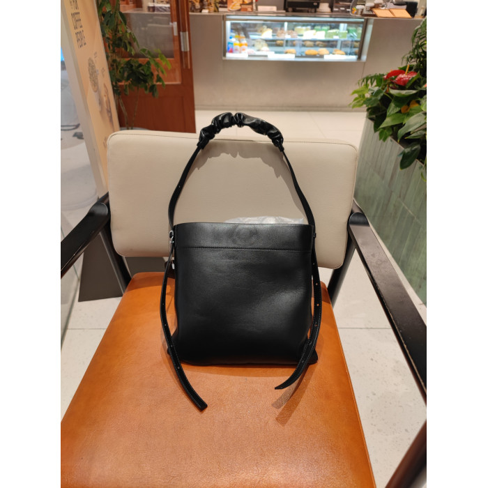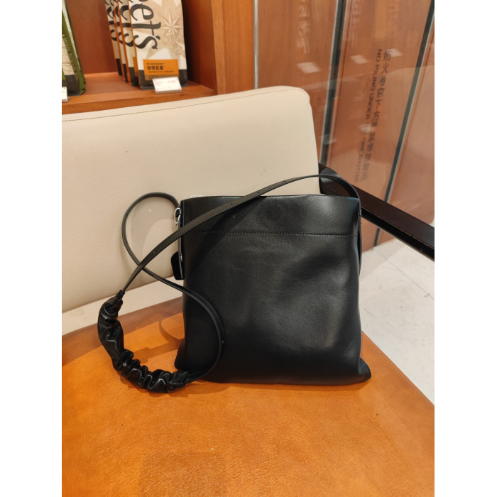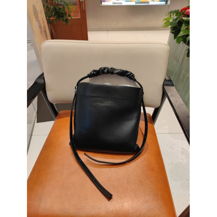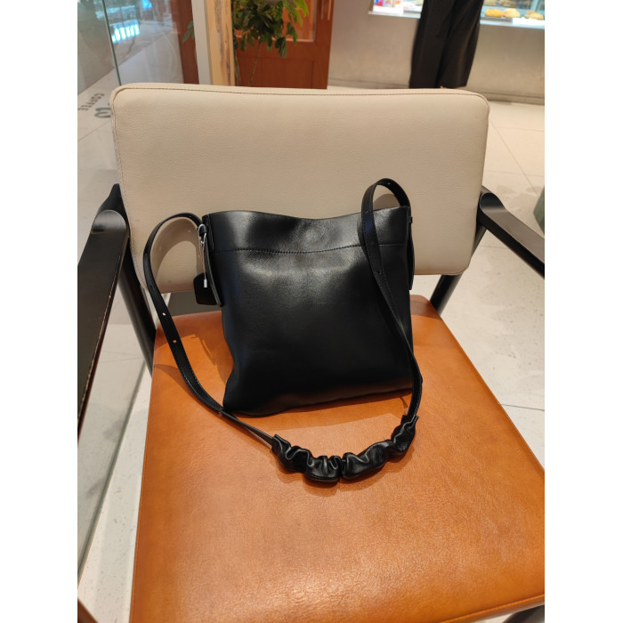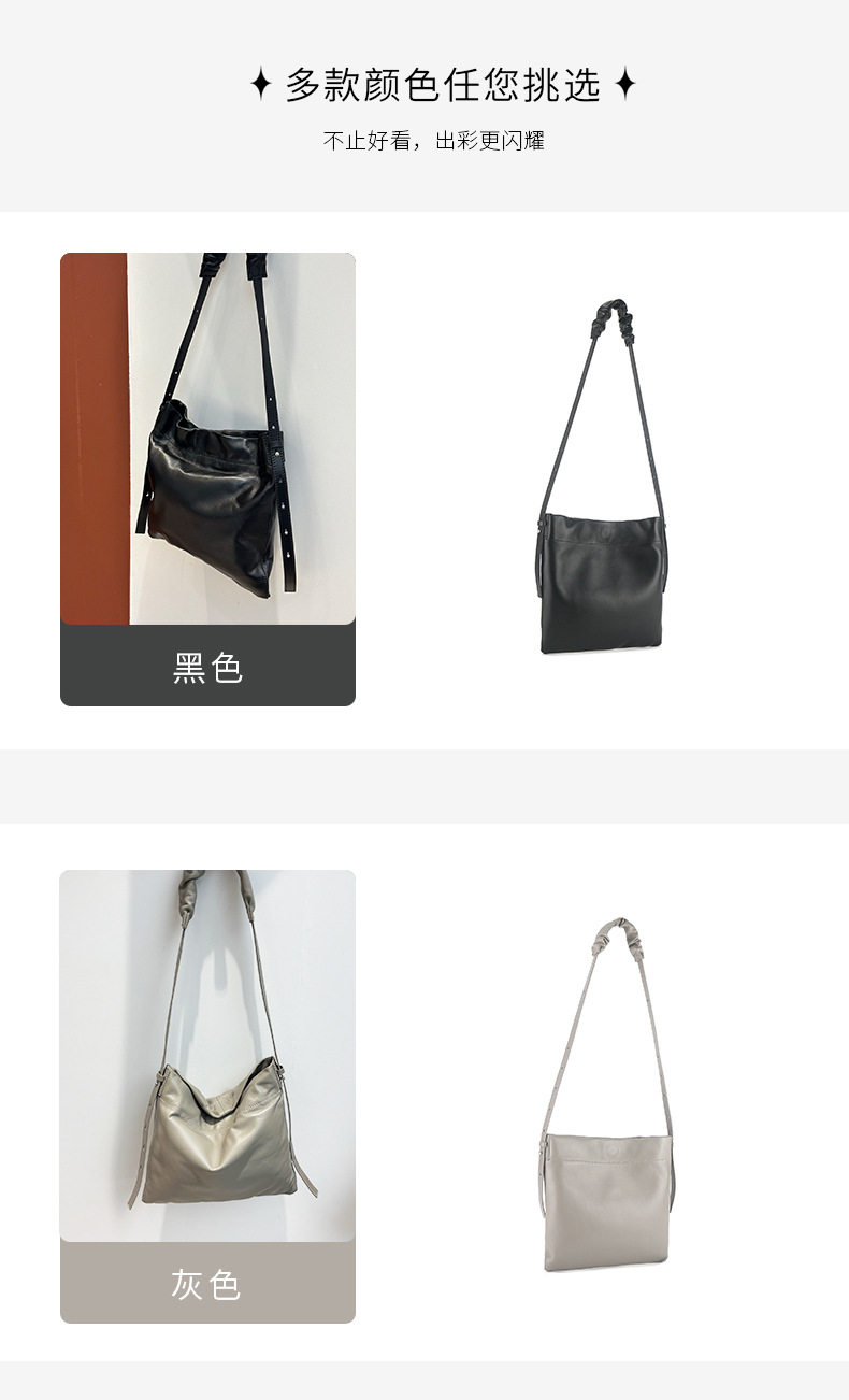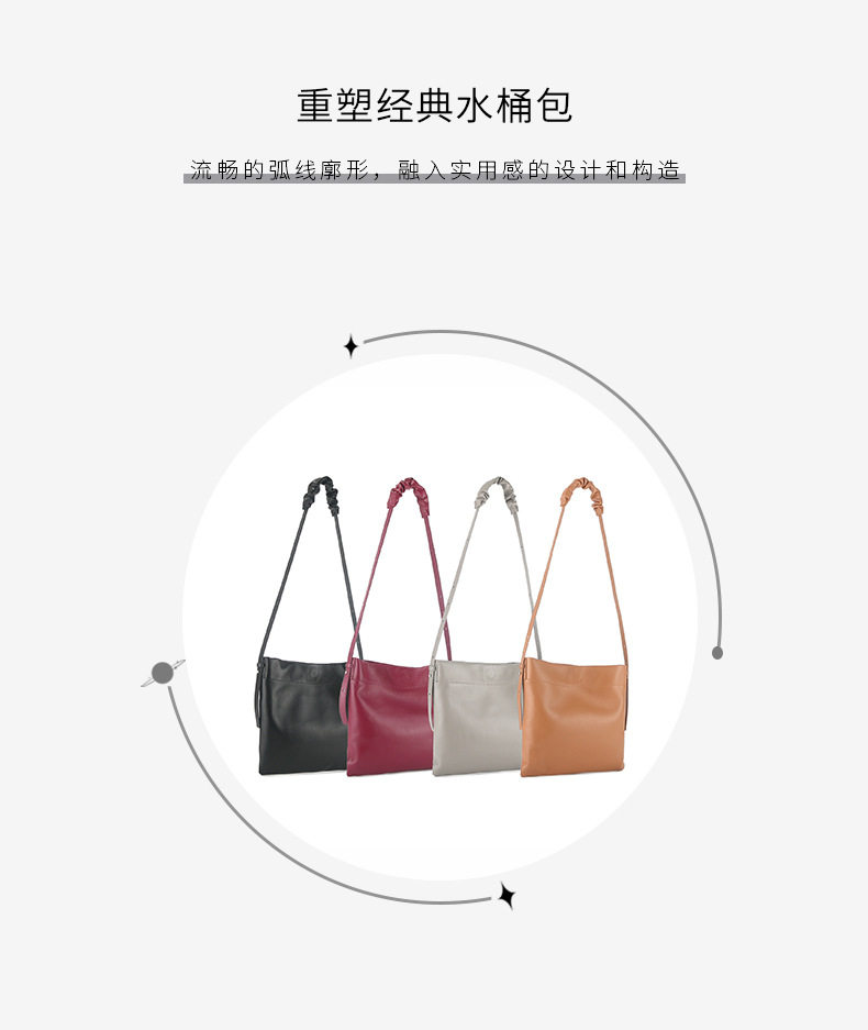 小衆真皮女包新款簡約托特包通勤百搭羊皮單肩包大容量斜背水桶包