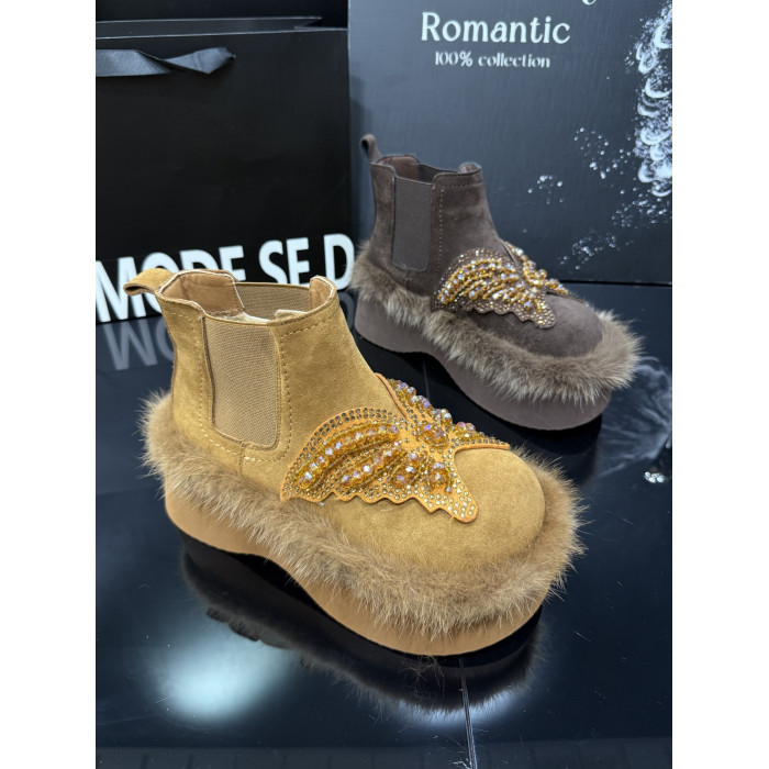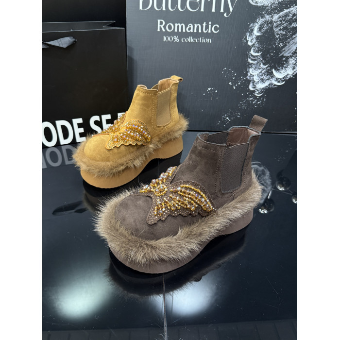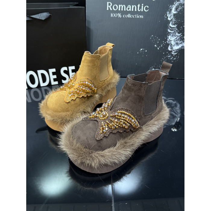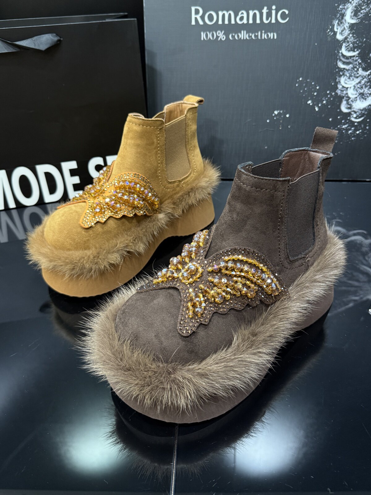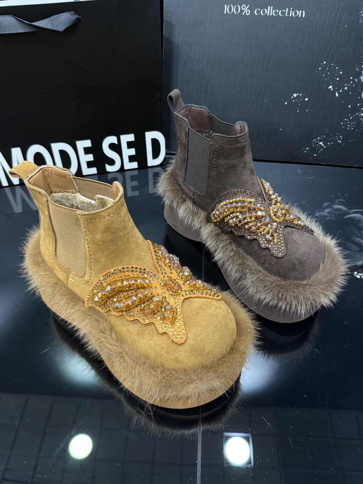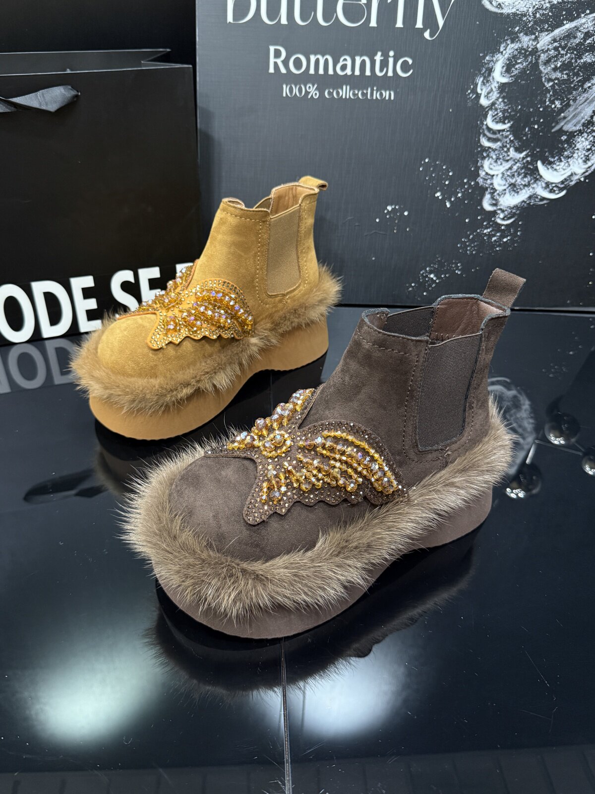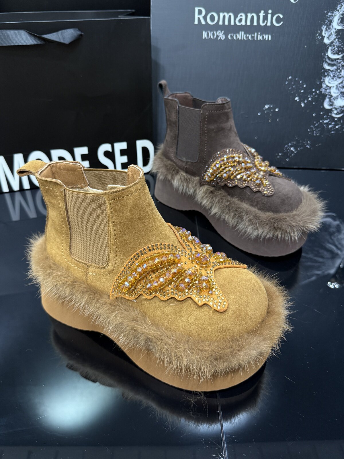 磨砂真皮松糕厚底加絨裡保暖菸筒靴2025冬季新款洋氣小短靴子女鞋