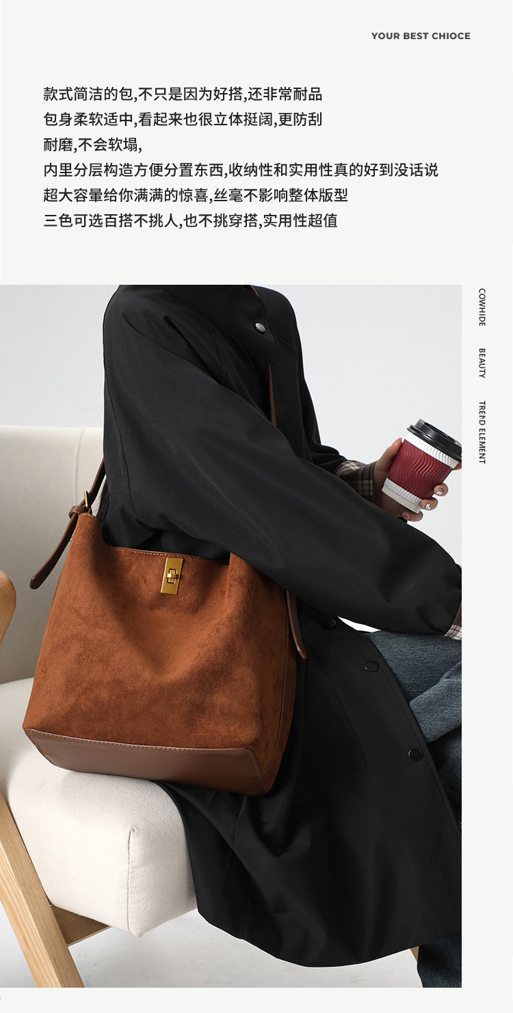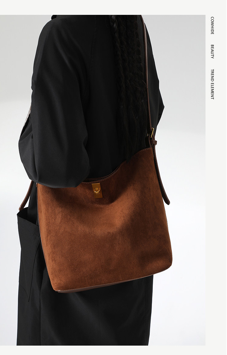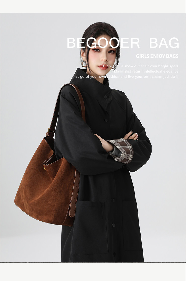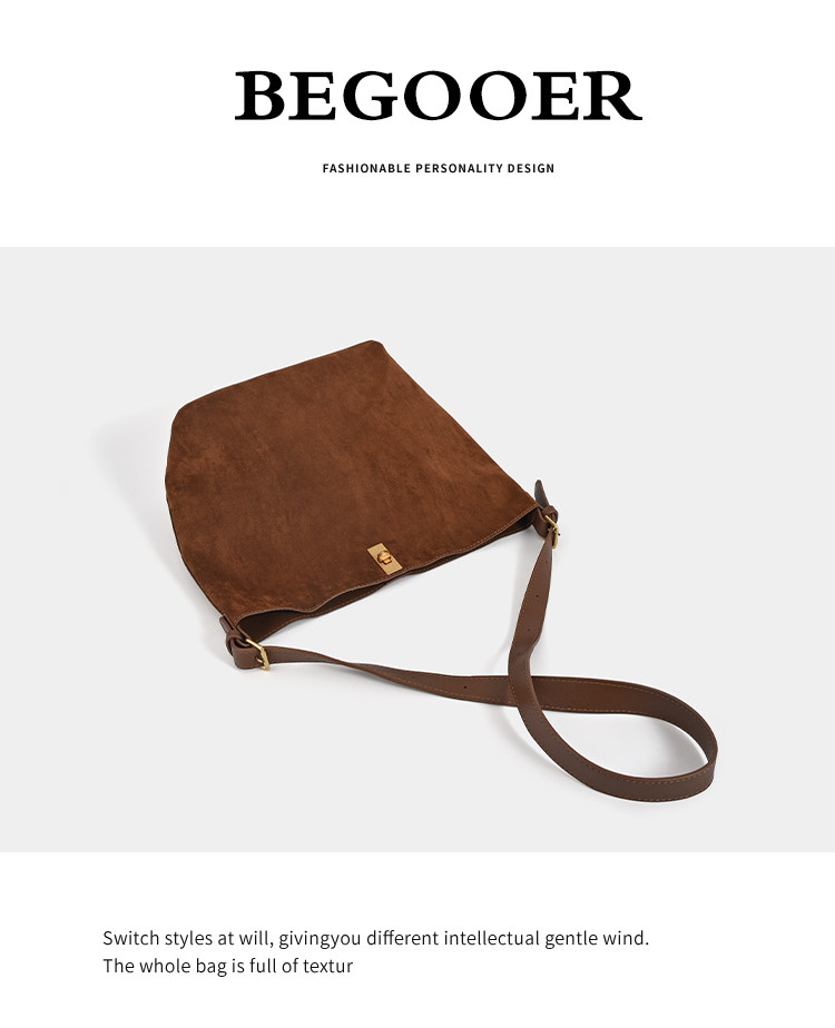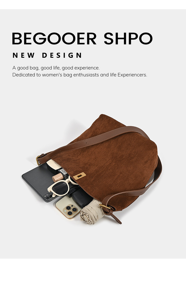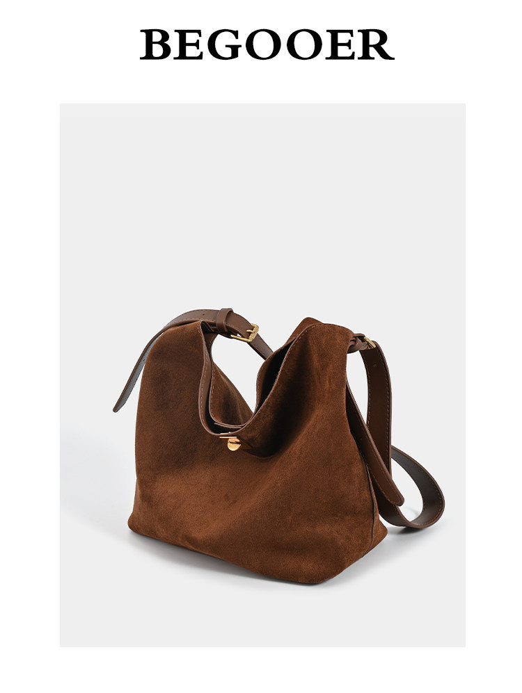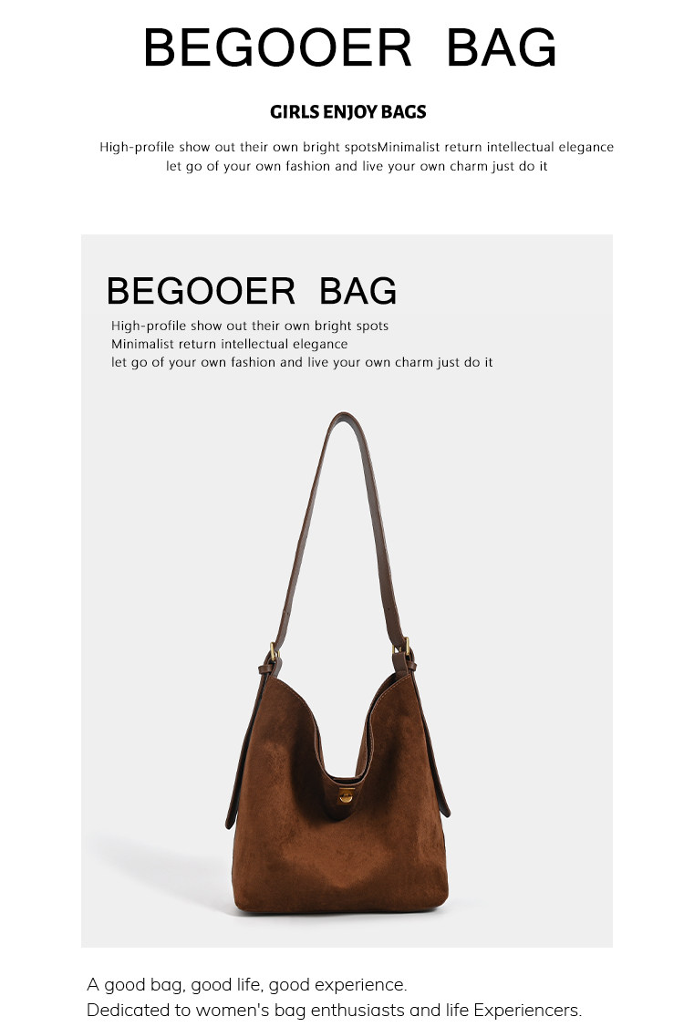 BEGOOER復古絨面通勤水桶包女2026春夏新款氣質大容量單肩斜後後背包