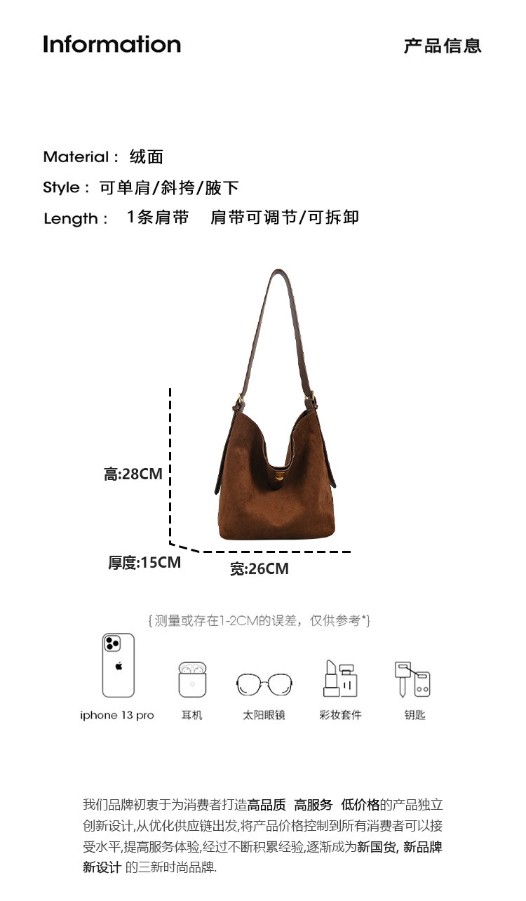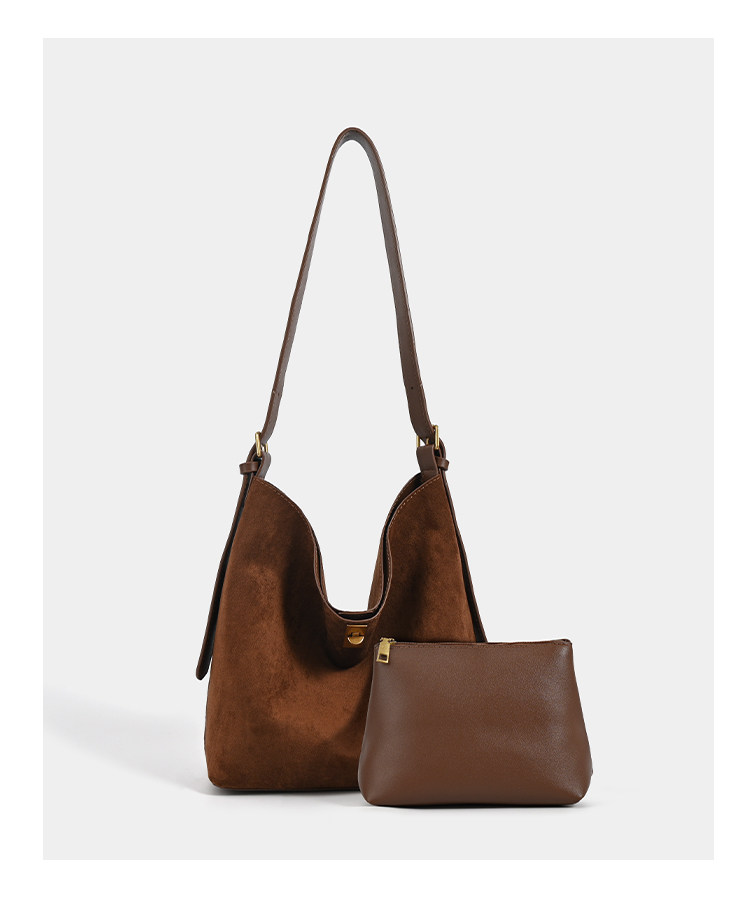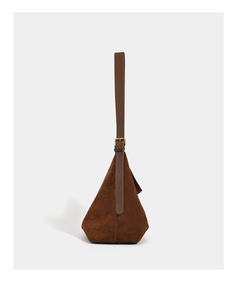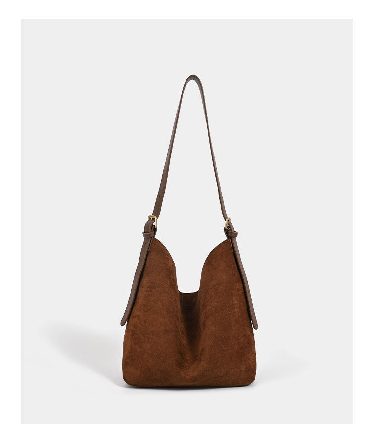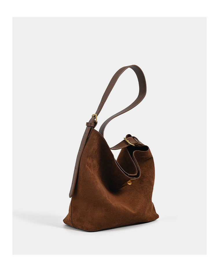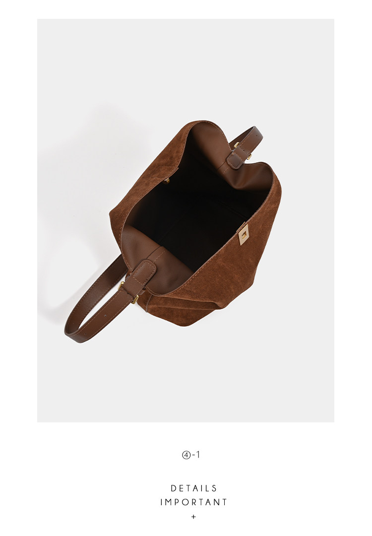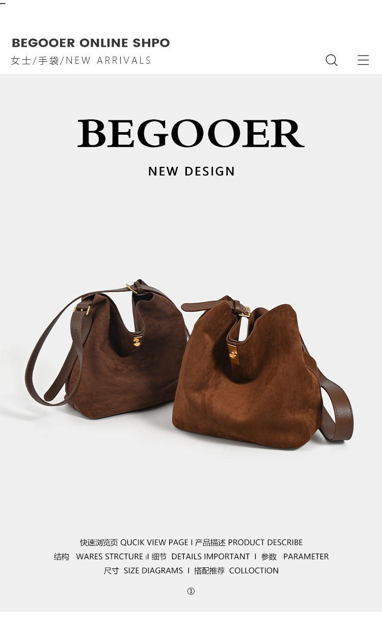 BEGOOER復古絨面通勤水桶包女2026春夏新款氣質大容量單肩斜後後背包