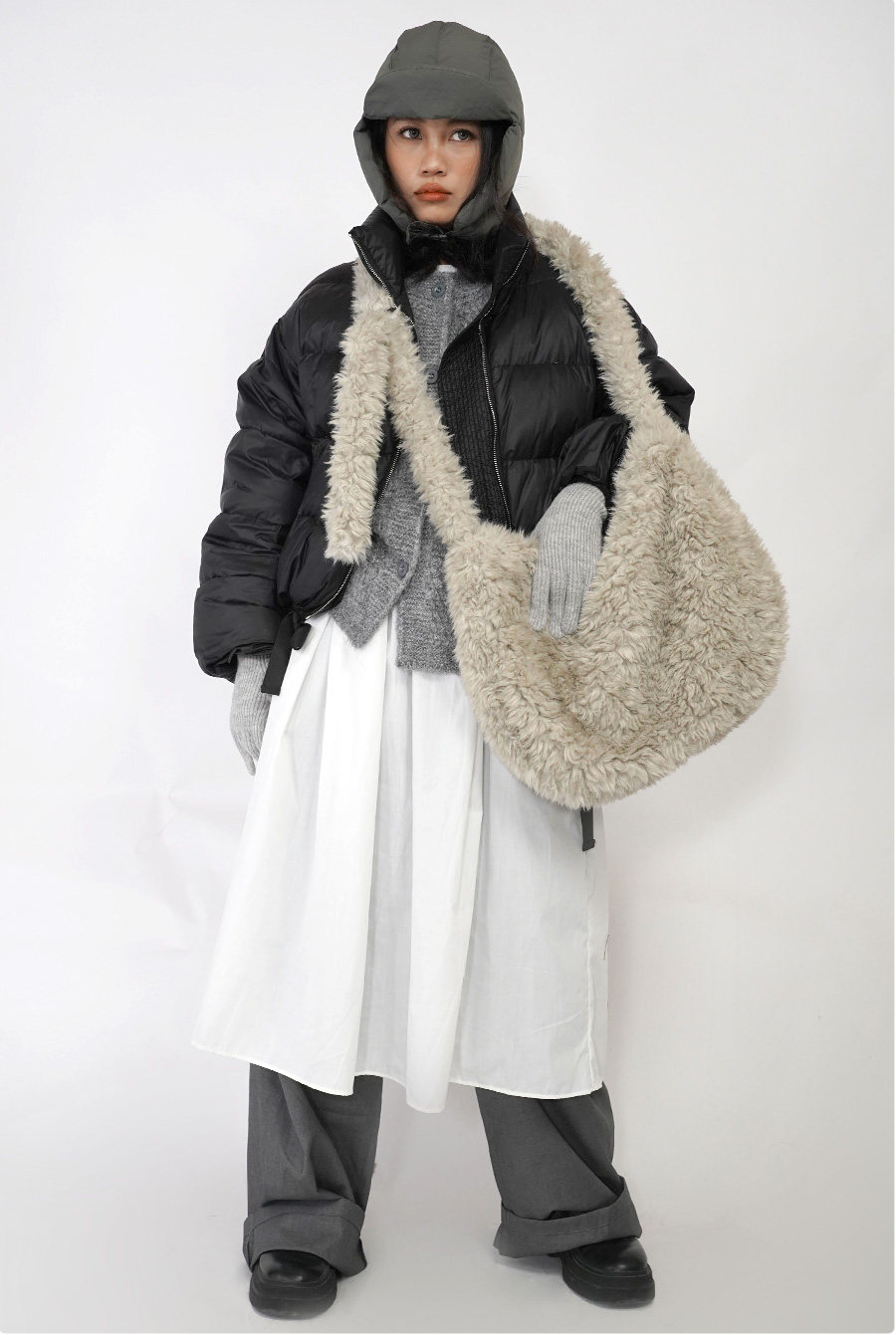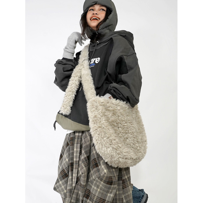 emptyshape空形原創毛毛包斜後後背包百搭大容量秋冬通勤單肩毛絨女包