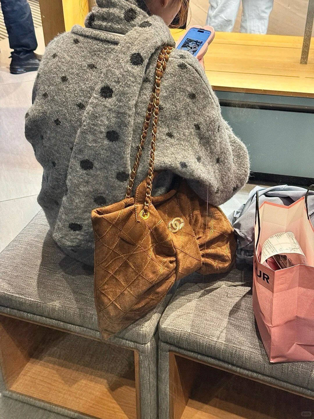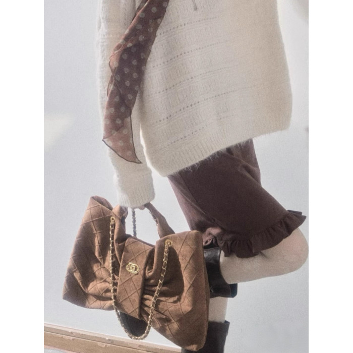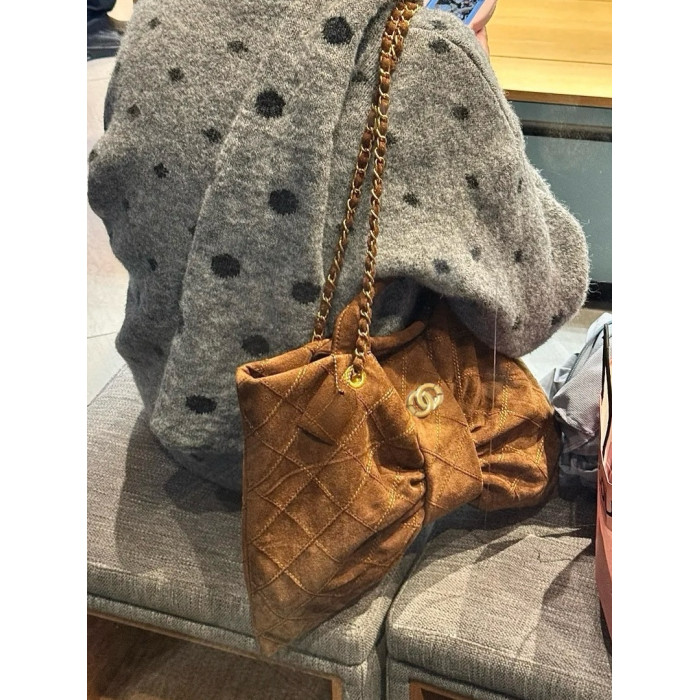 港代高檔真皮菱格鏈條包麂皮腋下單肩包大容量包包高級感輕奢小衆