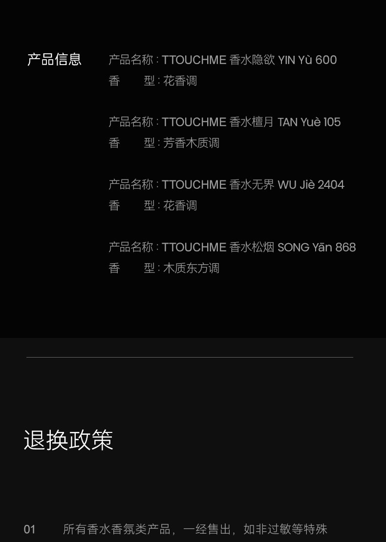 TTOUCHME松菸868香水小衆檀月檀香2404無界男士女士木質淡香禮物