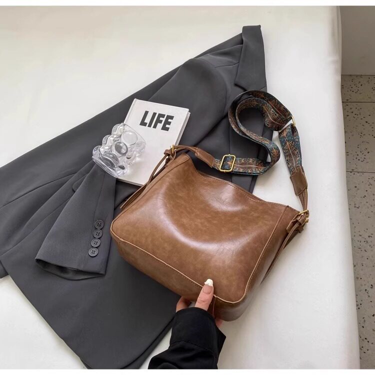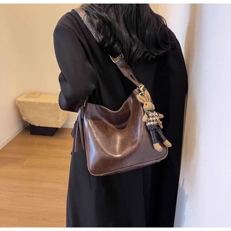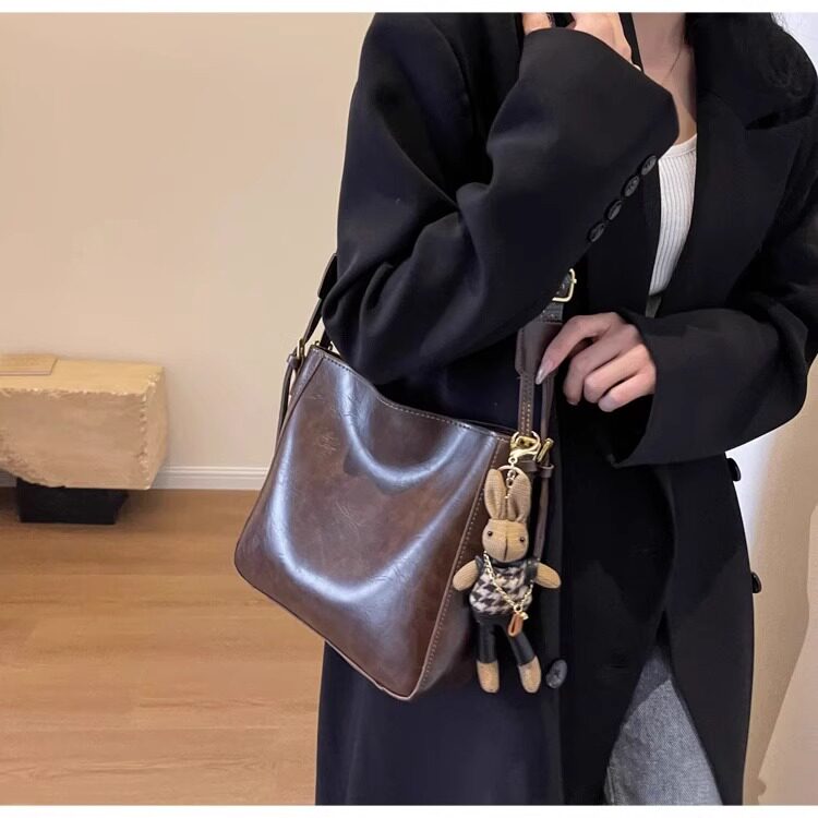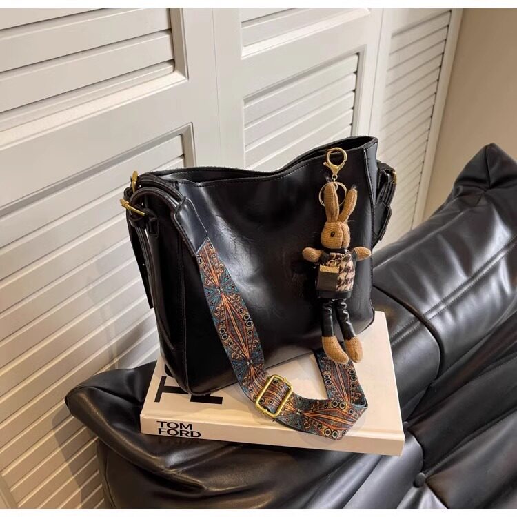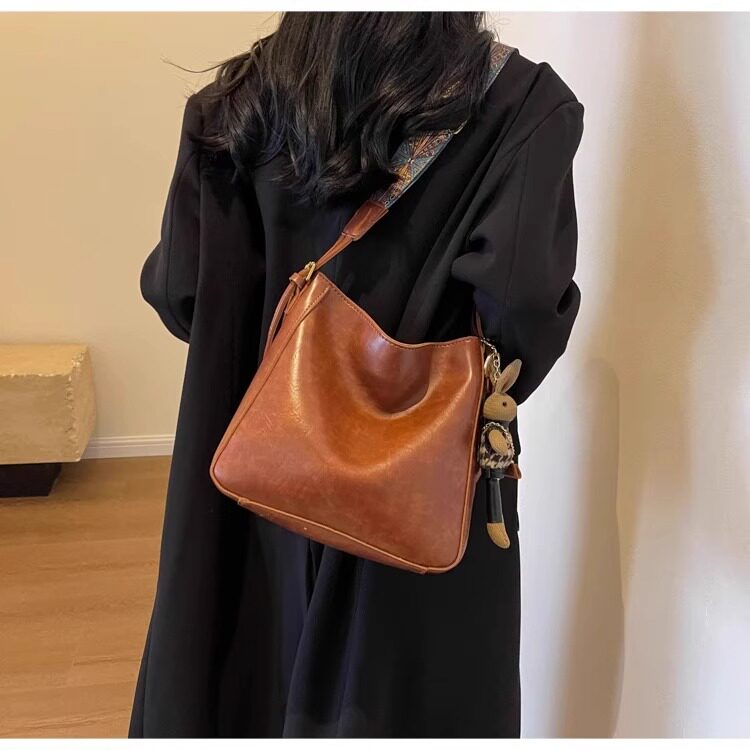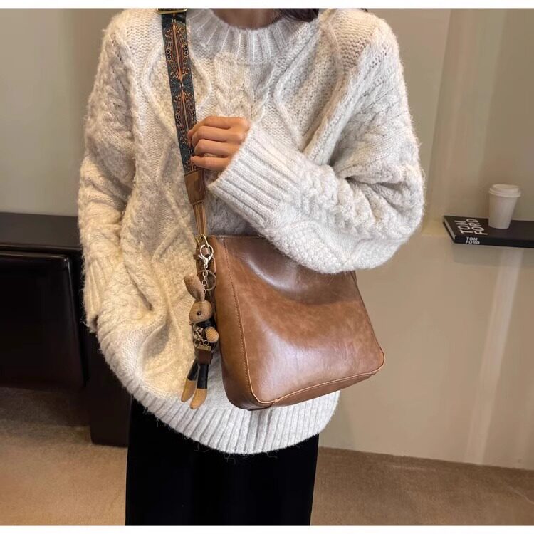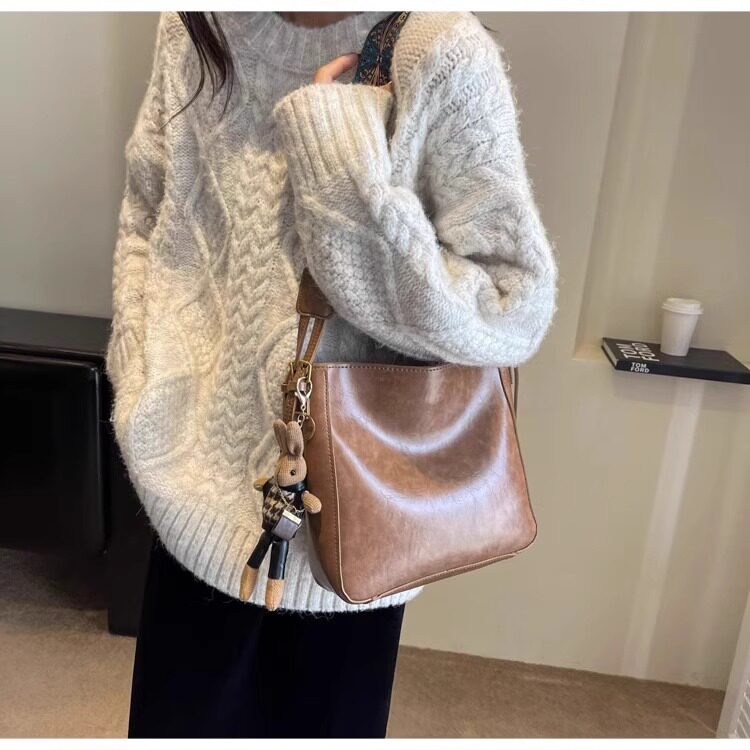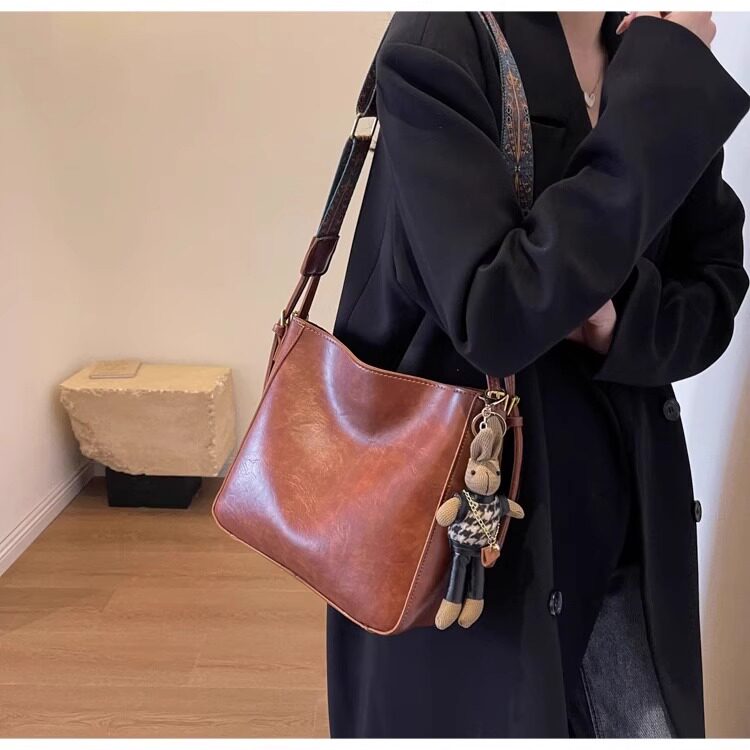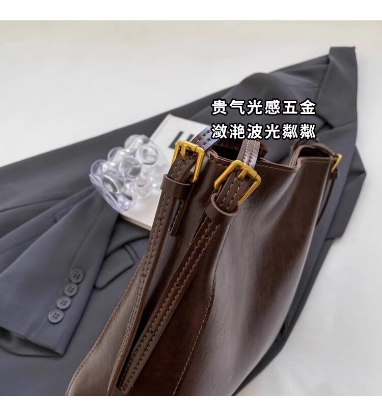 真皮fon&ck寬肩帶斜背水桶包包女士2026新款爆款大容量通勤托特包