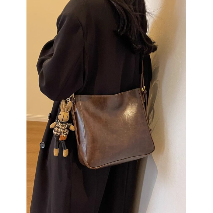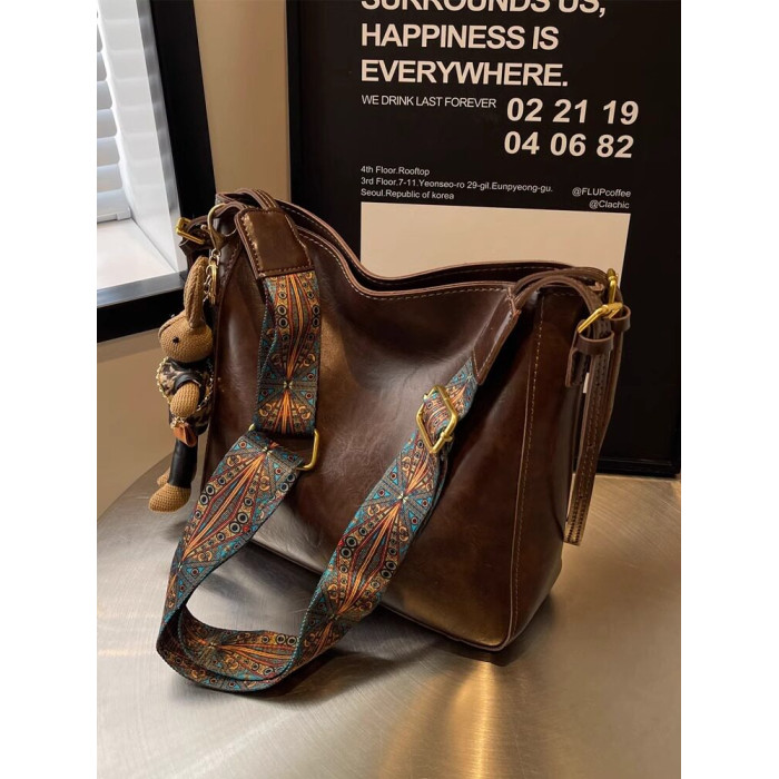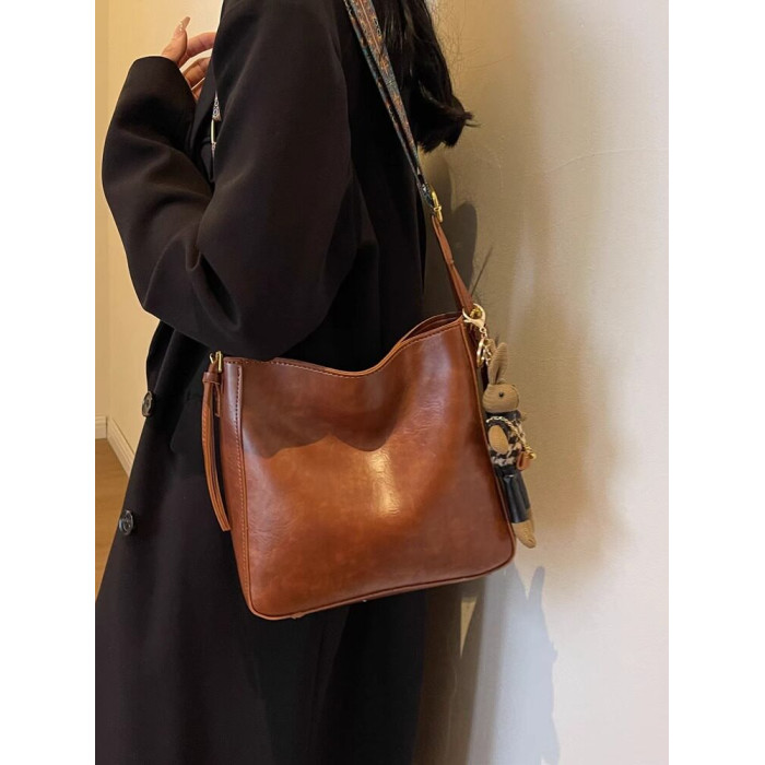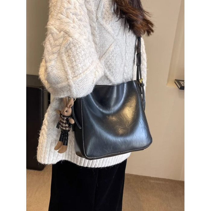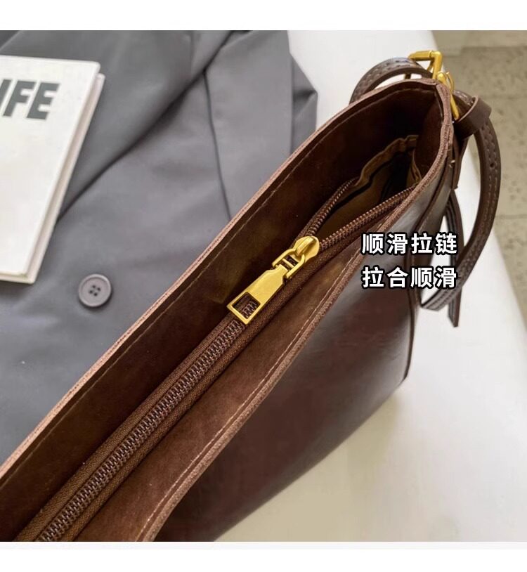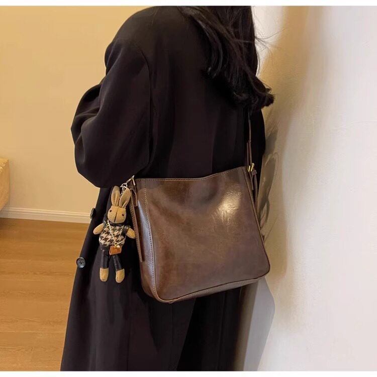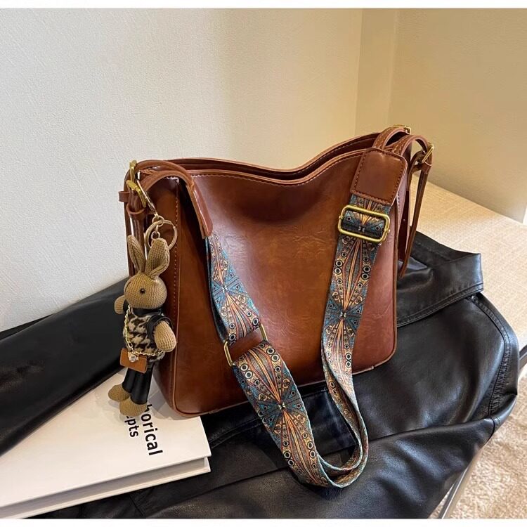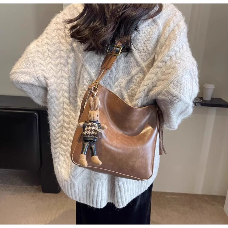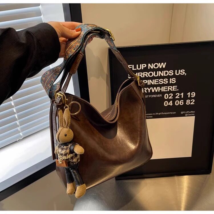 真皮fon&ck寬肩帶斜背水桶包包女士2026新款爆款大容量通勤托特包