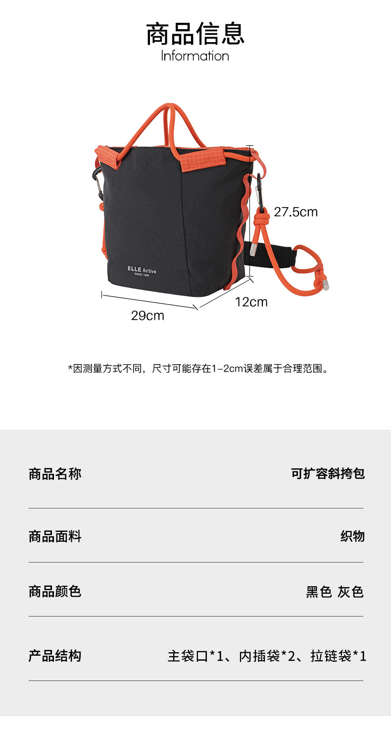 ELLE Active輕戶外簡約高級質感單肩包女大容量輕便斜後後背包時尚
