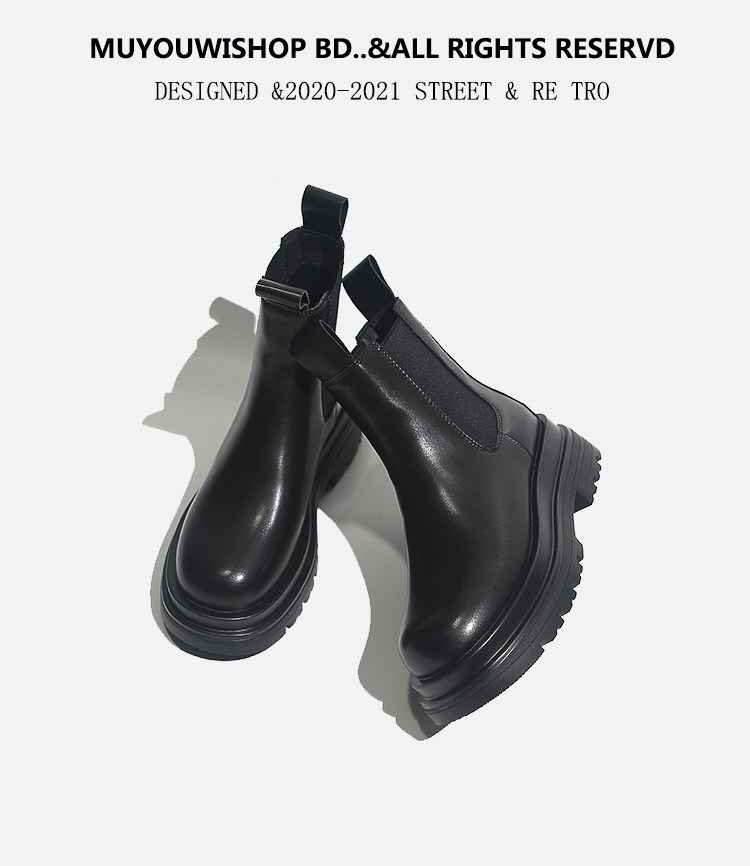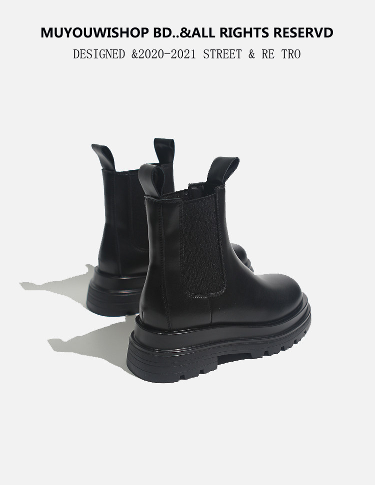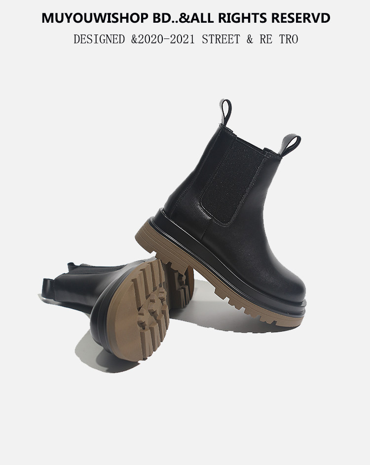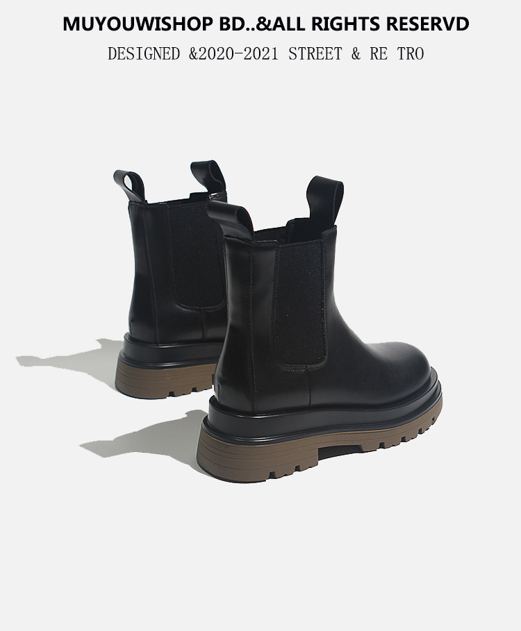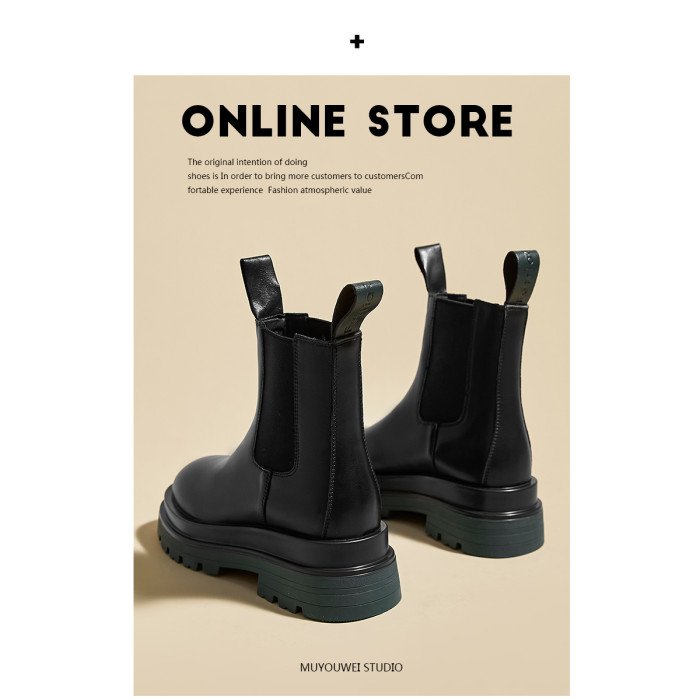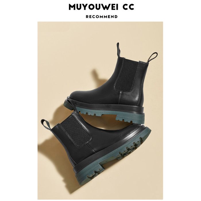 牛皮款~真皮菸筒靴女英倫防滑厚底中筒切爾西靴馬丁靴百搭短靴子