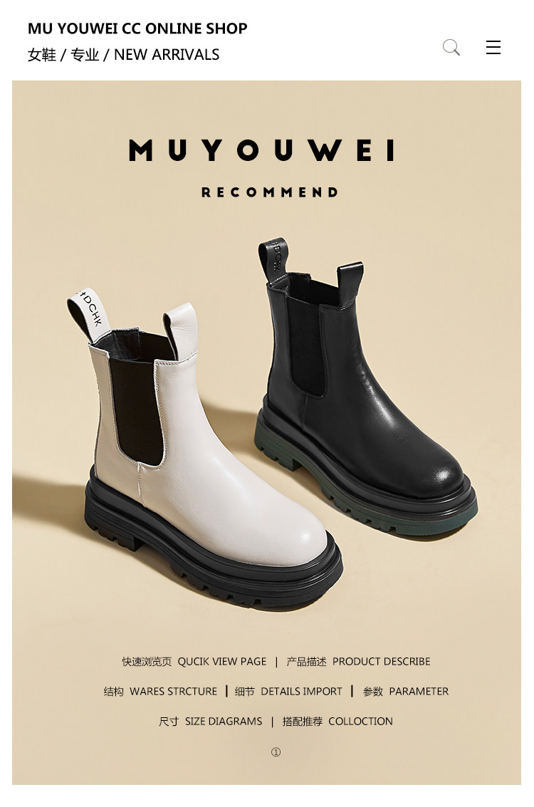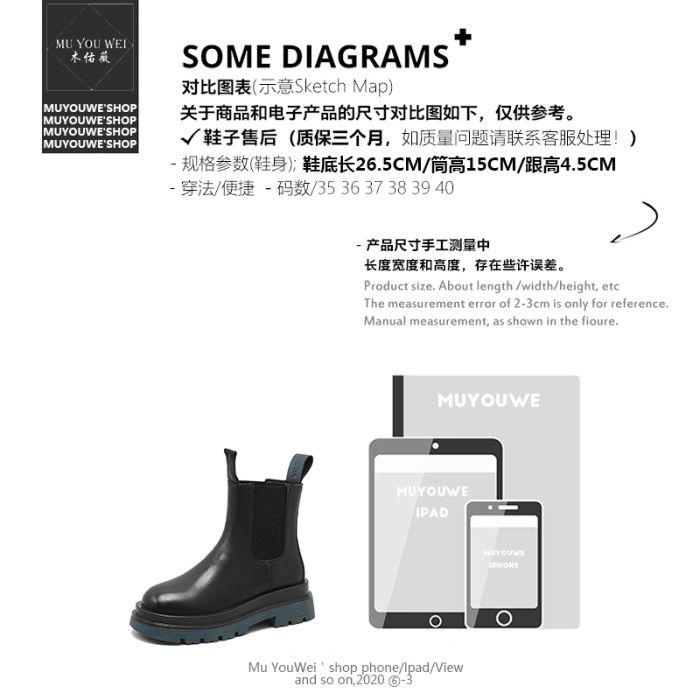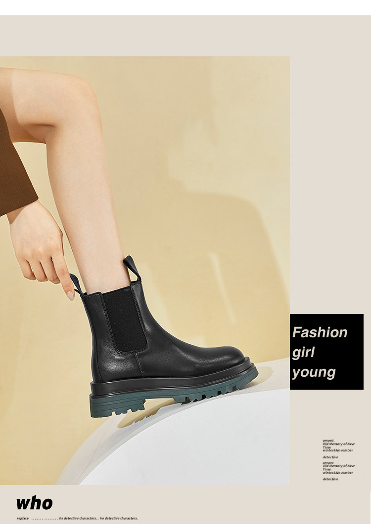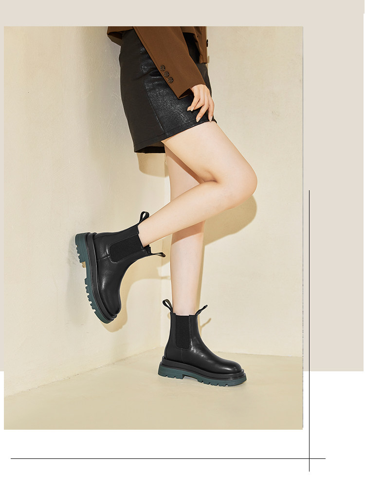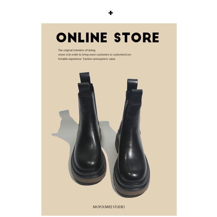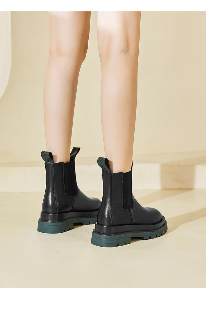 牛皮款~真皮菸筒靴女英倫防滑厚底中筒切爾西靴馬丁靴百搭短靴子