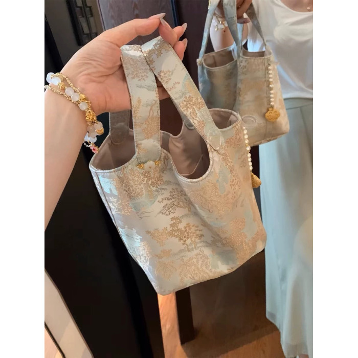 手拎新中式國風腋下包包女士2024夏季刺綉小衆高級感單肩手提女包