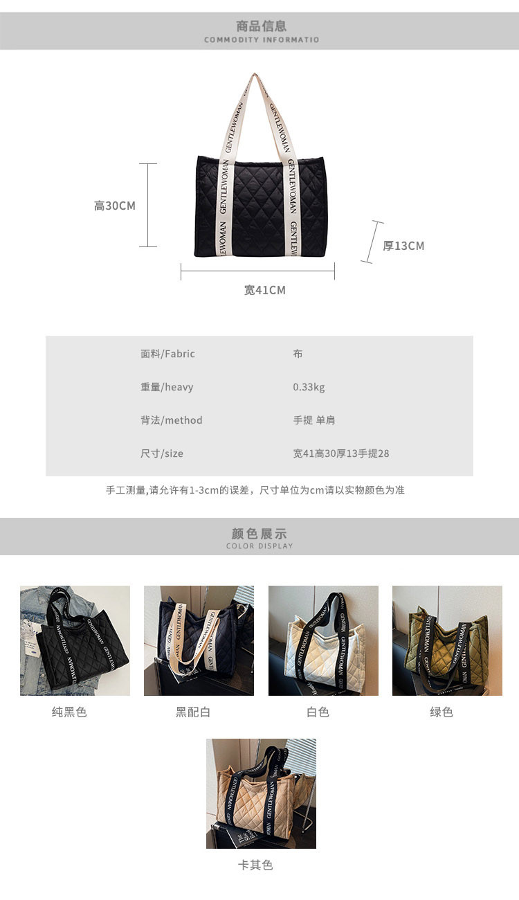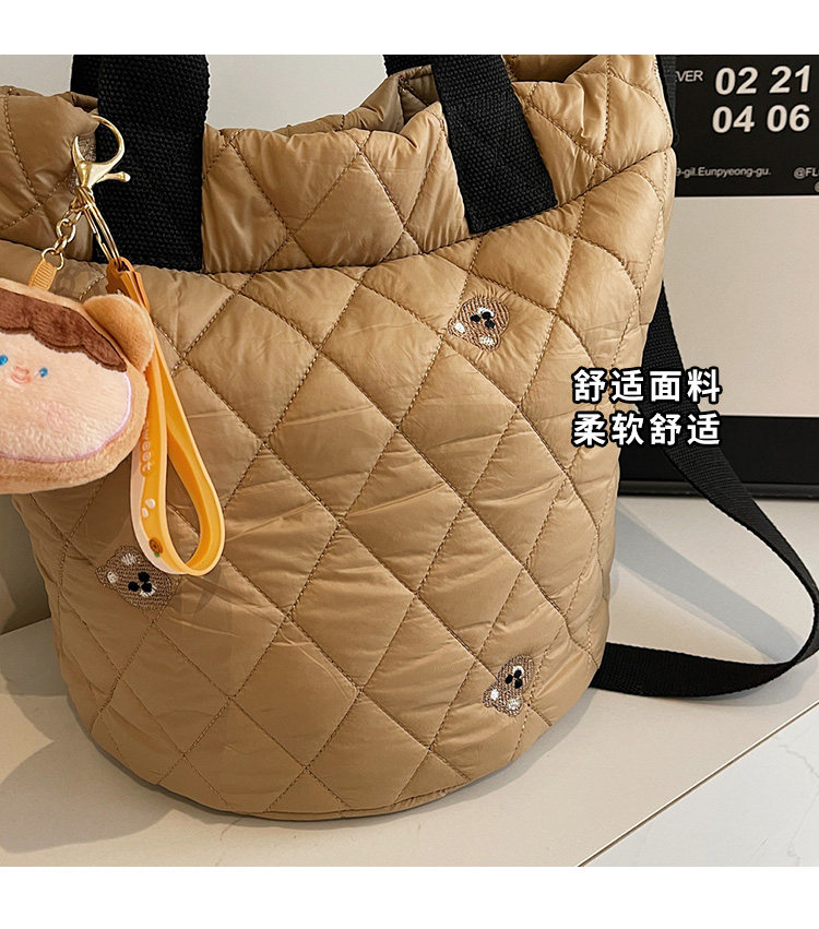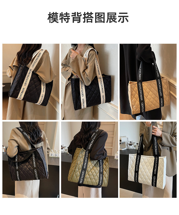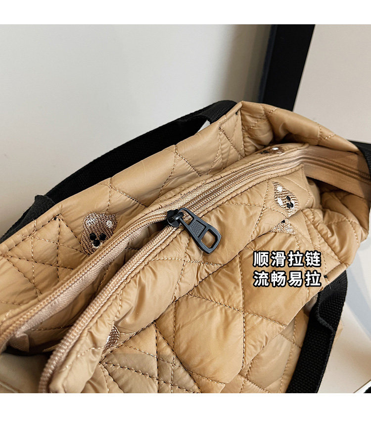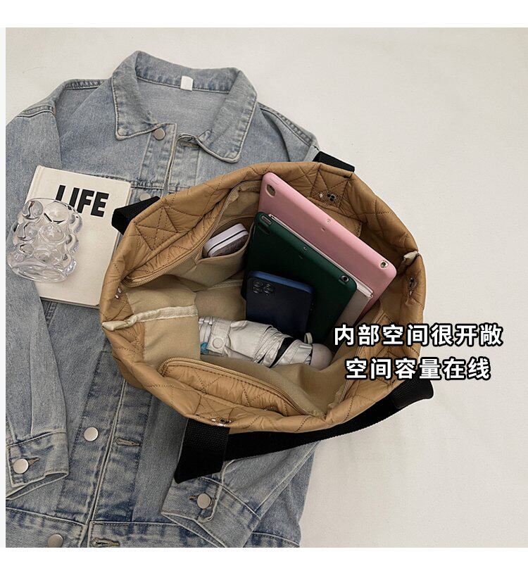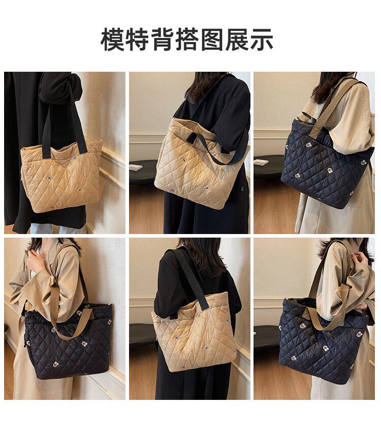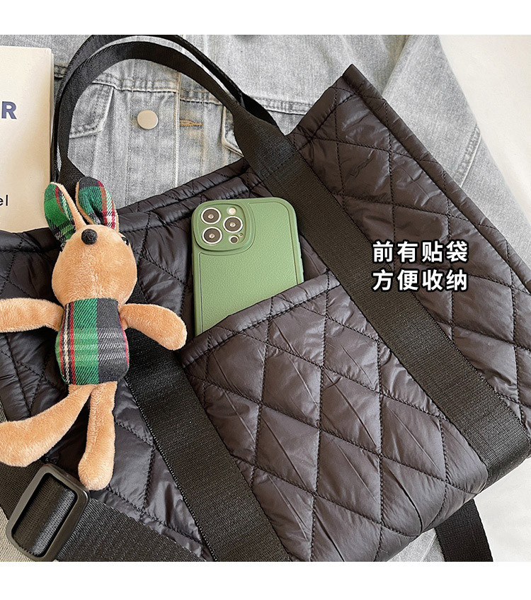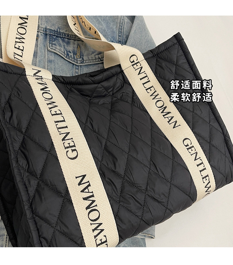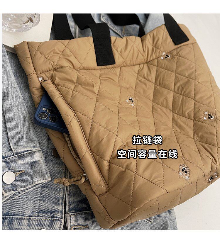 秋冬刺綉帆布包包女2025新款大容量菱格手提袋通勤單肩棉服托特包