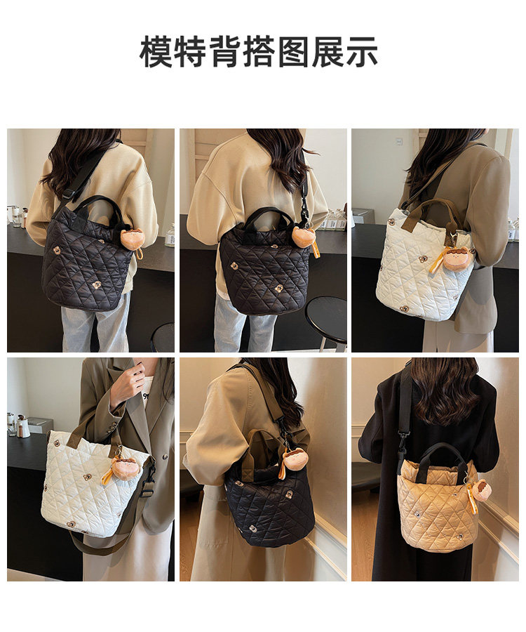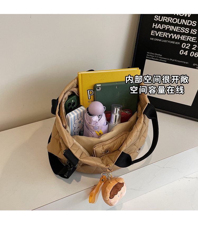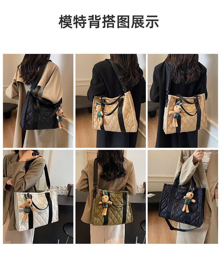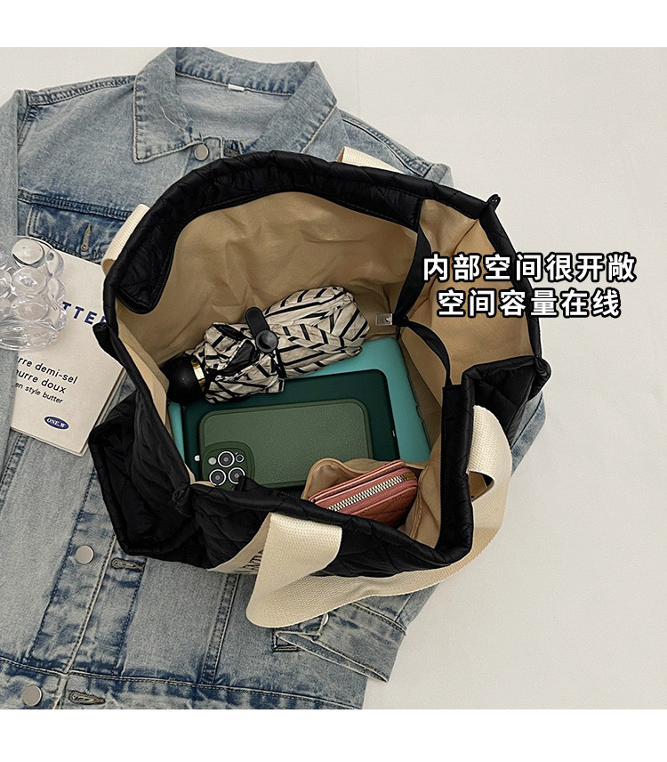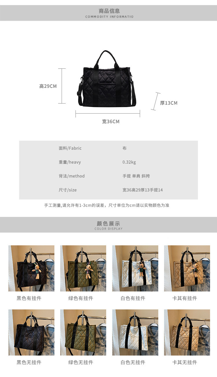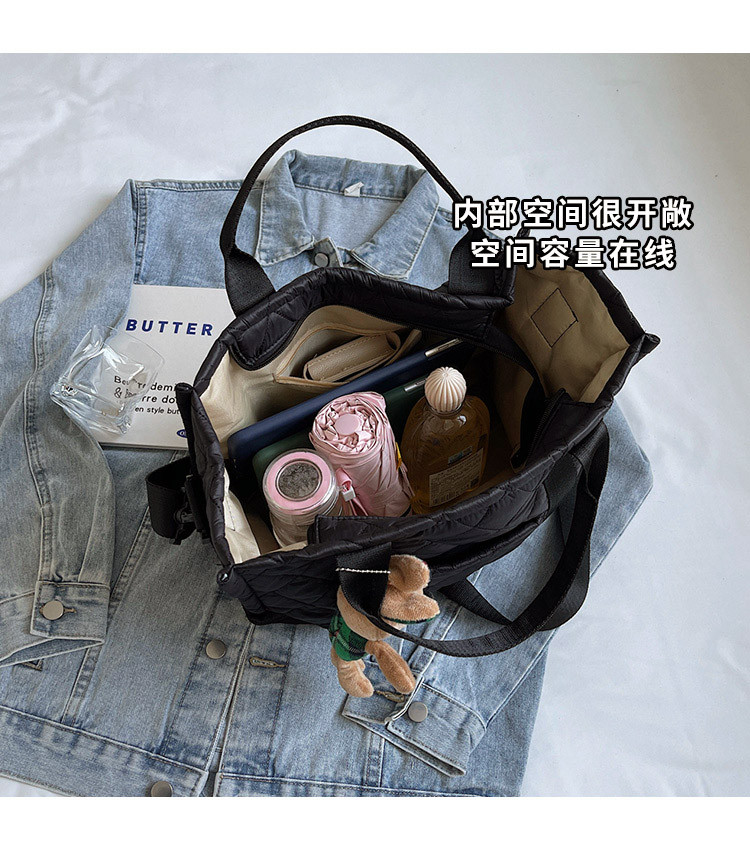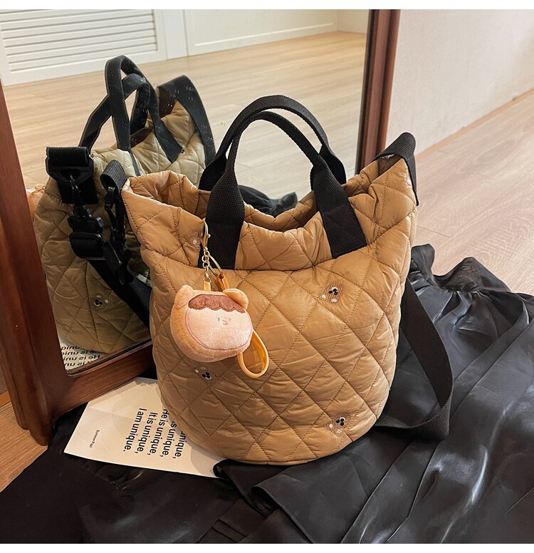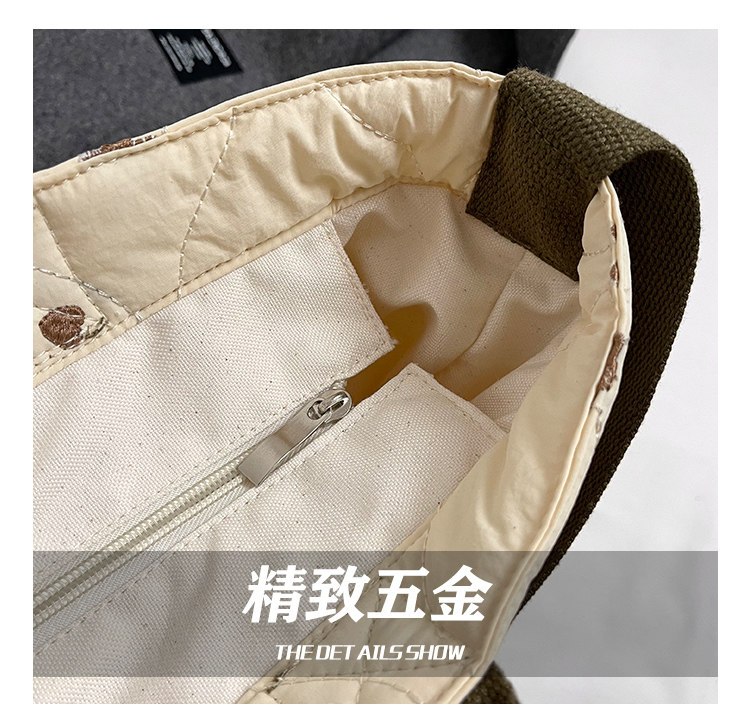 秋冬刺綉帆布包包女2025新款大容量菱格手提袋通勤單肩棉服托特包