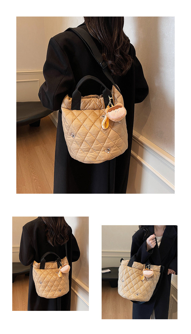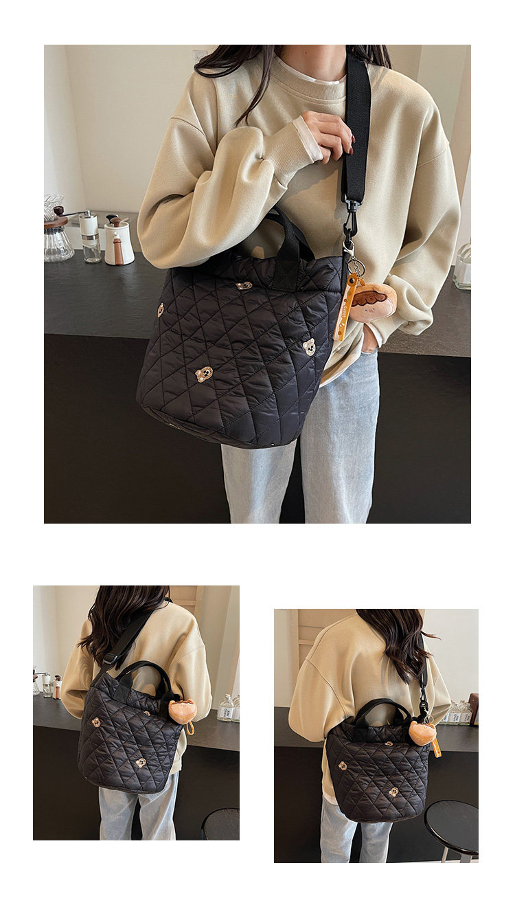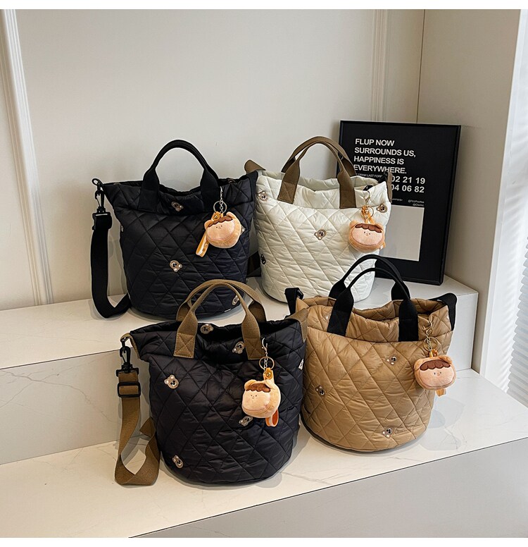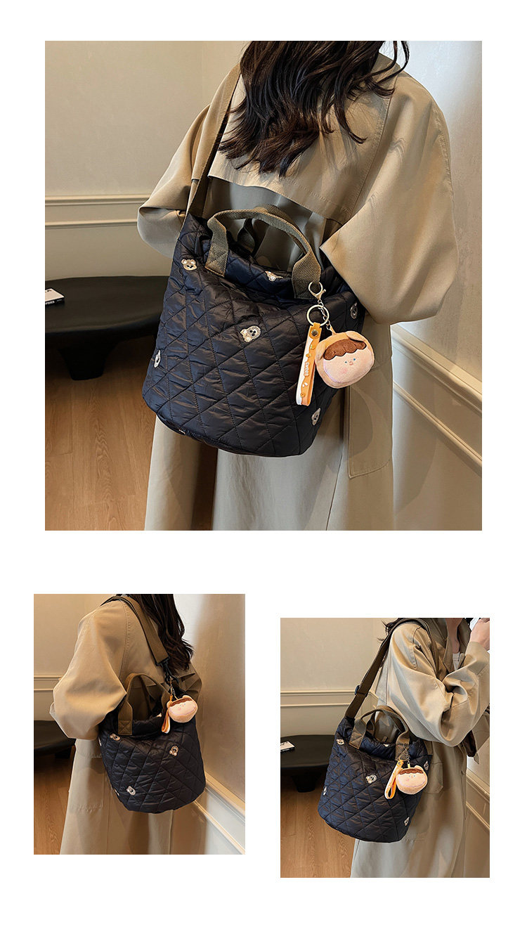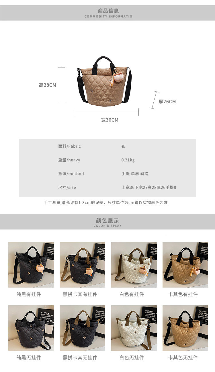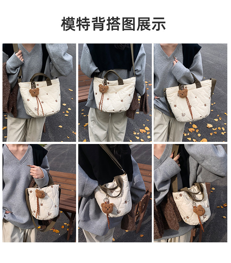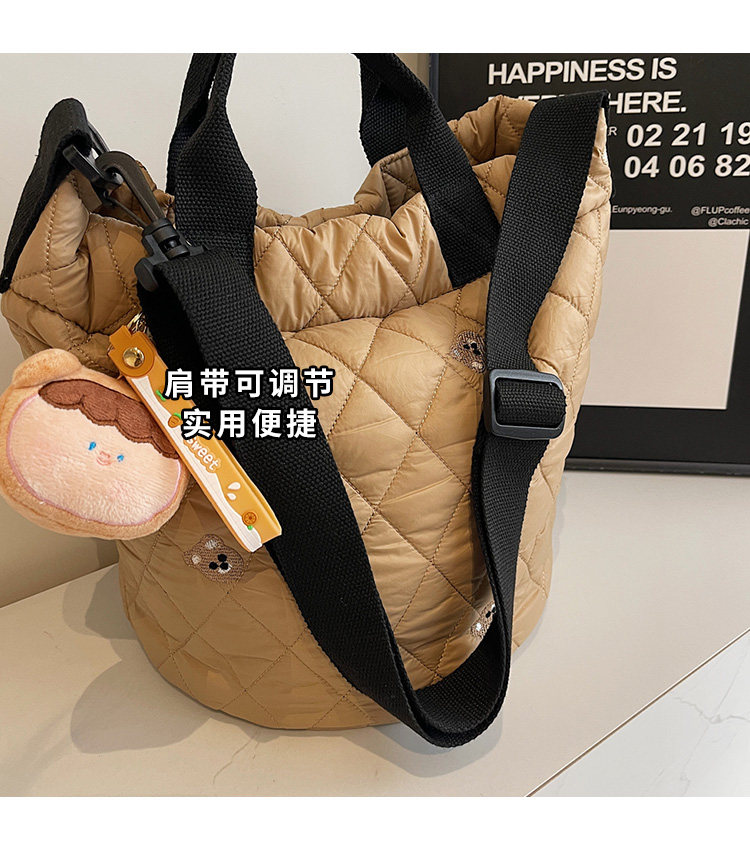 秋冬刺綉帆布包包女2025新款大容量菱格手提袋通勤單肩棉服托特包