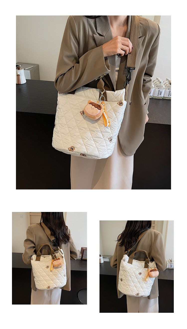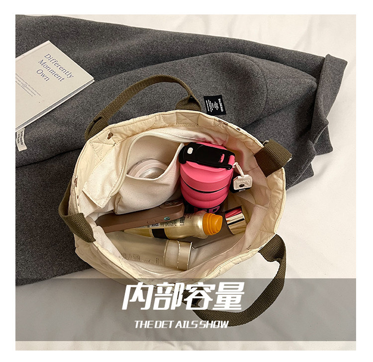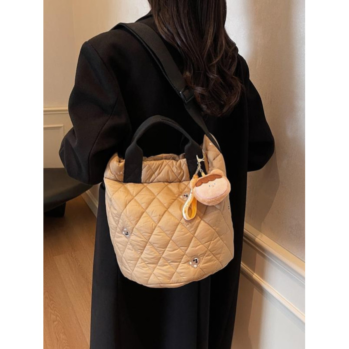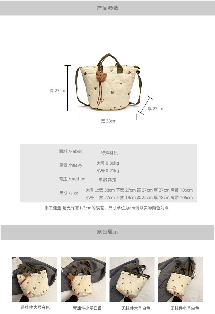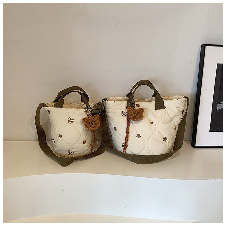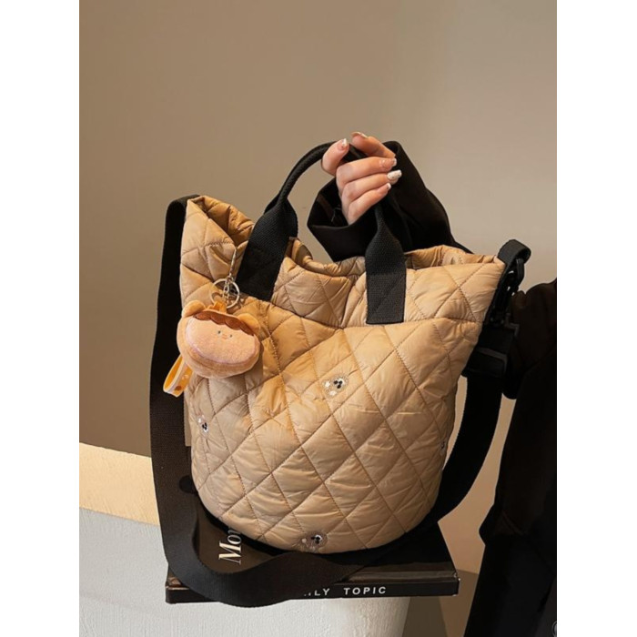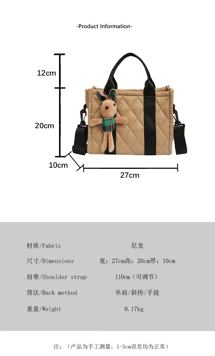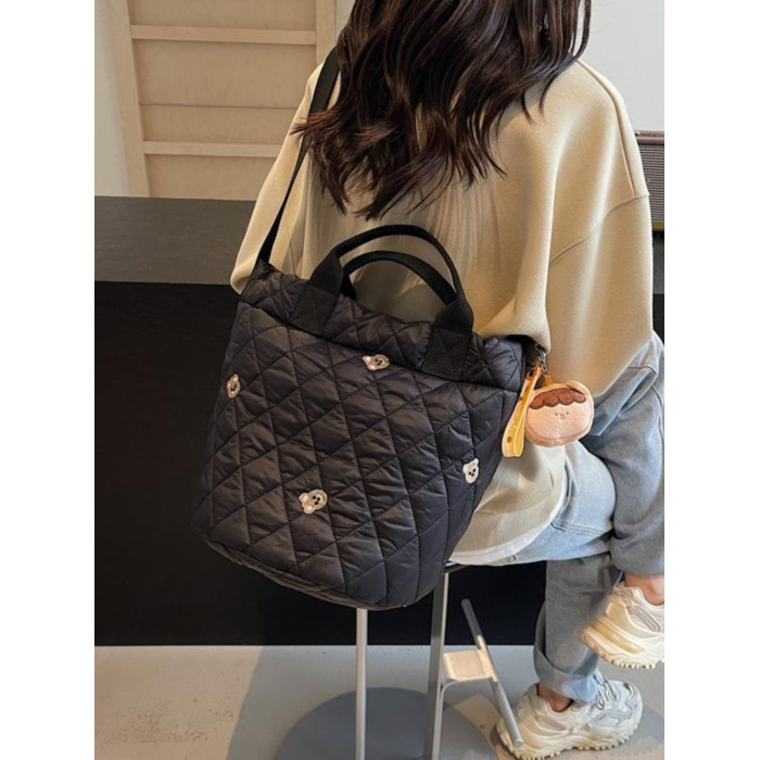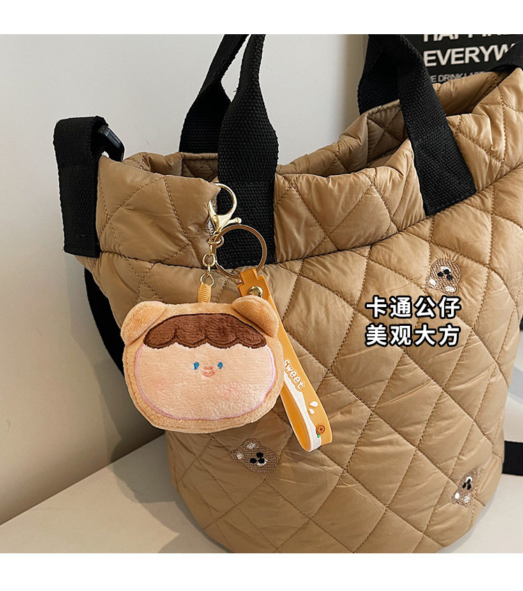 秋冬刺綉帆布包包女2025新款大容量菱格手提袋通勤單肩棉服托特包