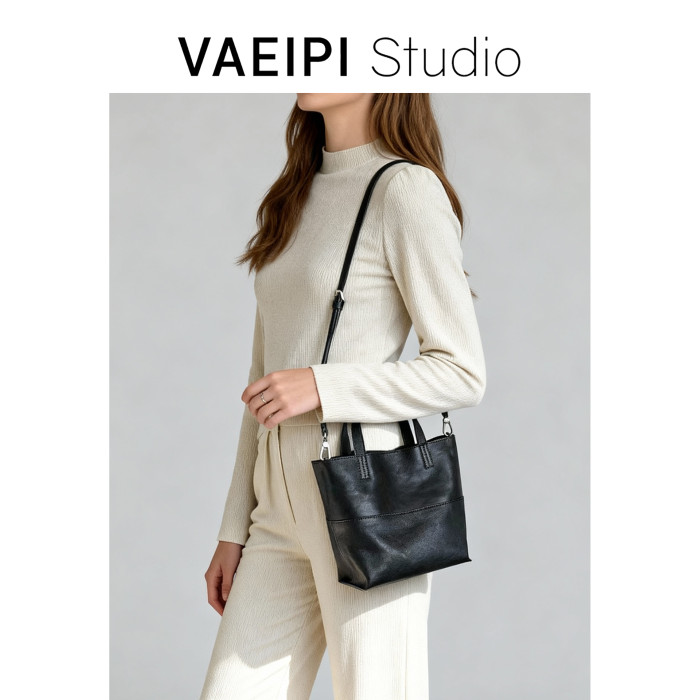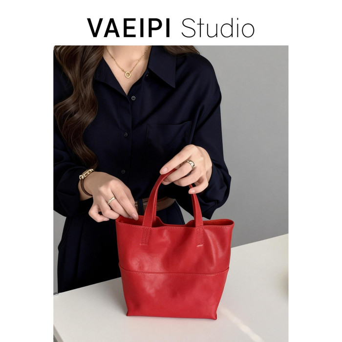 頭層植鞣牛皮手提包女2026新款小衆設計水桶包單肩斜背百搭女包潮