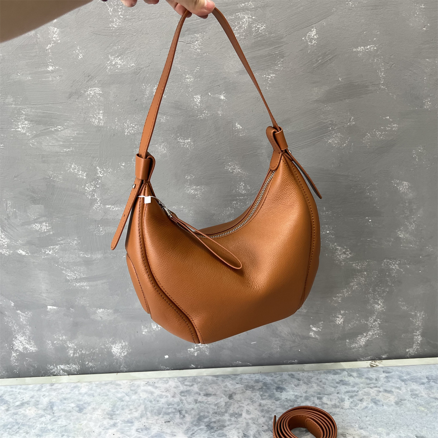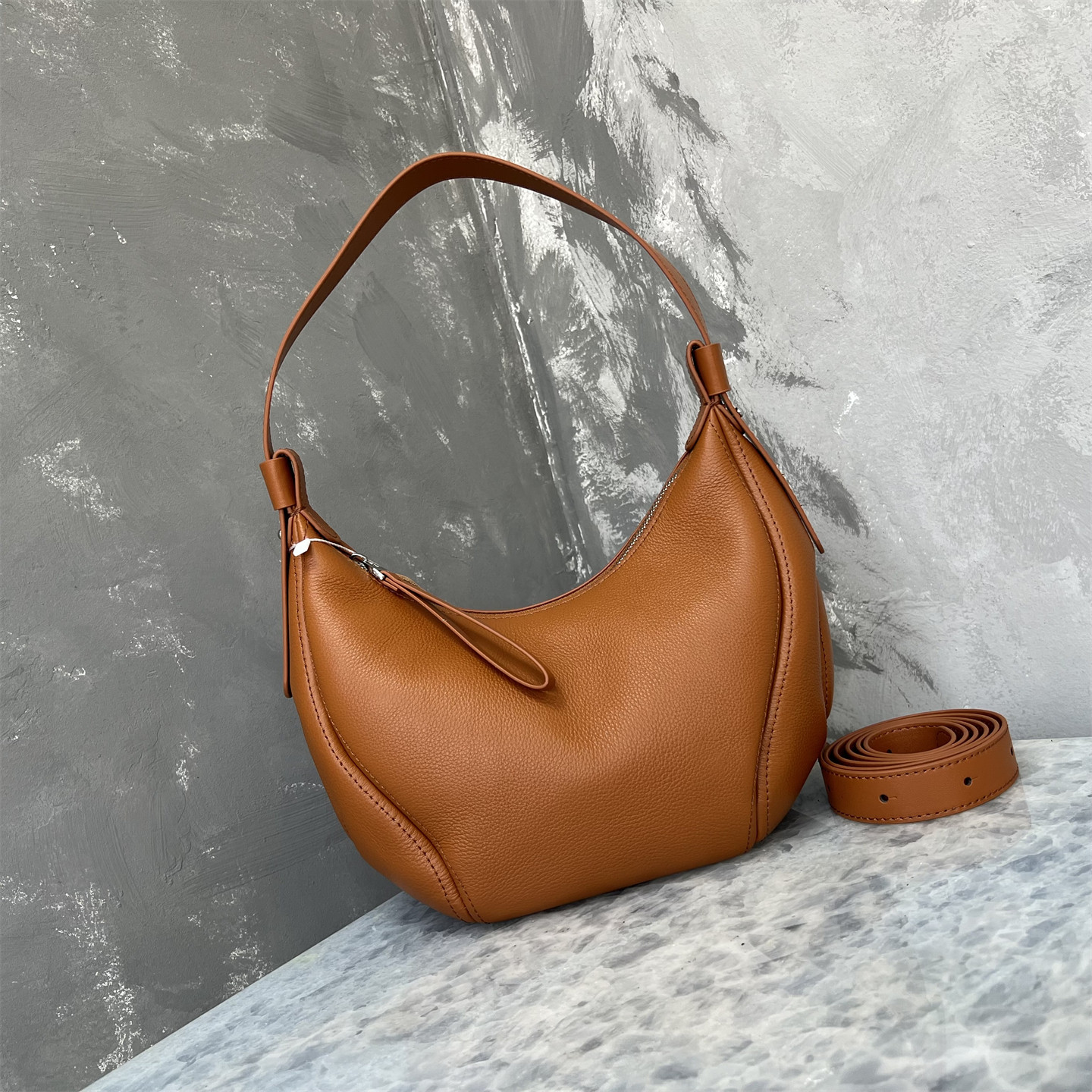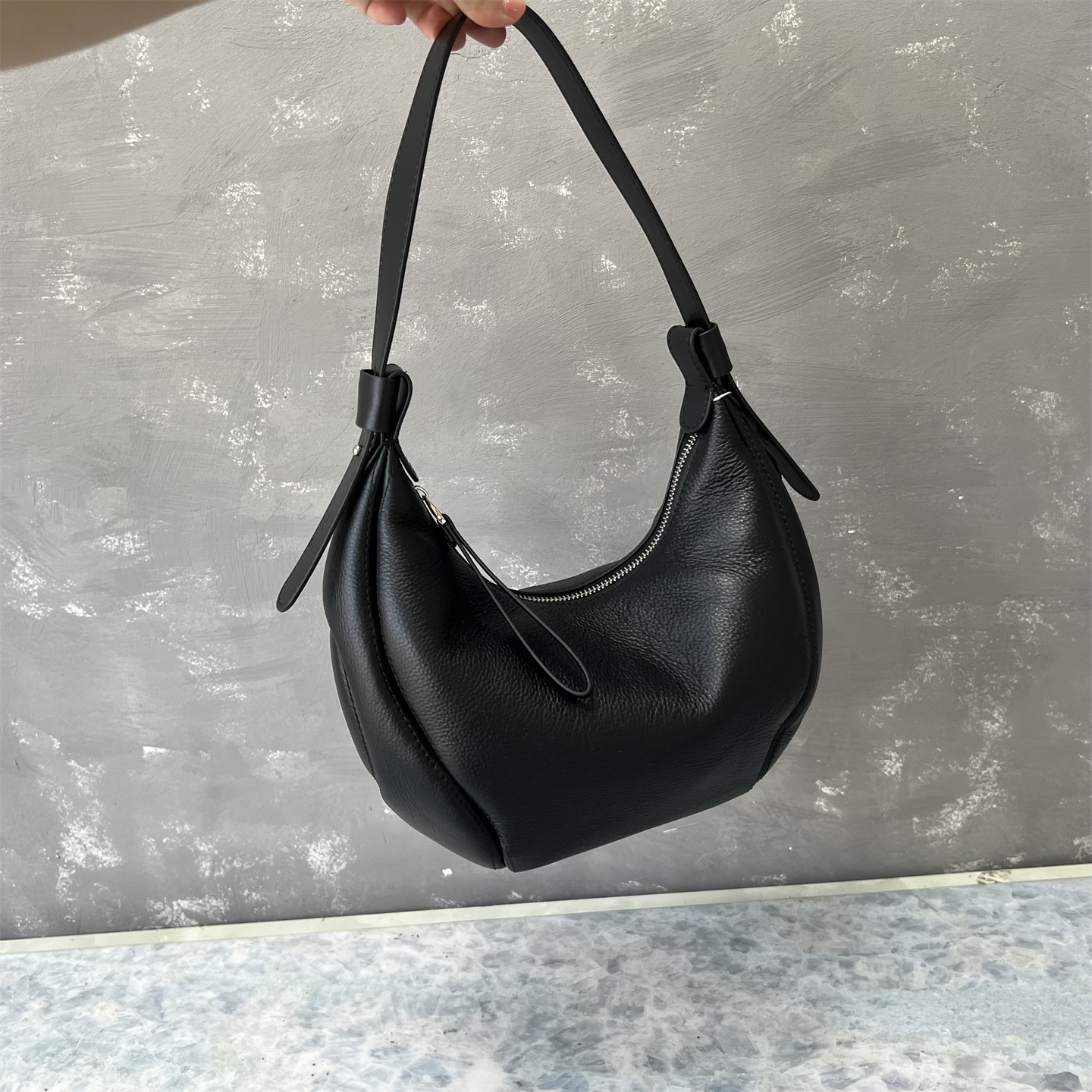 進口意大利頭層牛皮2025流行新款爆款月牙包通勤斜背單肩腋下包女
