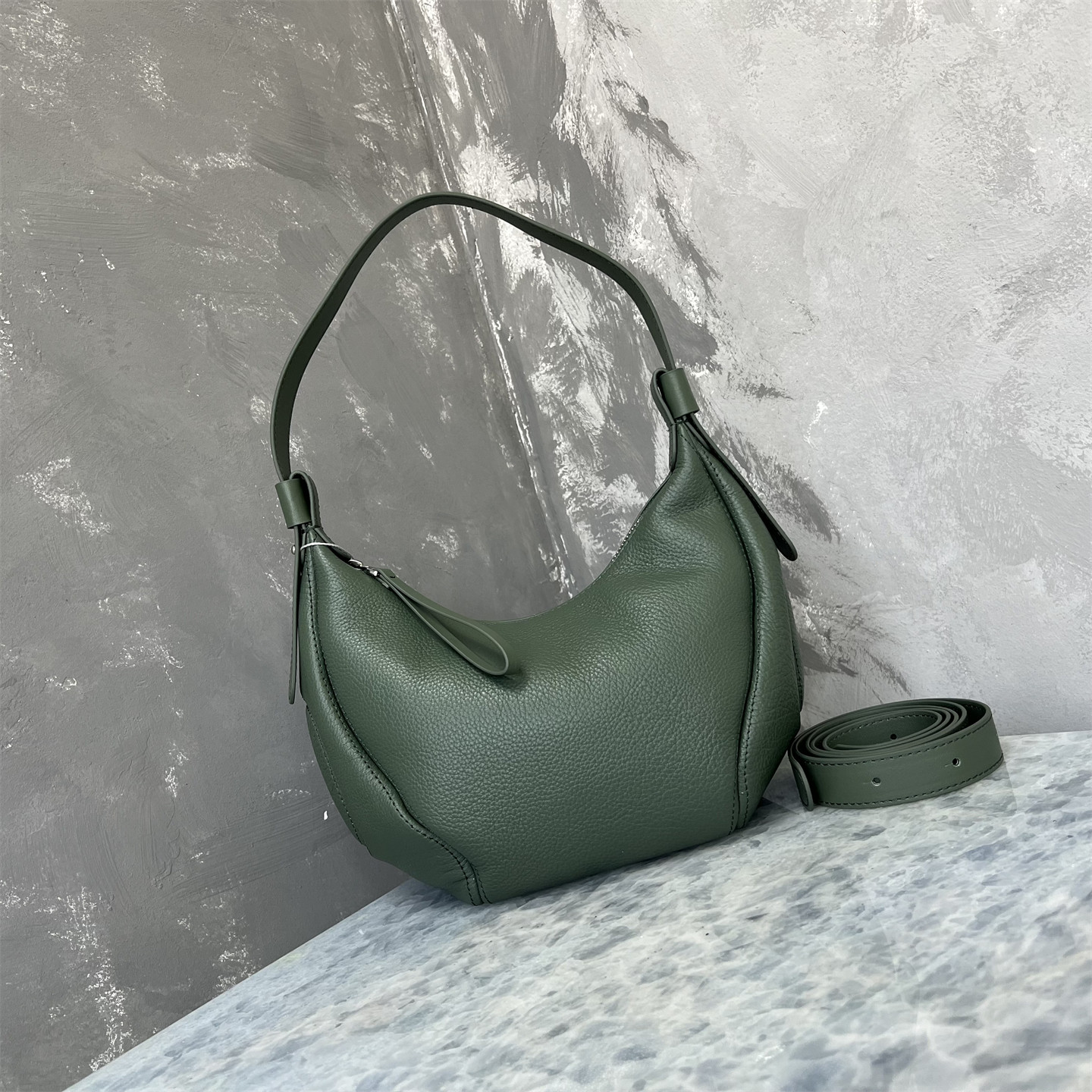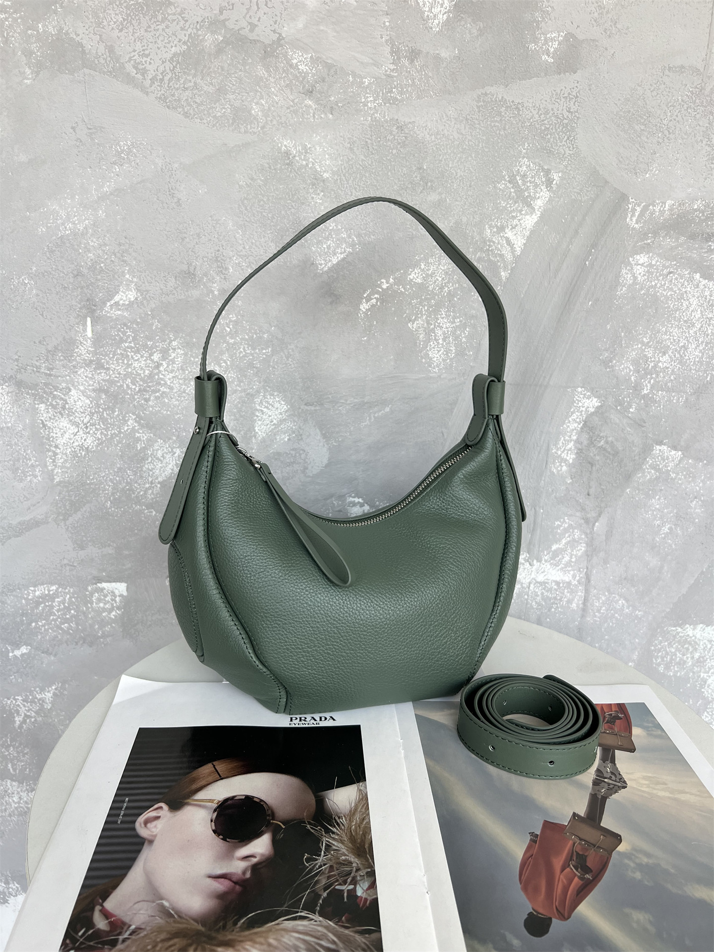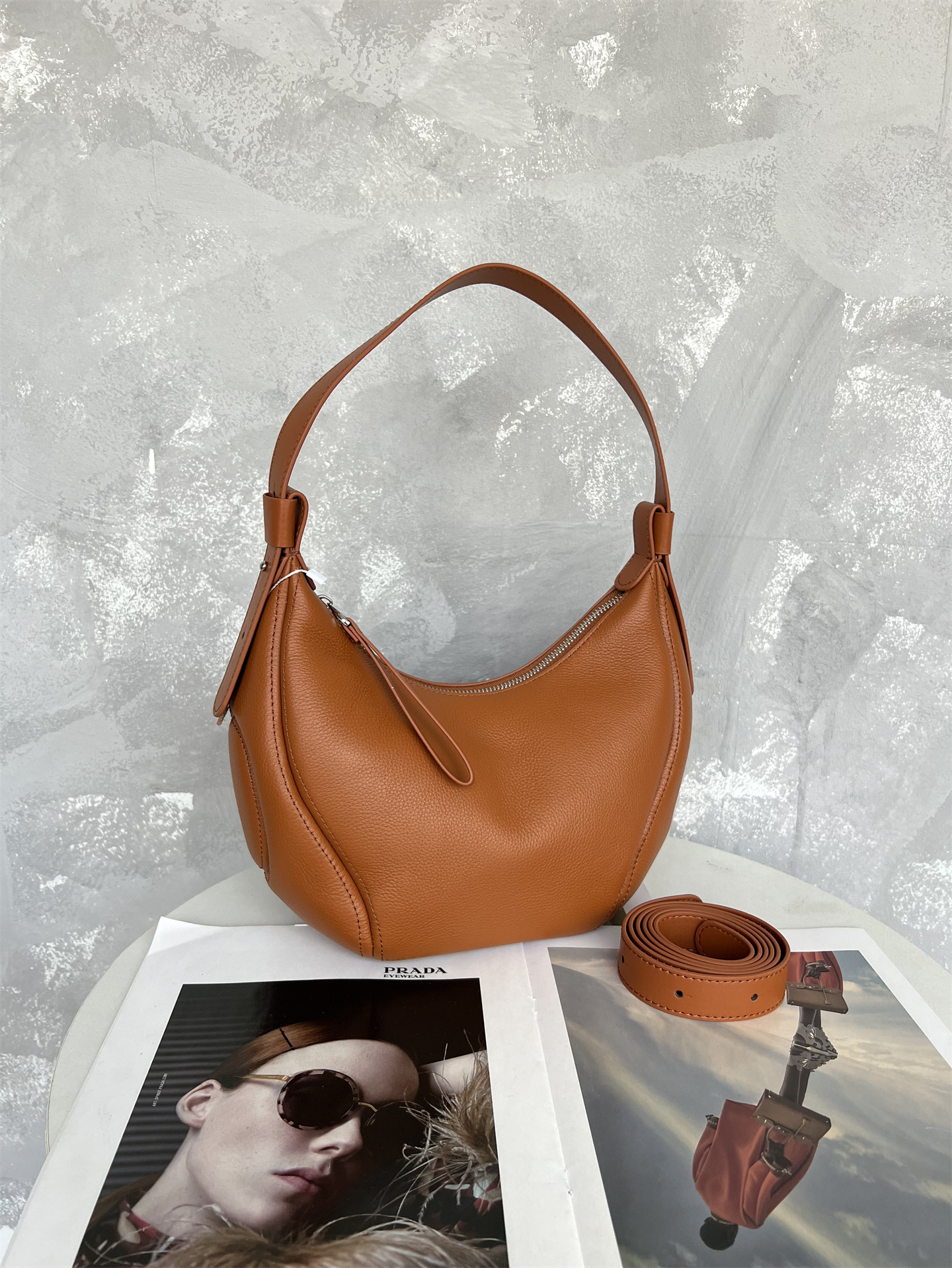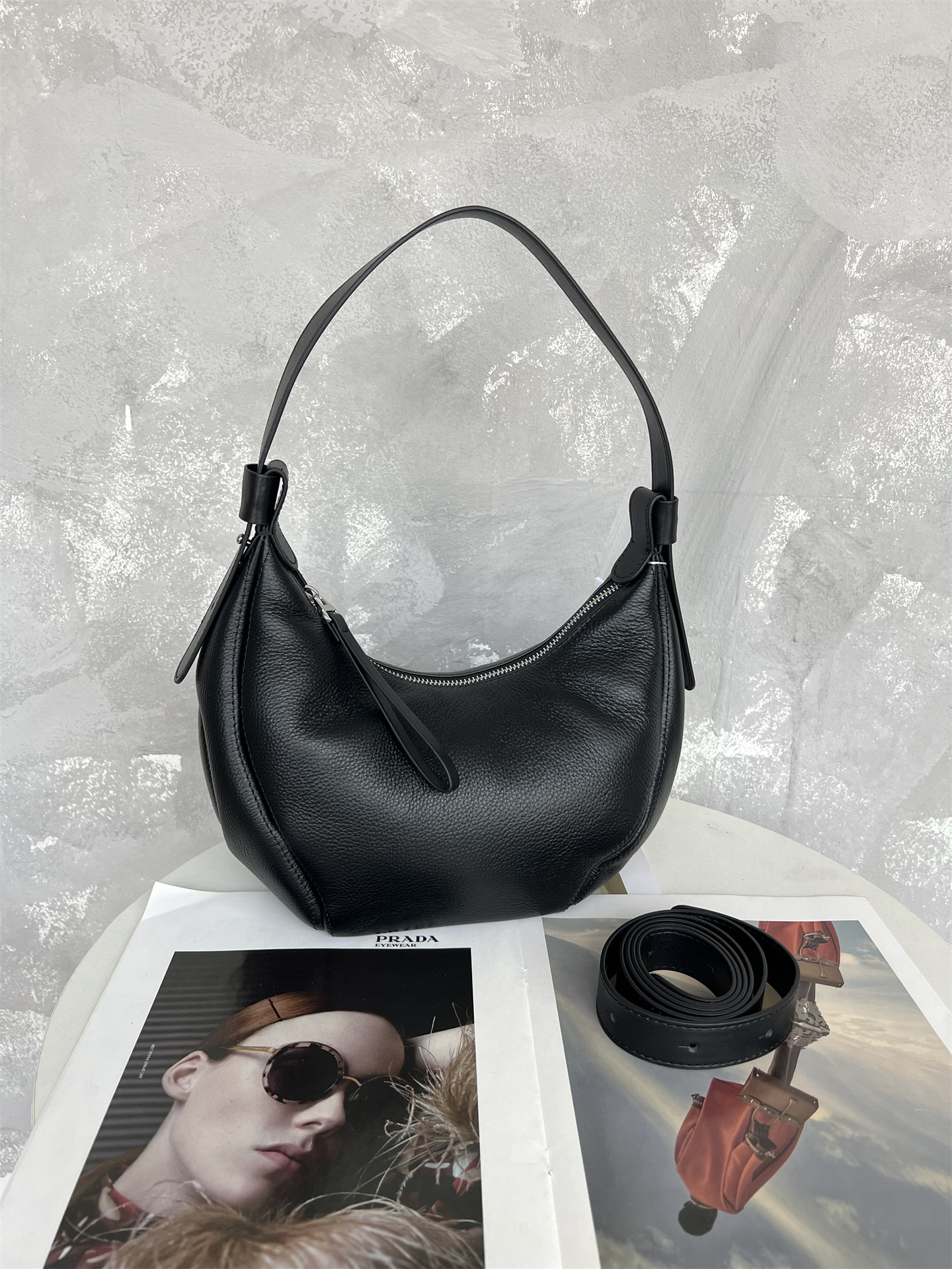 進口意大利頭層牛皮2025流行新款爆款月牙包通勤斜背單肩腋下包女