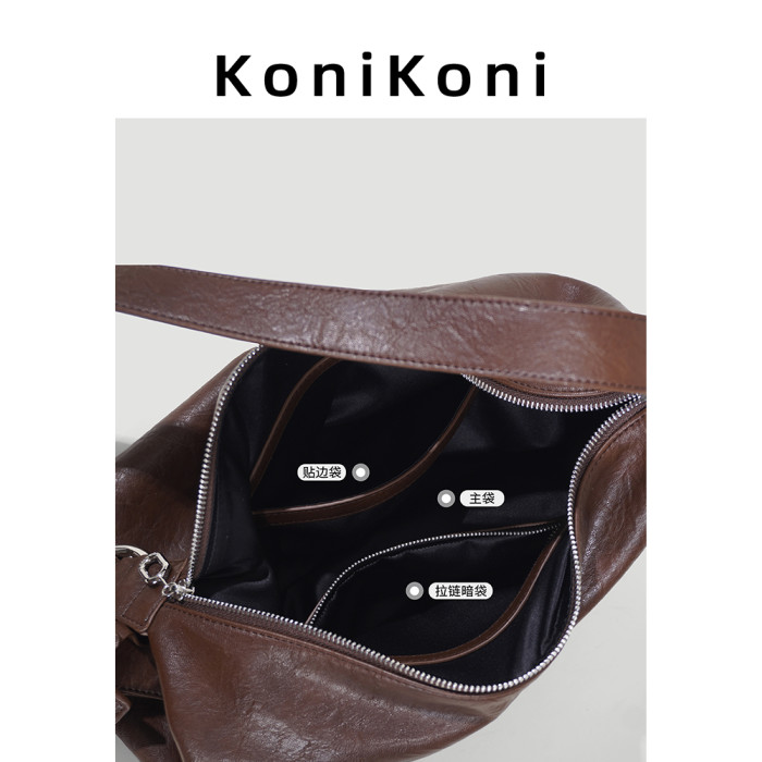 KoniKoni真皮小衆大容量托特包女慵懶通勤斜後後背包2026新款單肩大包