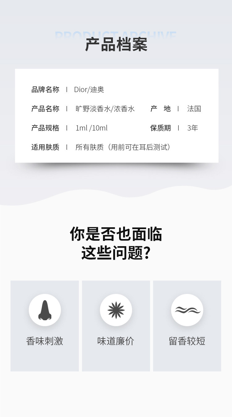 Dior迪奧曠野男士淡香水1ml濃香凜冽之水香精木質調10ml禮盒小樣