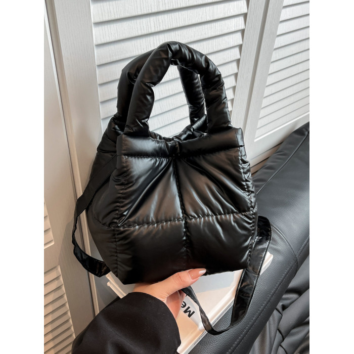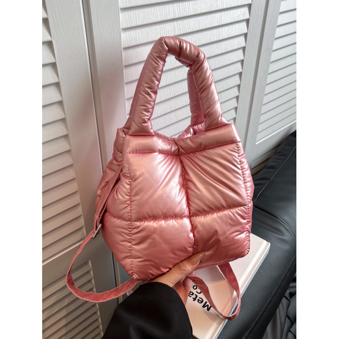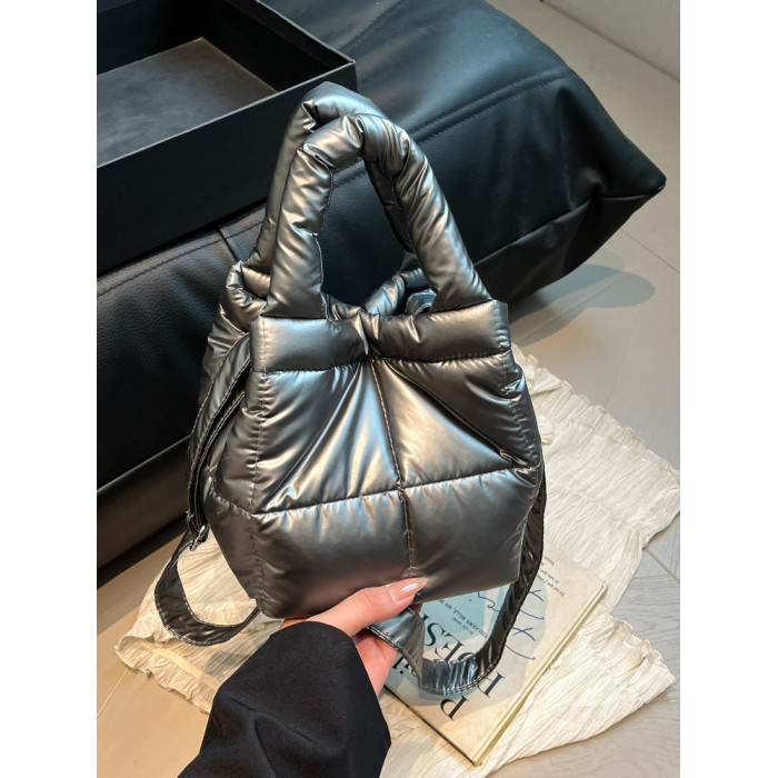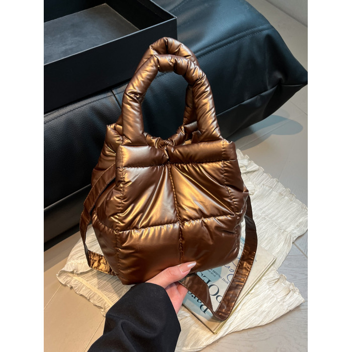 福利款亮面色羽絨服包包小水桶包充棉單肩斜背手提包太空包棉服包