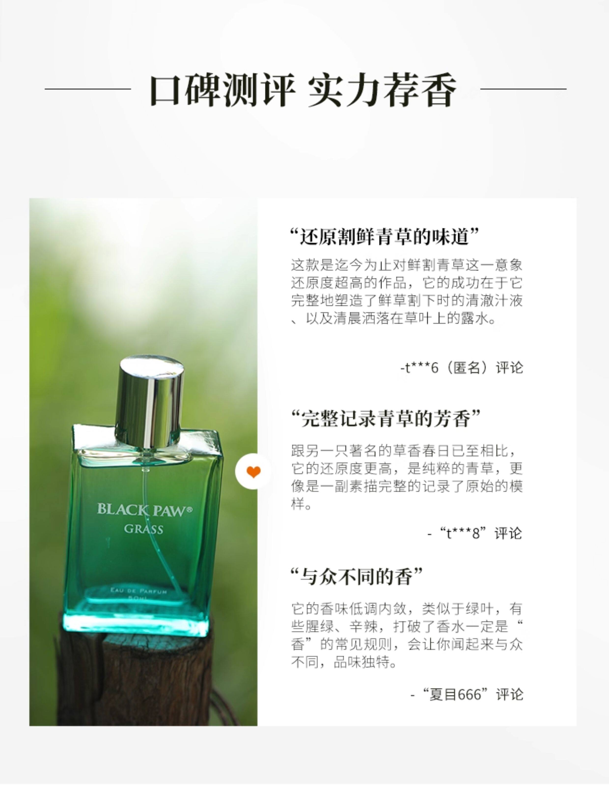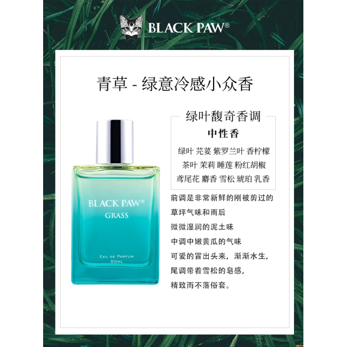 黑爪「青草」香水中性持久淡香綠意冷感小衆清新雨後綠葉馥奇香調