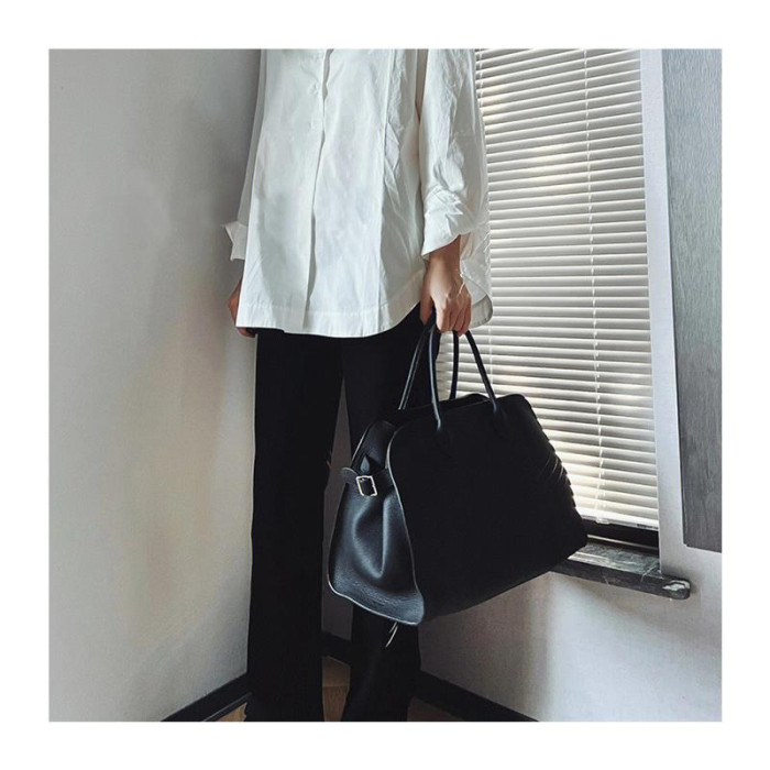 頭層牛皮托特包女大容量荔枝紋真皮高級感通勤手提公文包oversize