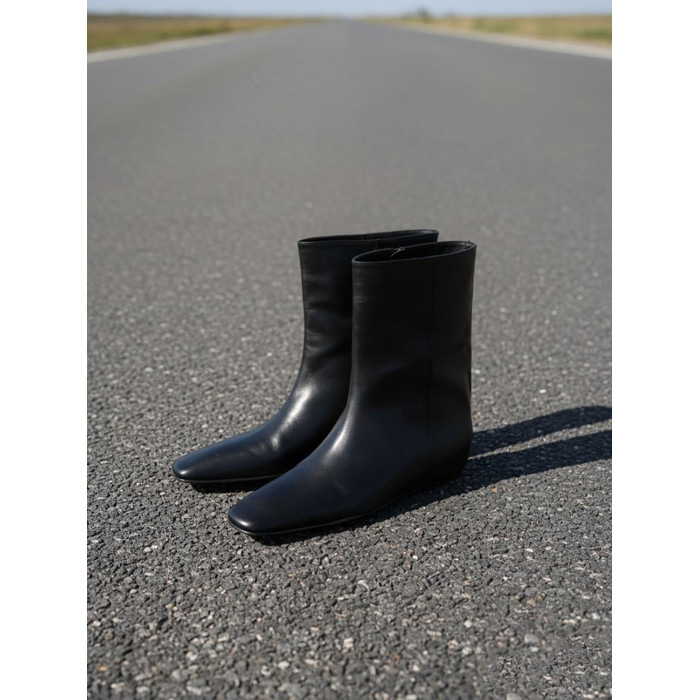 新款簡約方頭內增高坡跟寬筒中筒靴時裝套筒馬丁菸筒短靴女靴子