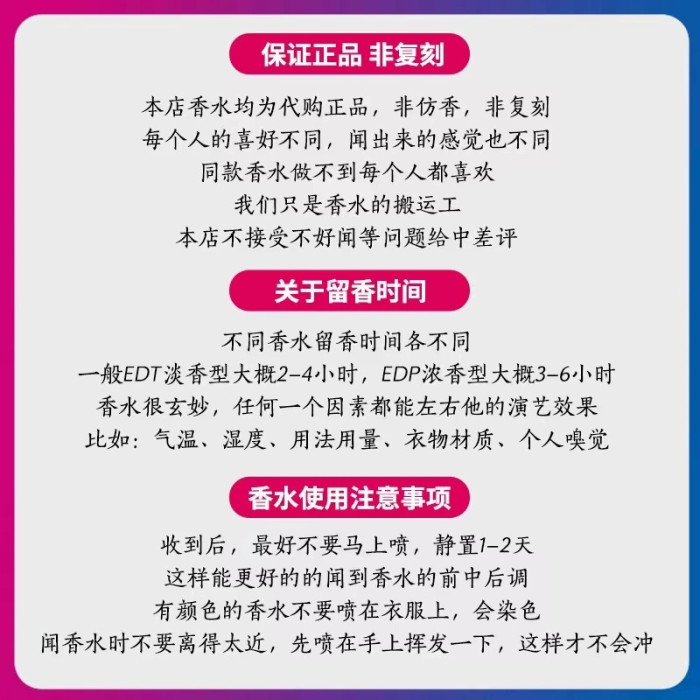 | 香水分類 | 純香精、淡香水 |