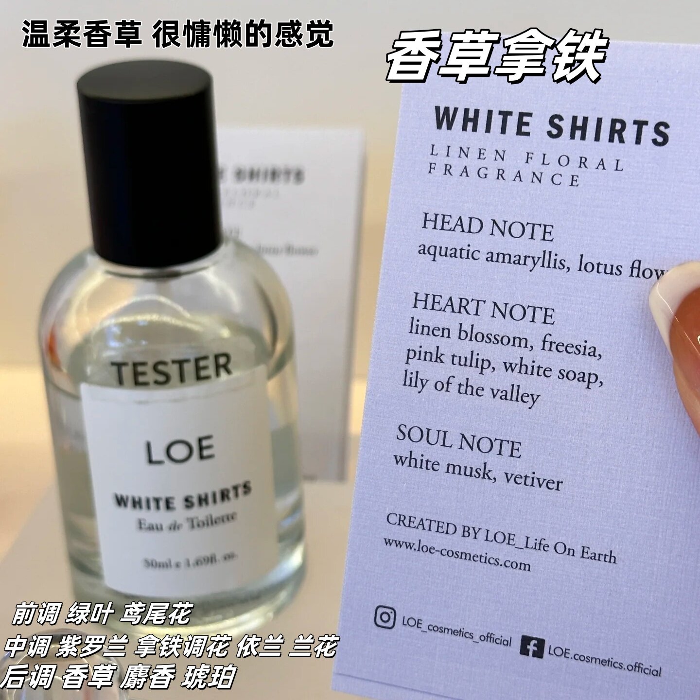韓國小衆品牌LOE香水白襯衫loe桃子與茶香草拿鐵陽光微風酸橙松木