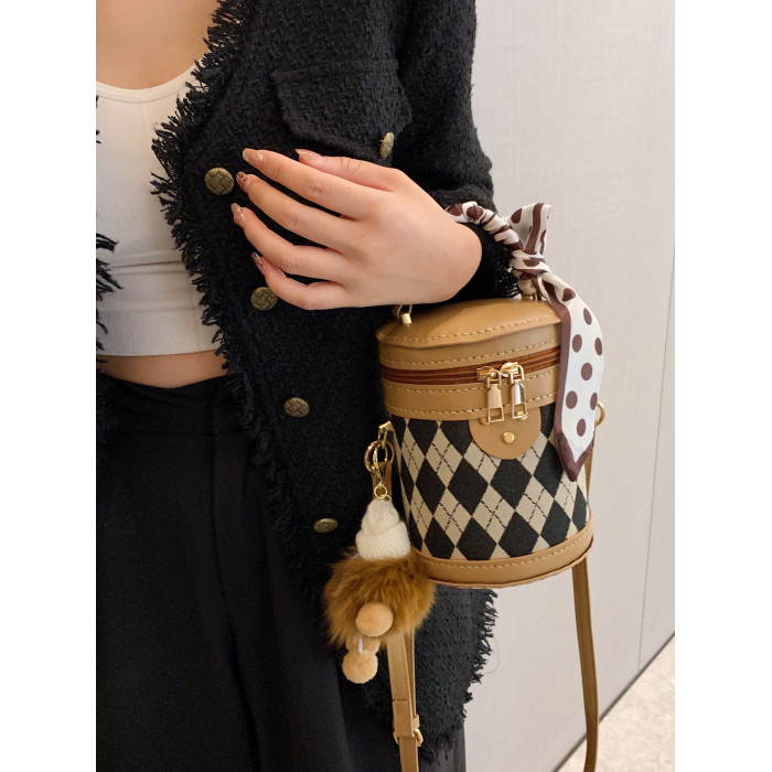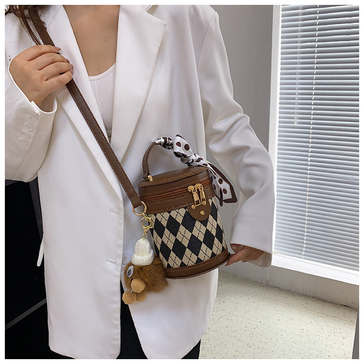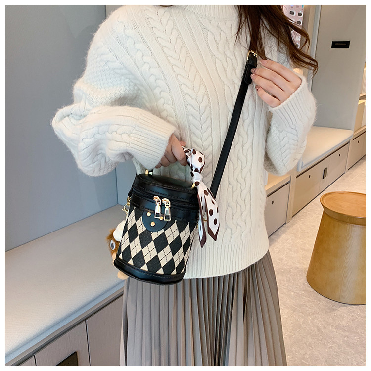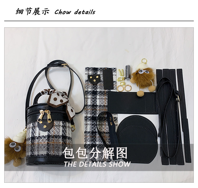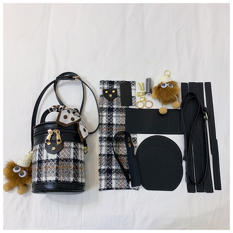 手工包diy材料自製禮物送女友時尚百搭菱格單肩斜背水桶包手縫包