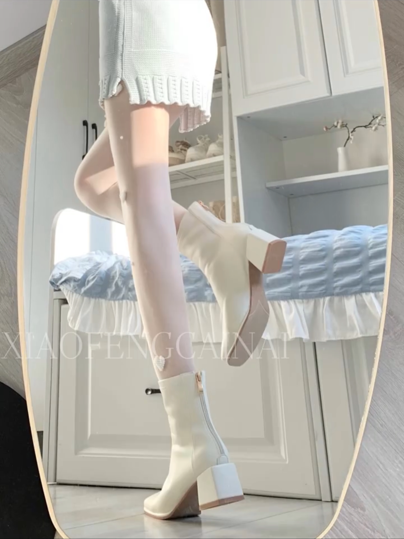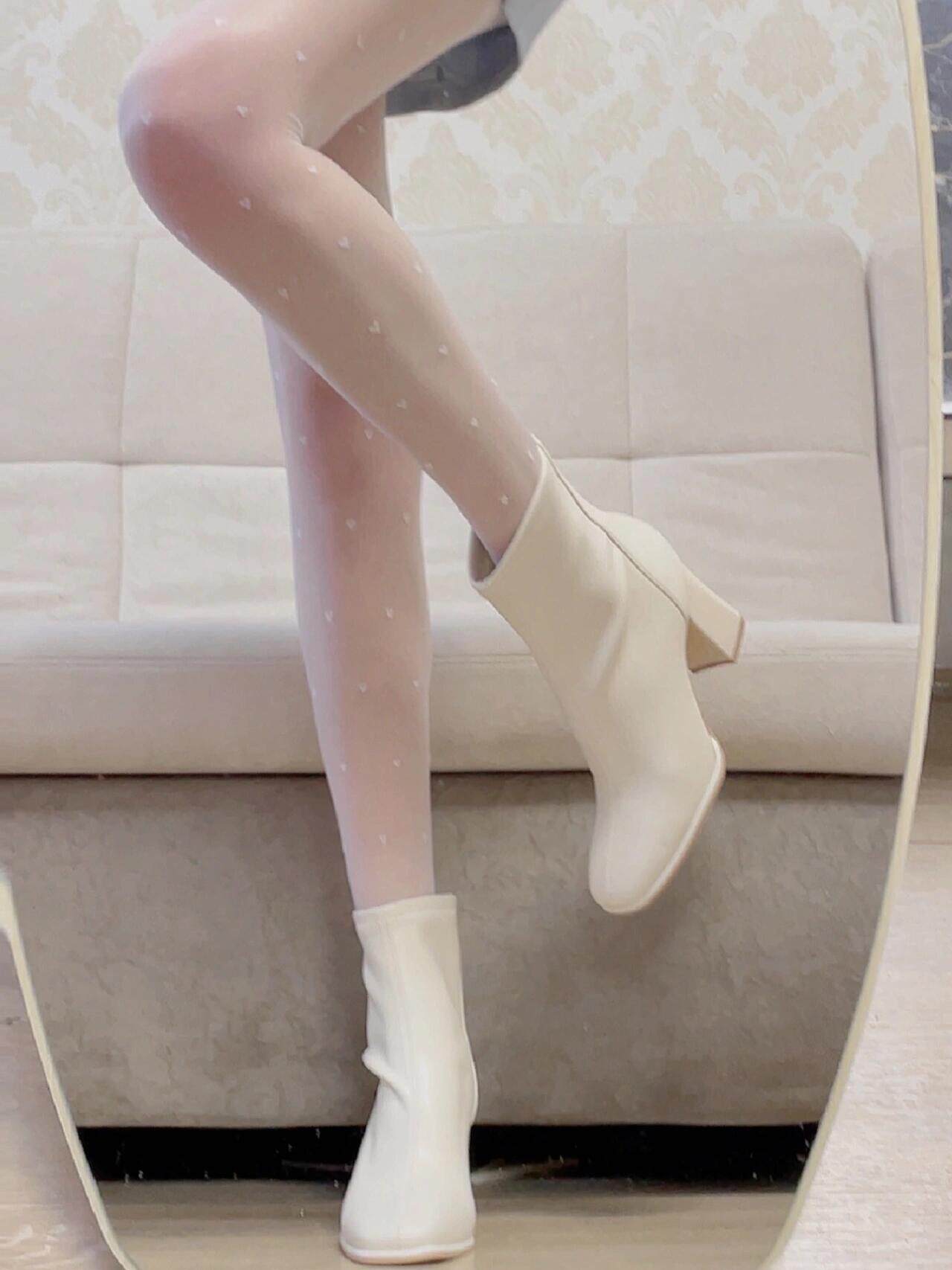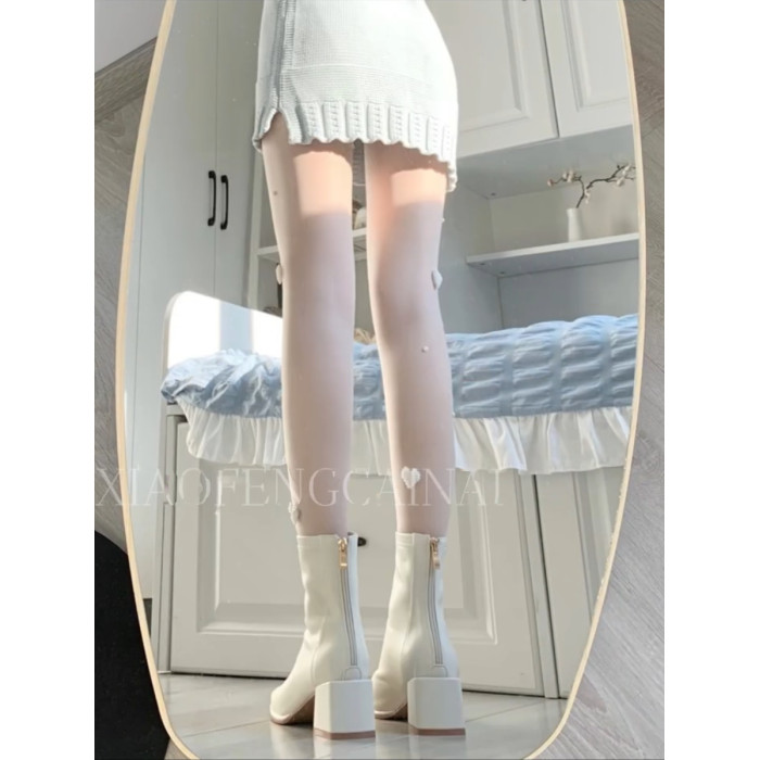 夢中情靴!溫柔米白色瘦瘦短靴經典百塔粗跟不累腳法式方頭中筒靴