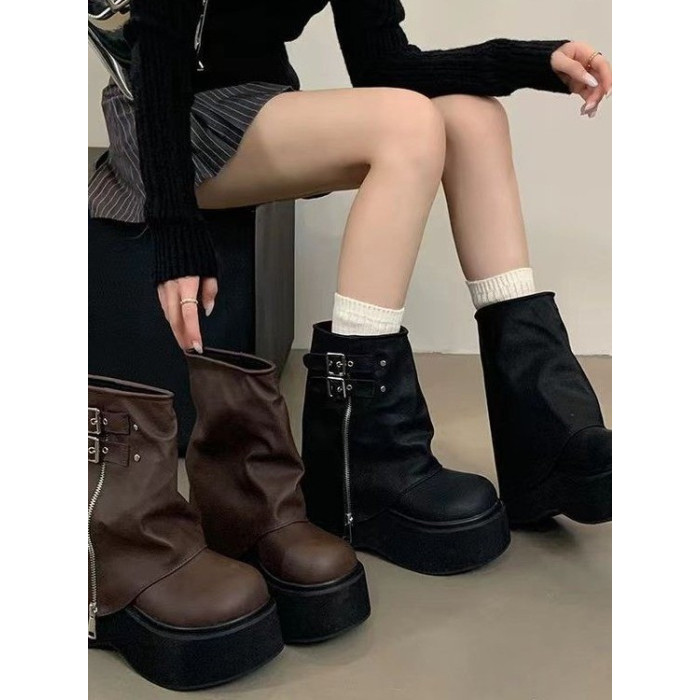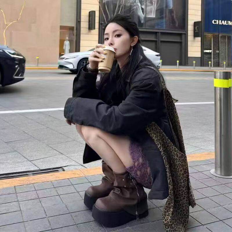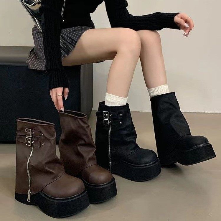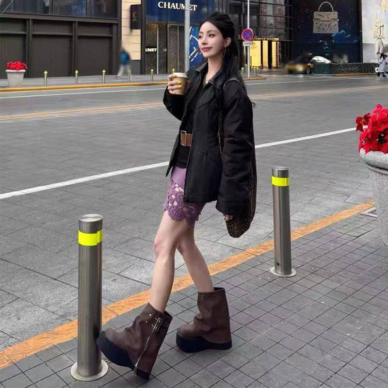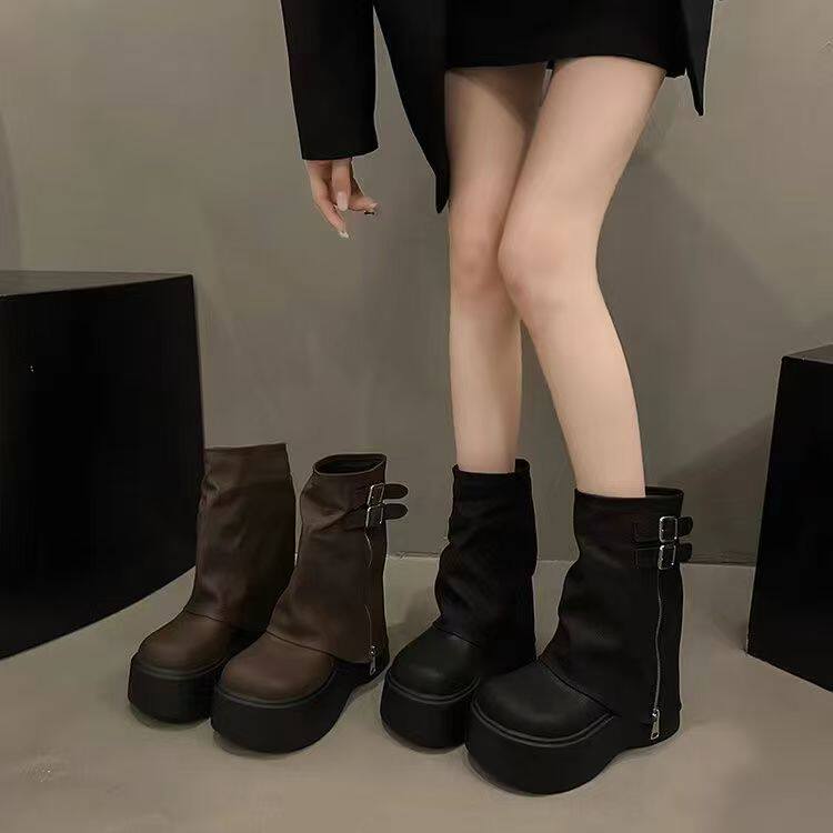 品牌爆款堆堆短靴女2026新款秋冬厚底美拉德褲琯靴辣妹風機車靴女