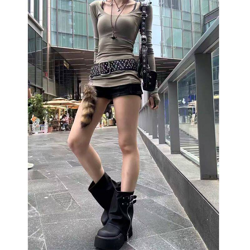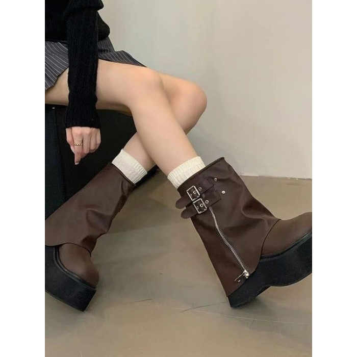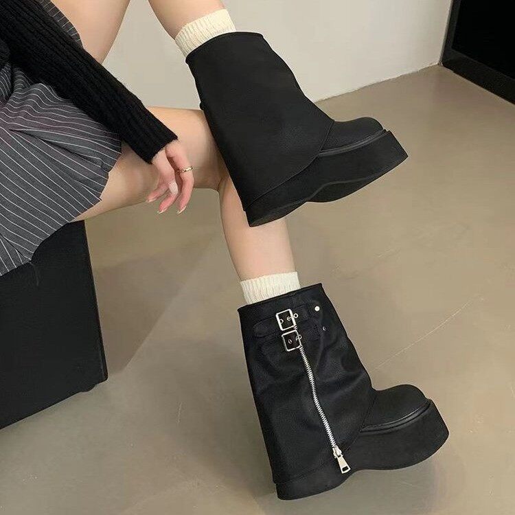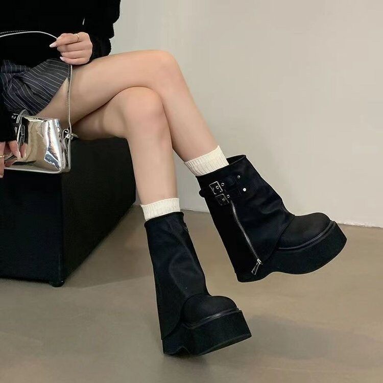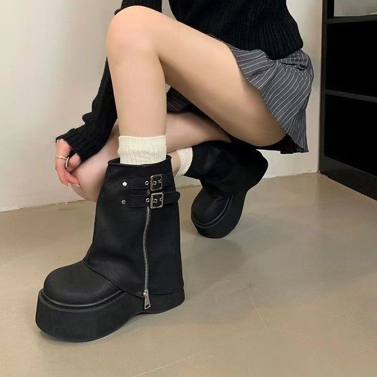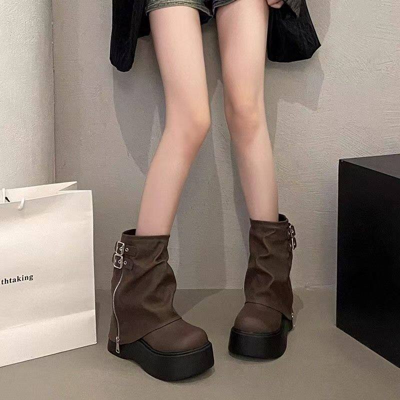 品牌爆款堆堆短靴女2026新款秋冬厚底美拉德褲琯靴辣妹風機車靴女