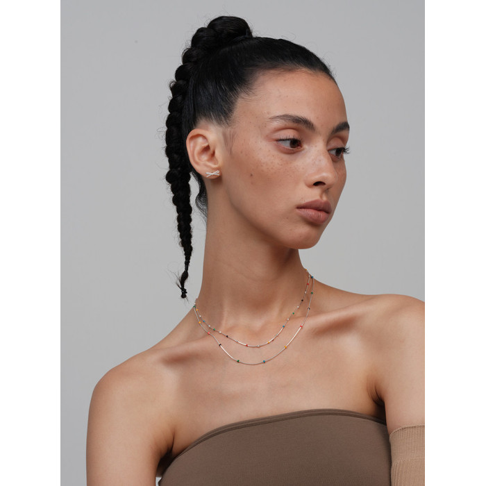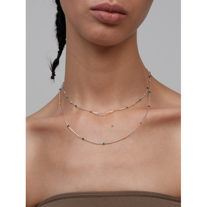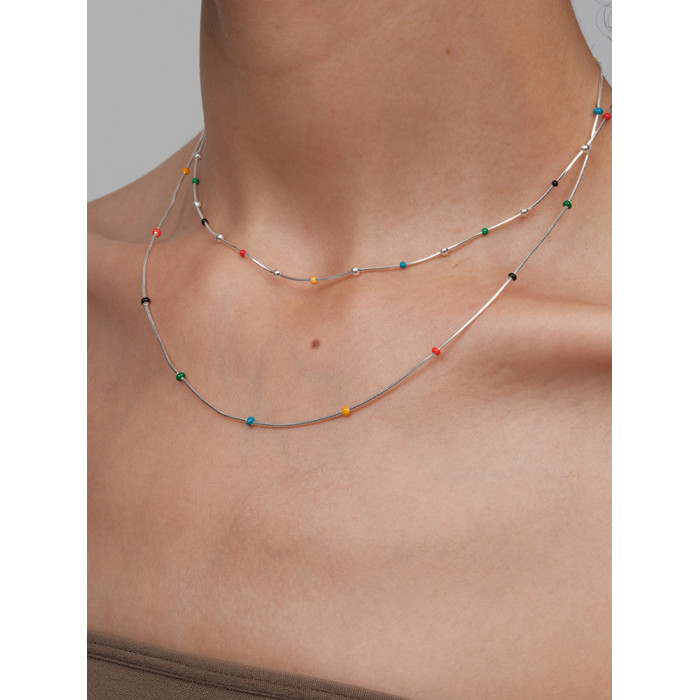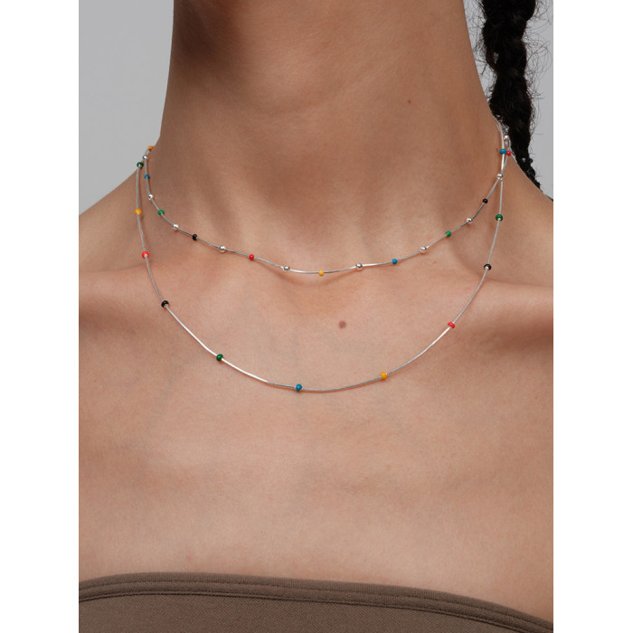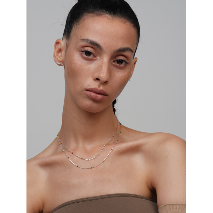 【CnHnOn脂肪商店】彩虹豆琺瑯小球串珠蛇骨鏈簡約時髦鎖骨項鍊