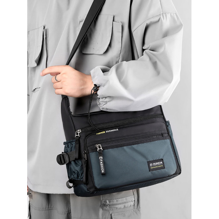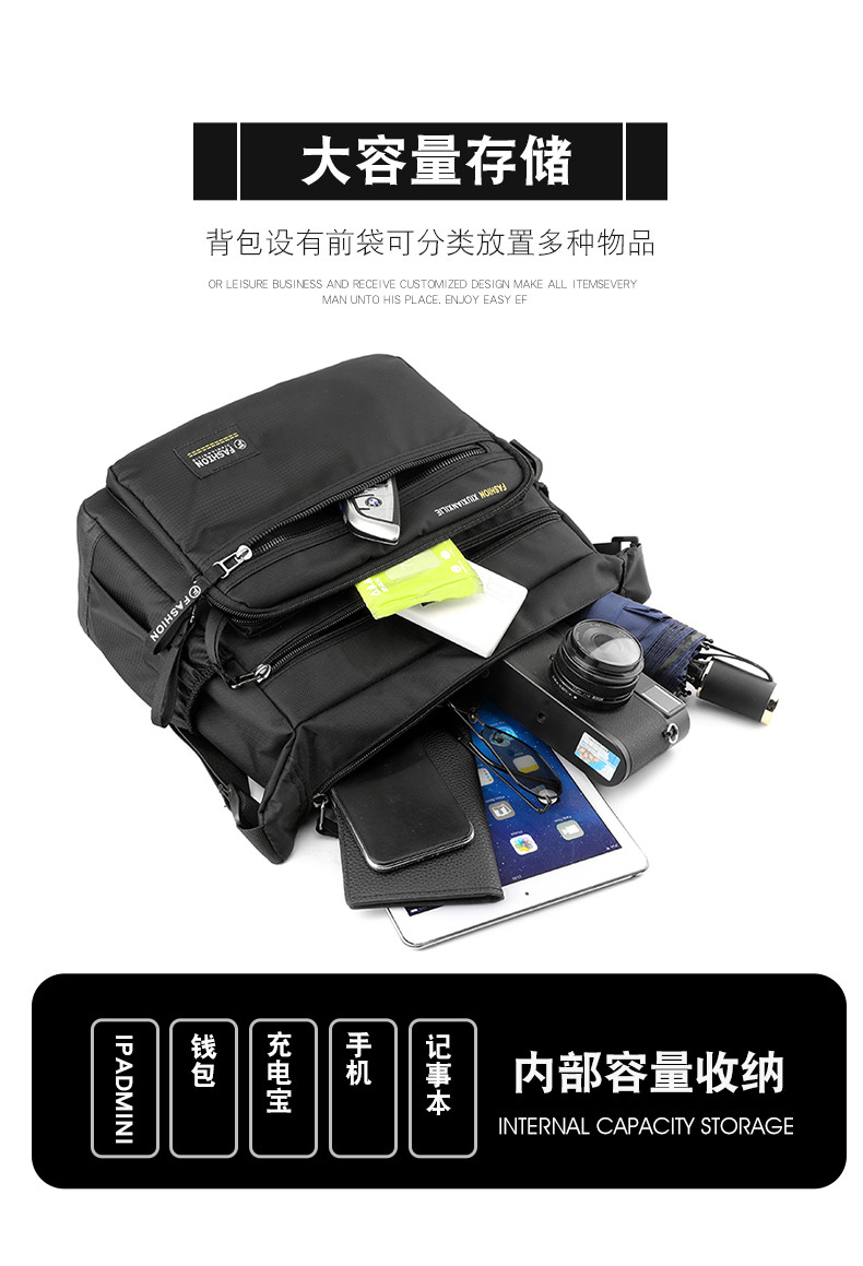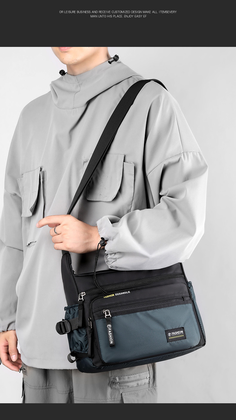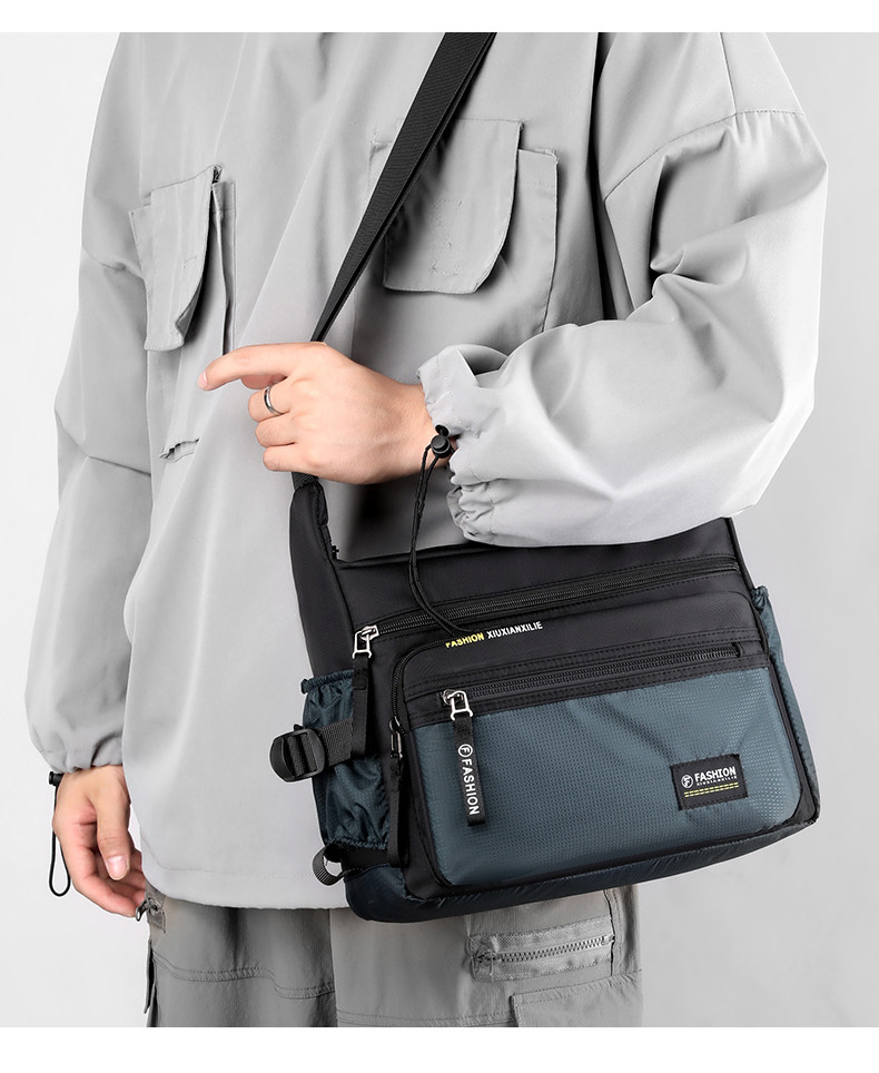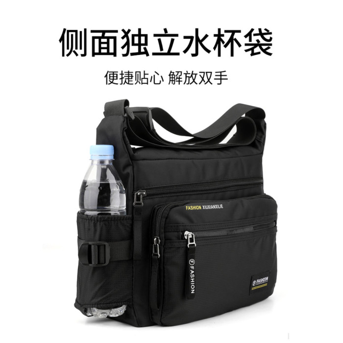 斜後後背包男大容量通勤包牛津布男包帶水杯位戶外徒步旅行爸爸單肩包
