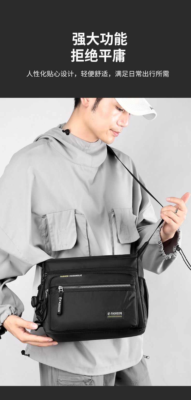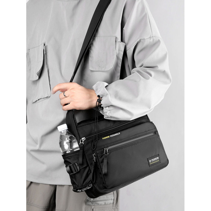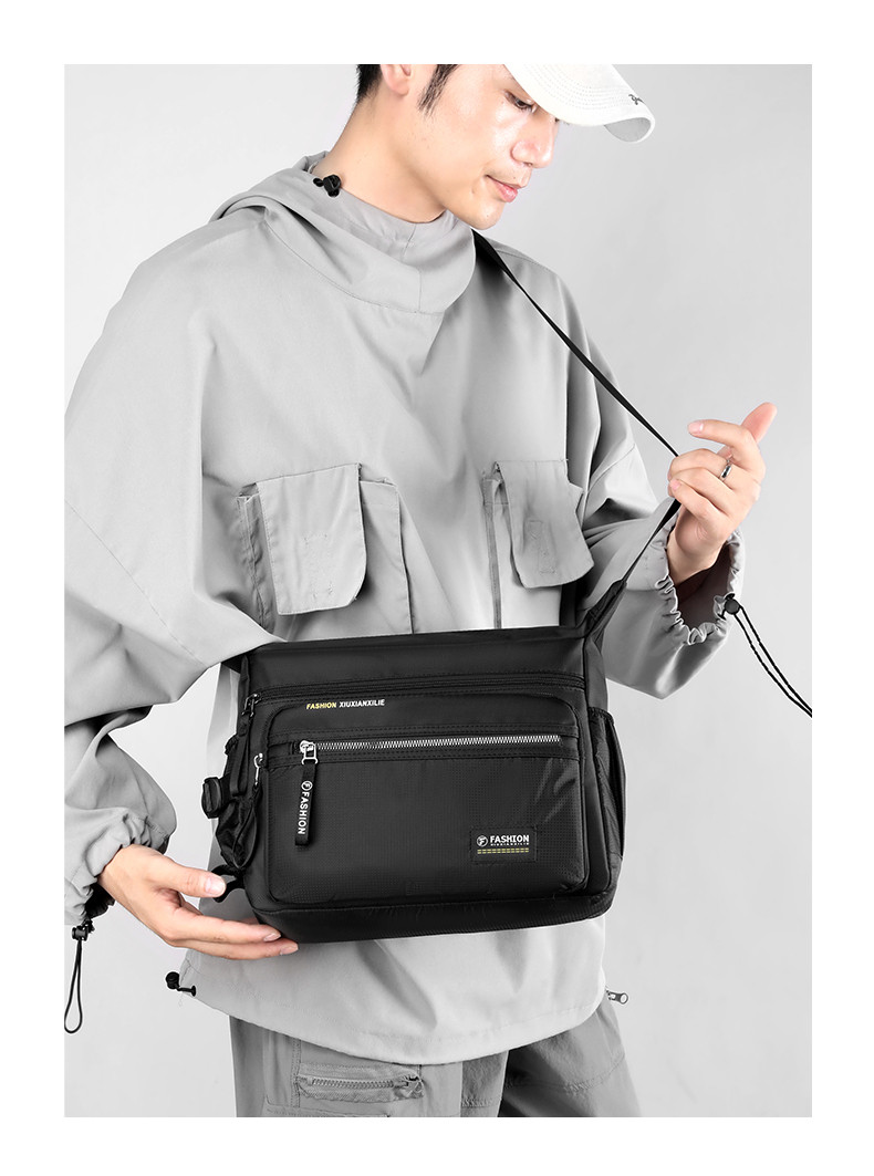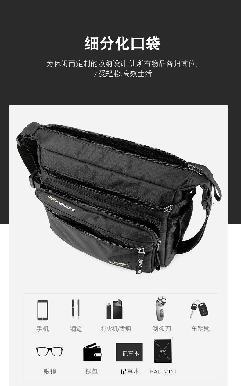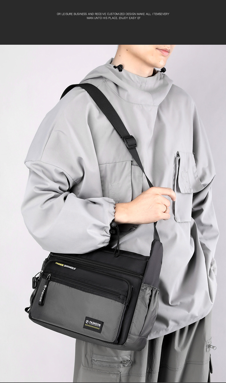 斜後後背包男大容量通勤包牛津布男包帶水杯位戶外徒步旅行爸爸單肩包
