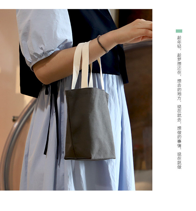 夏季手提小布袋馬卡龍清新帆布手拎水杯套鑰匙雨傘收納水桶小包包