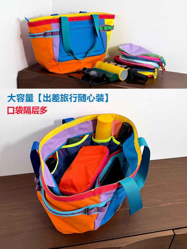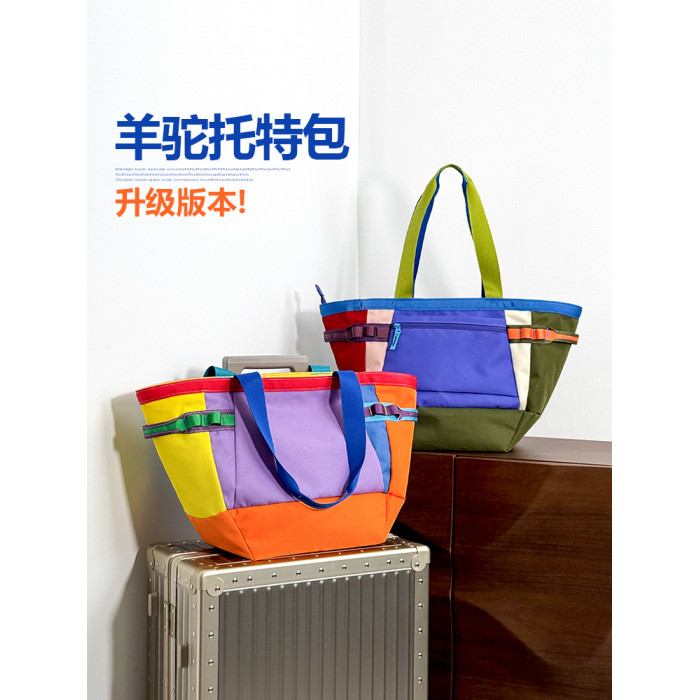 古笛多巴胺配色羊駝拉鍊大容量托特包單肩手提包女新款通勤旅行包