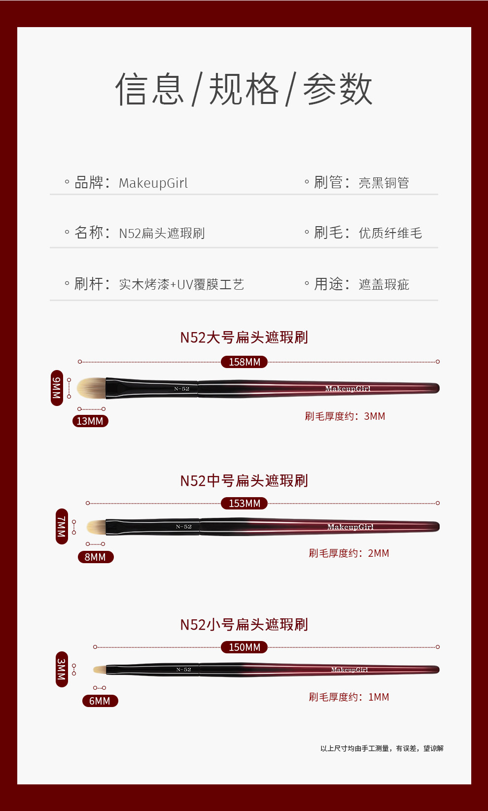 品名 硃釉N52扁頭遮瑕刷