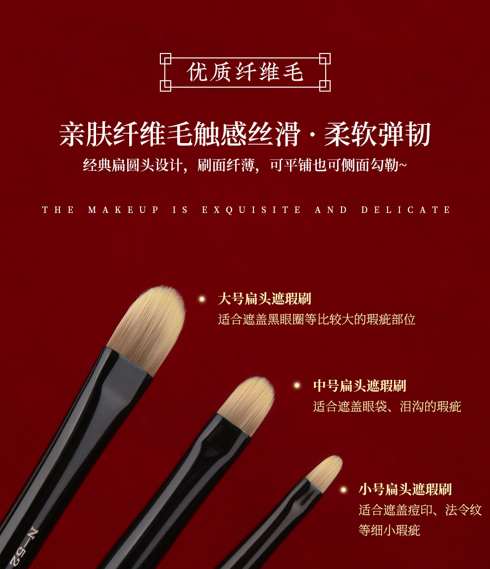 魅女郎硃釉N52扁頭遮瑕刷細節淚溝法令紋痘印無痕舌形遮暇化妝刷