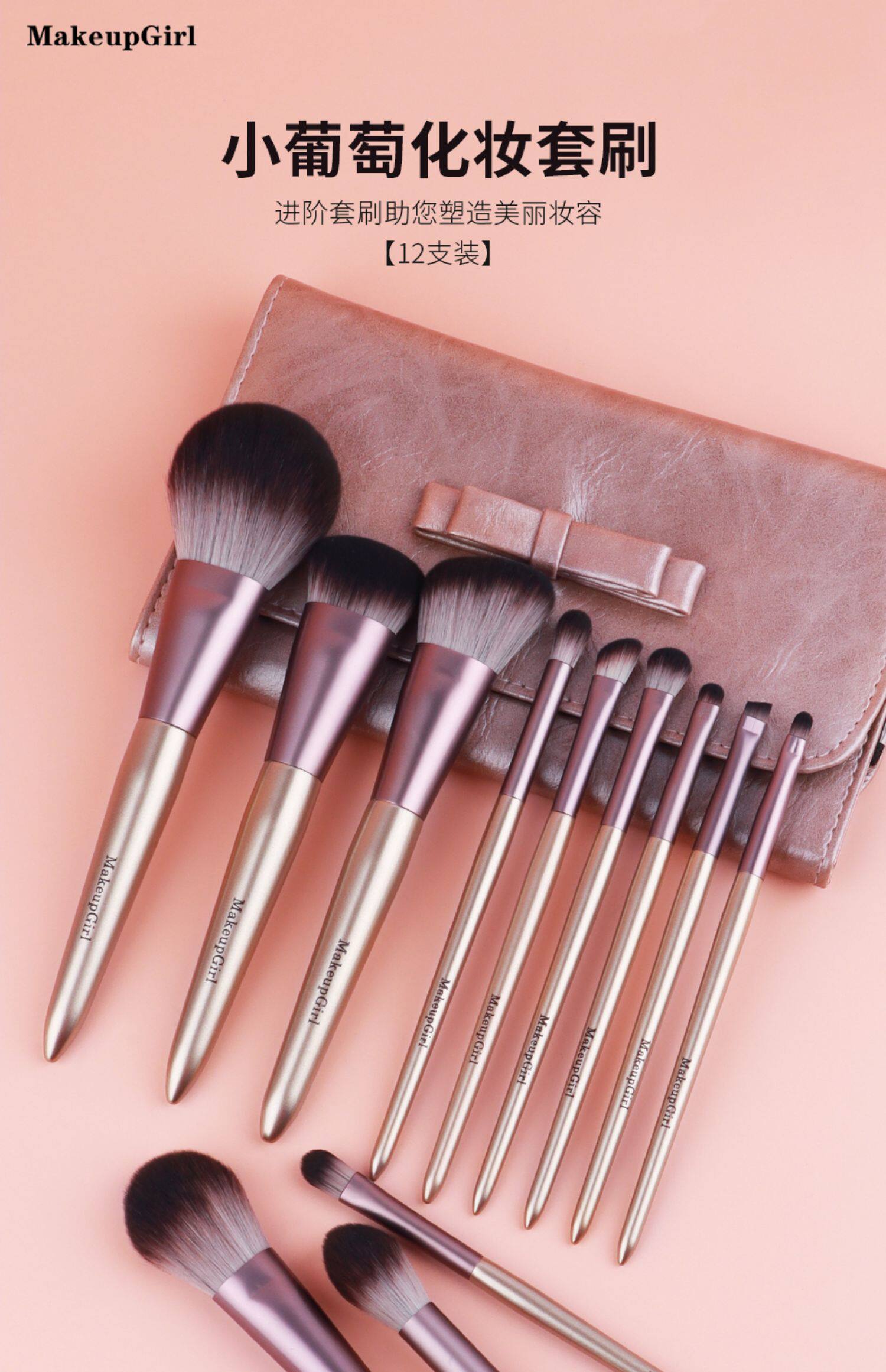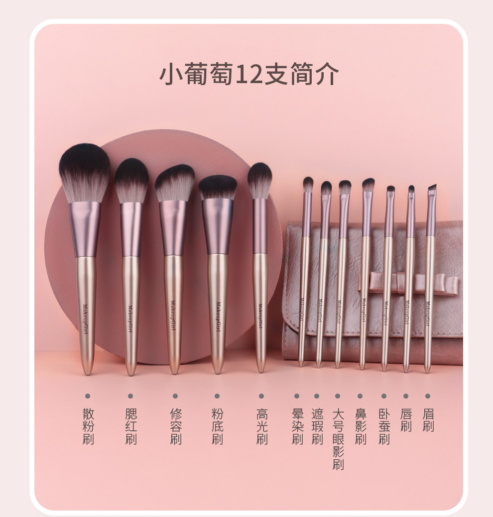 魅女郎12支小葡萄化妝刷套裝滄州套刷初學者全套網紅眼影刷散粉刷