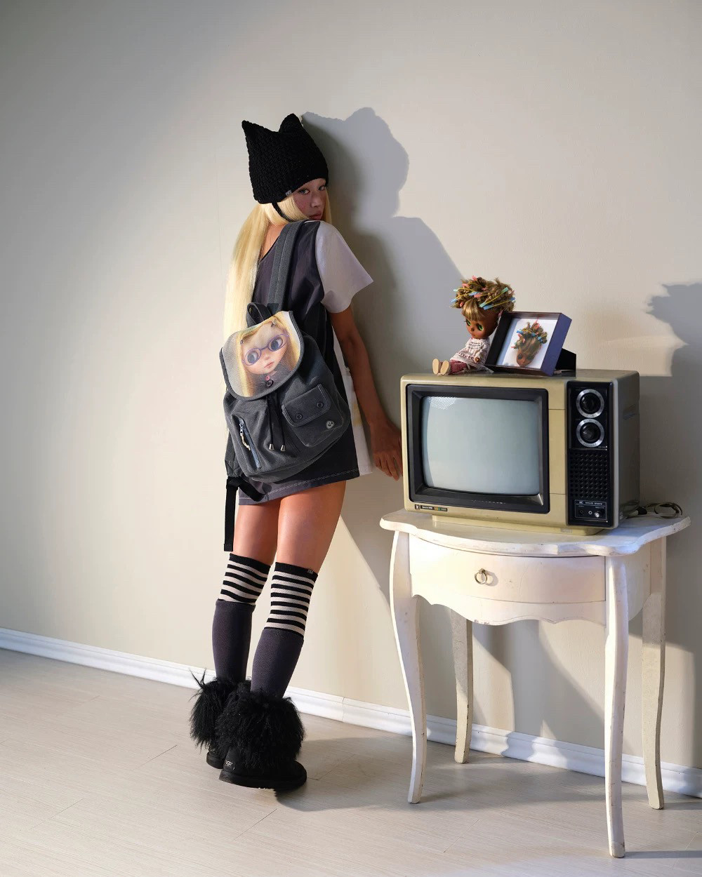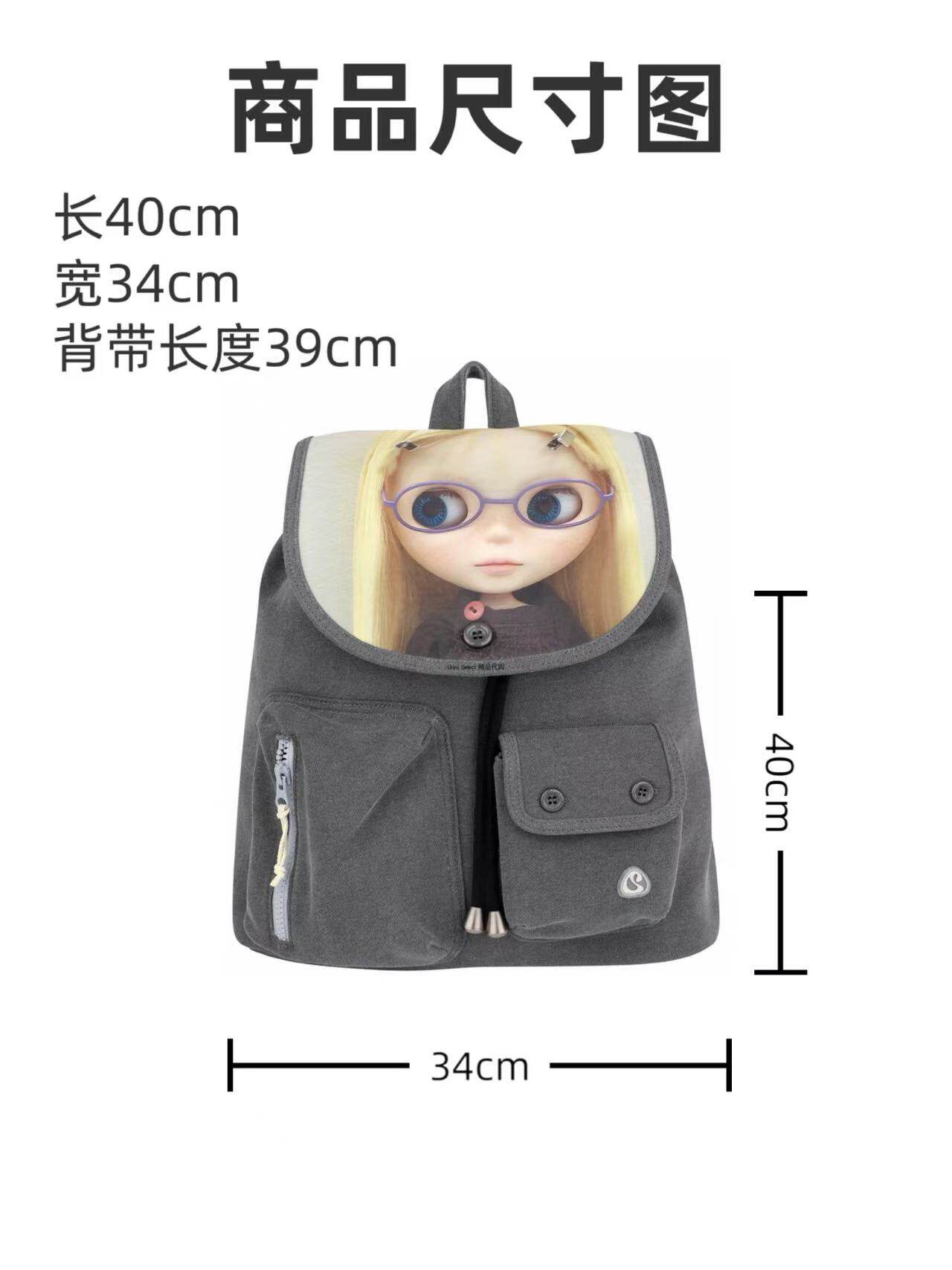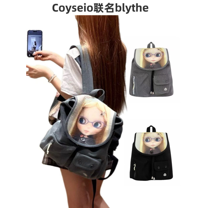 韓國新款coyseio聯名blythe雙肩包可愛卡通娃娃大容量繙蓋釦書包