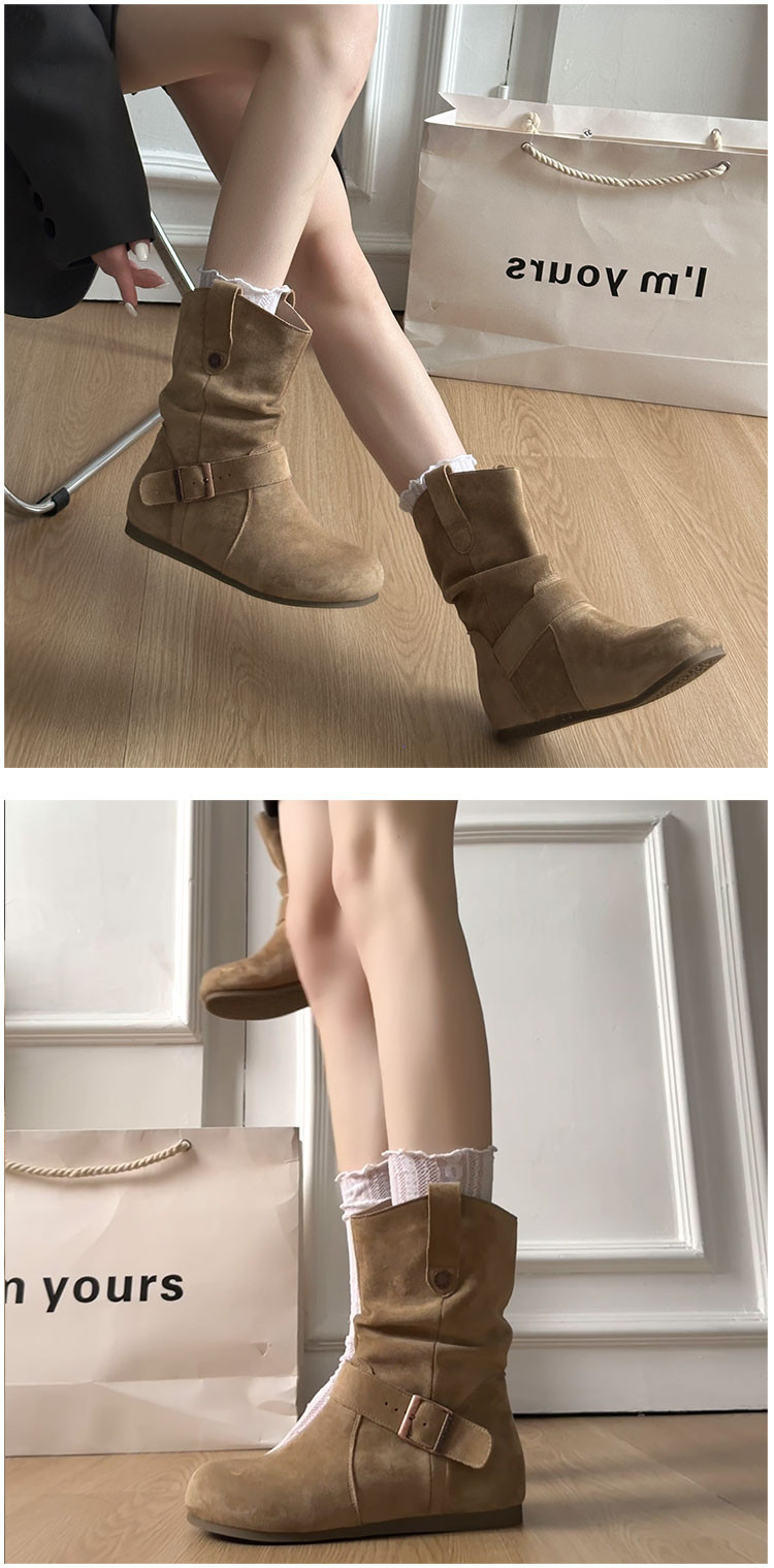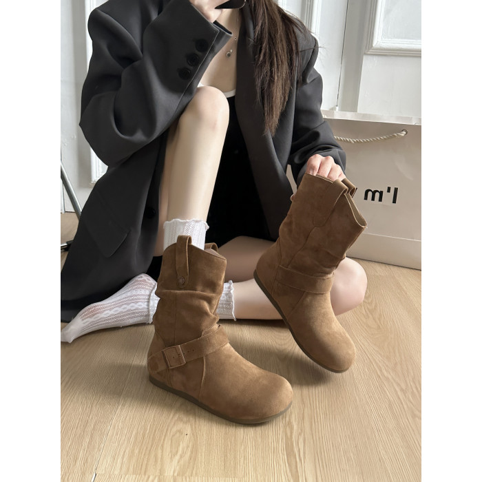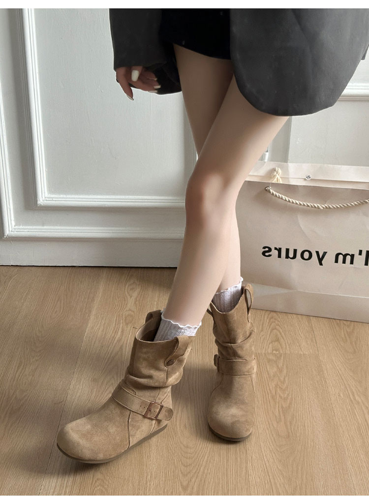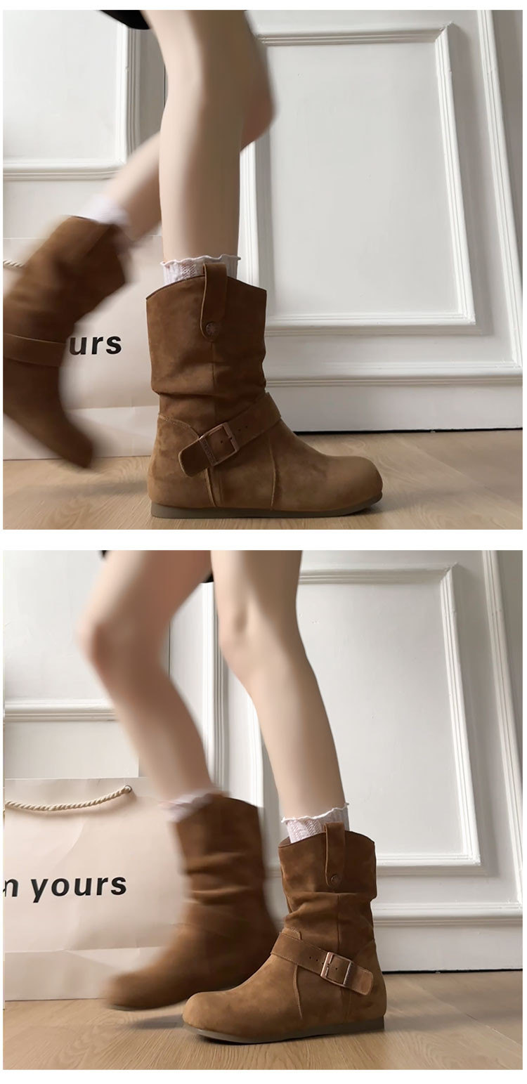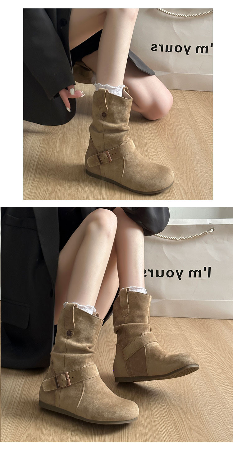 復古內增高勃肯短靴女2025年新款秋季馬丁靴百搭顯瘦配裙子堆堆靴