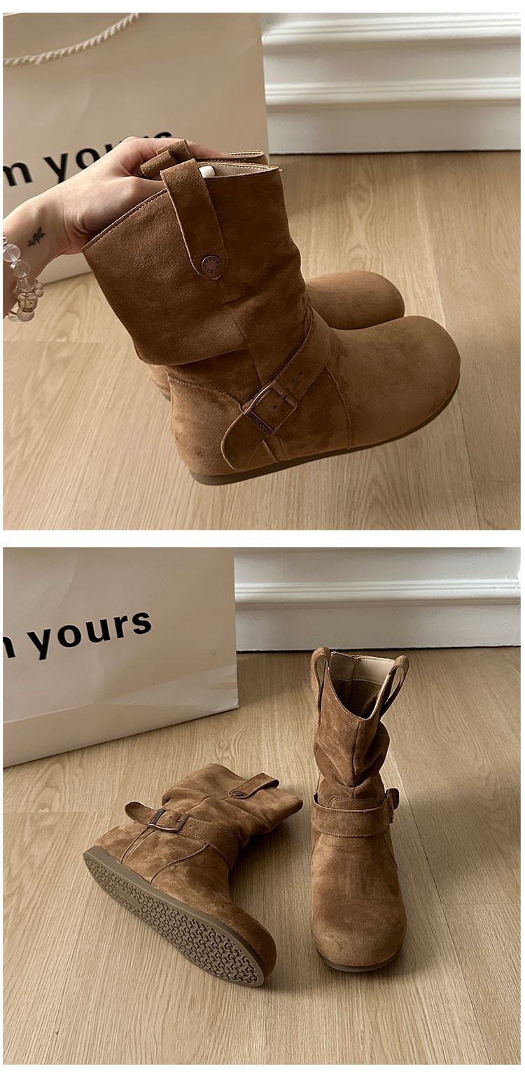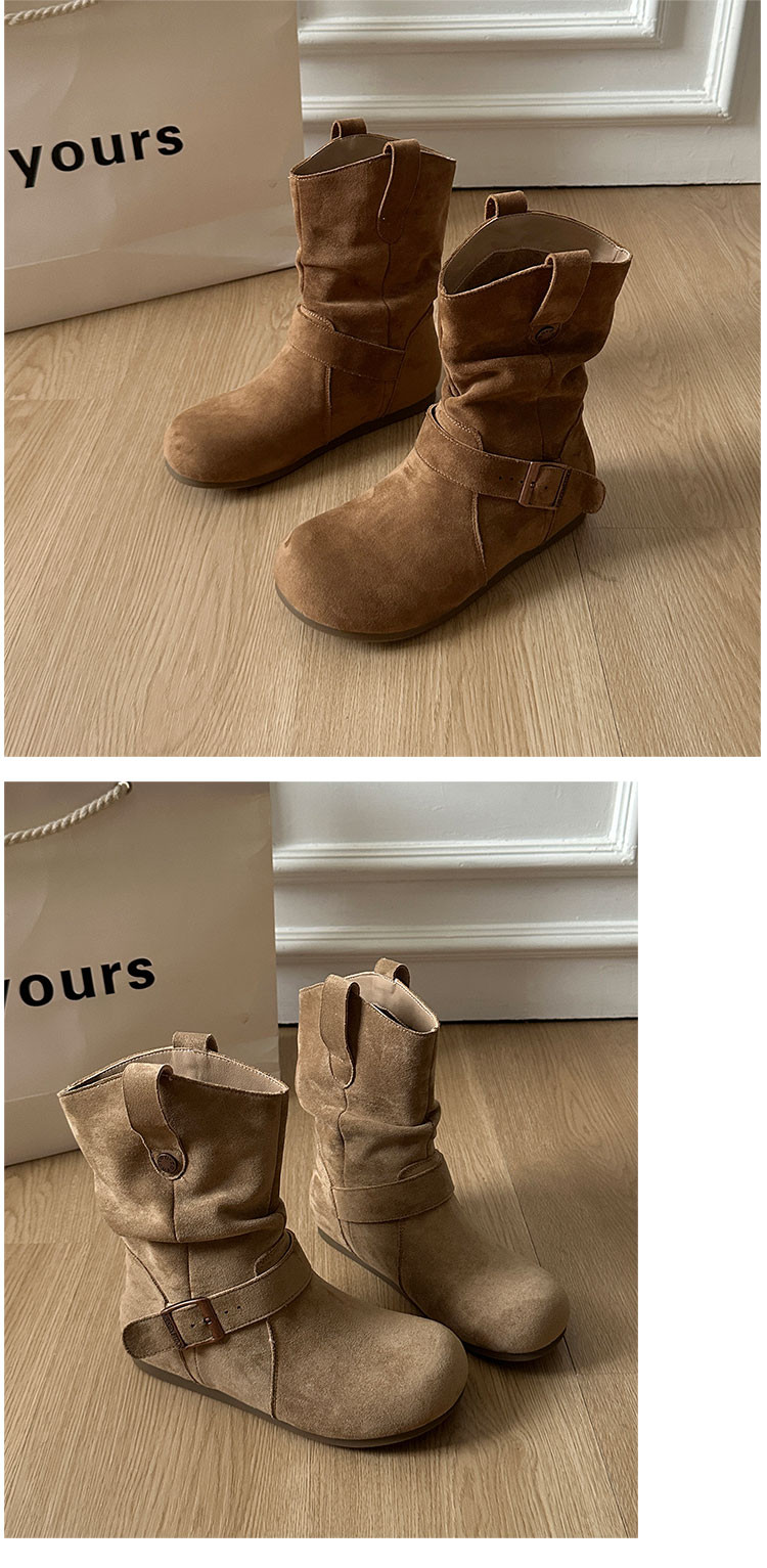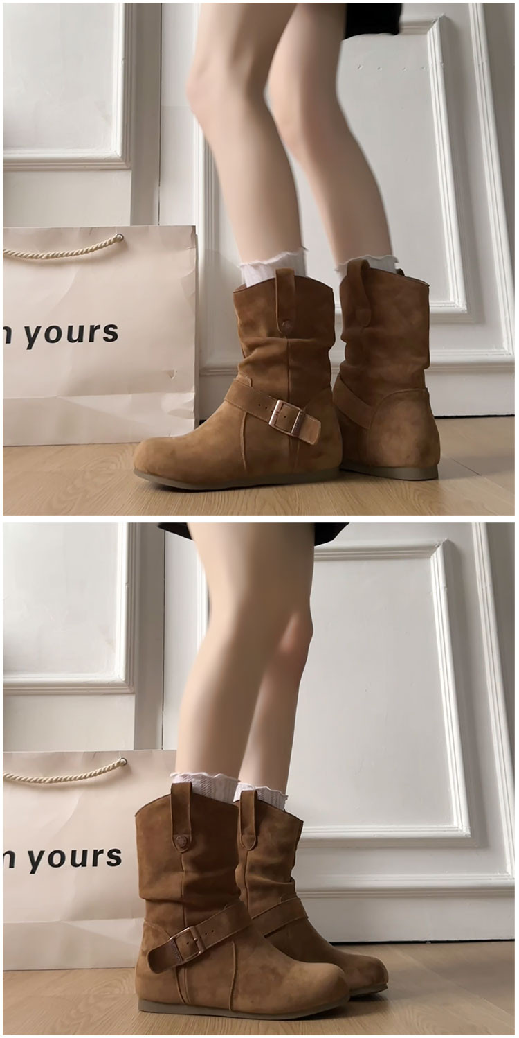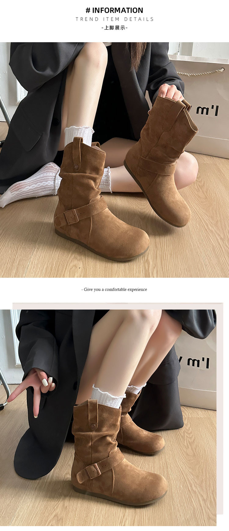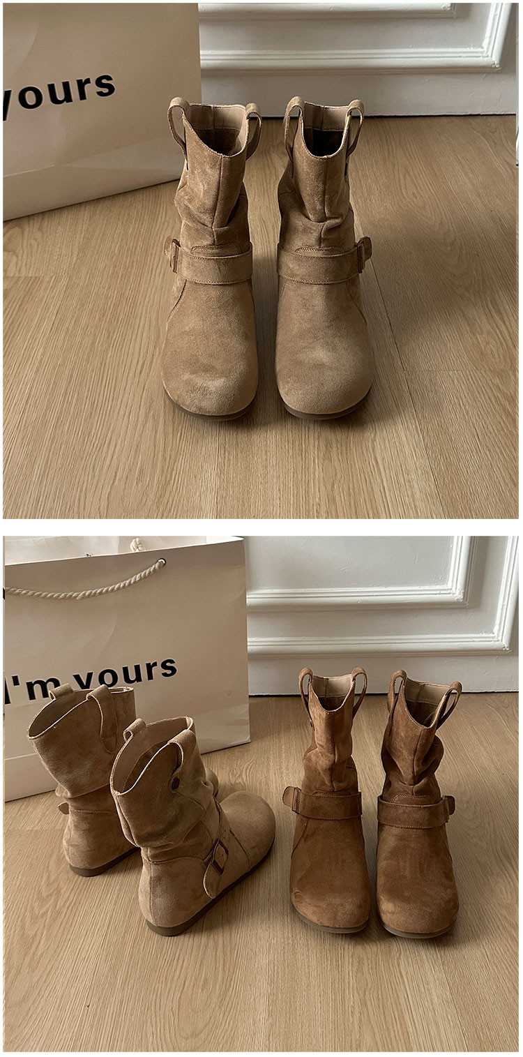 復古內增高勃肯短靴女2025年新款秋季馬丁靴百搭顯瘦配裙子堆堆靴