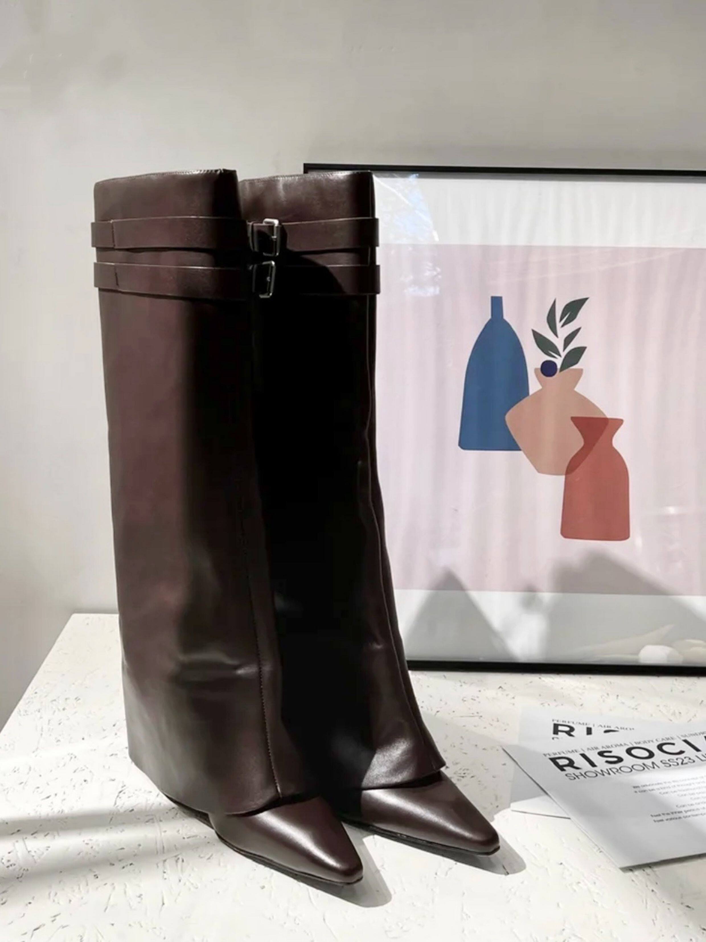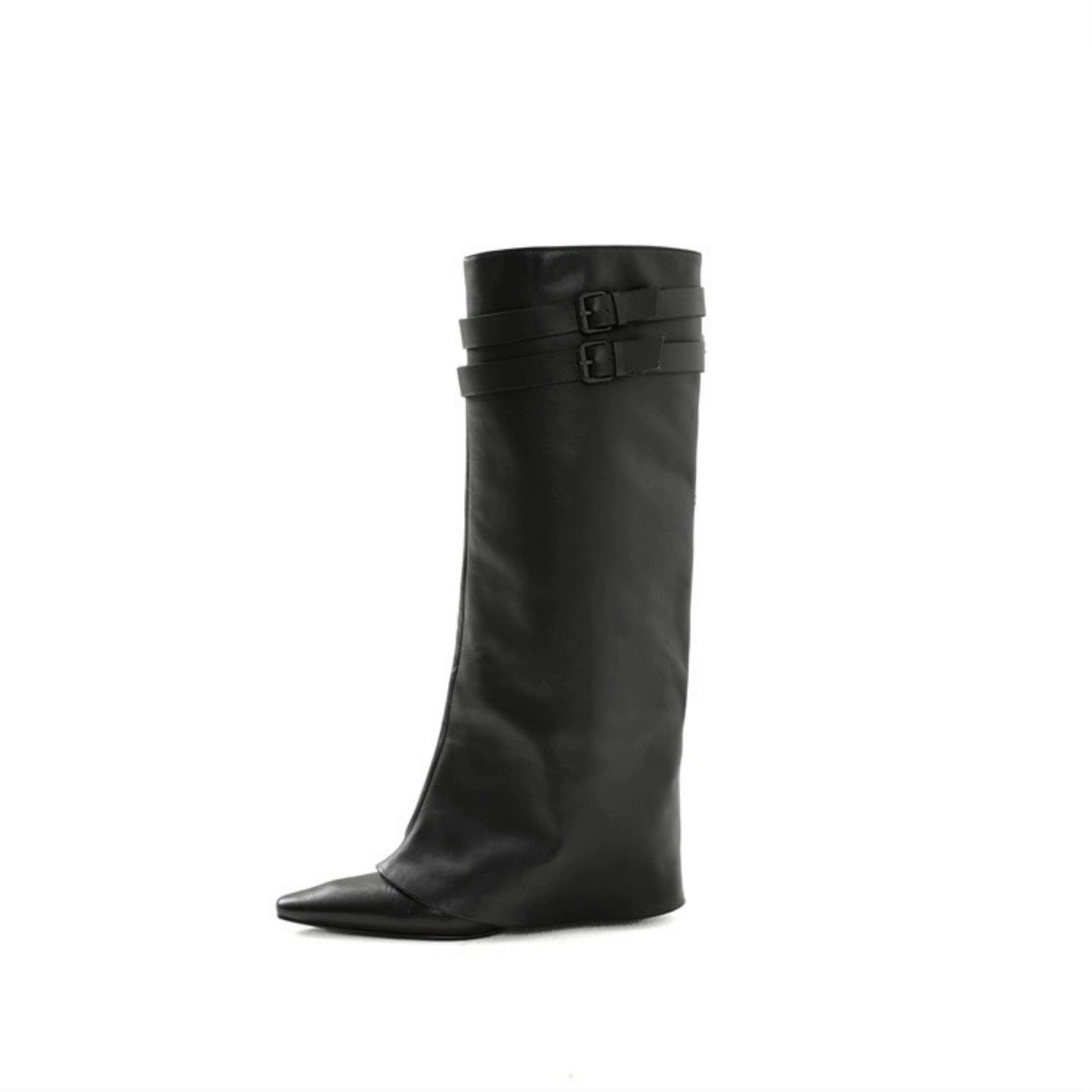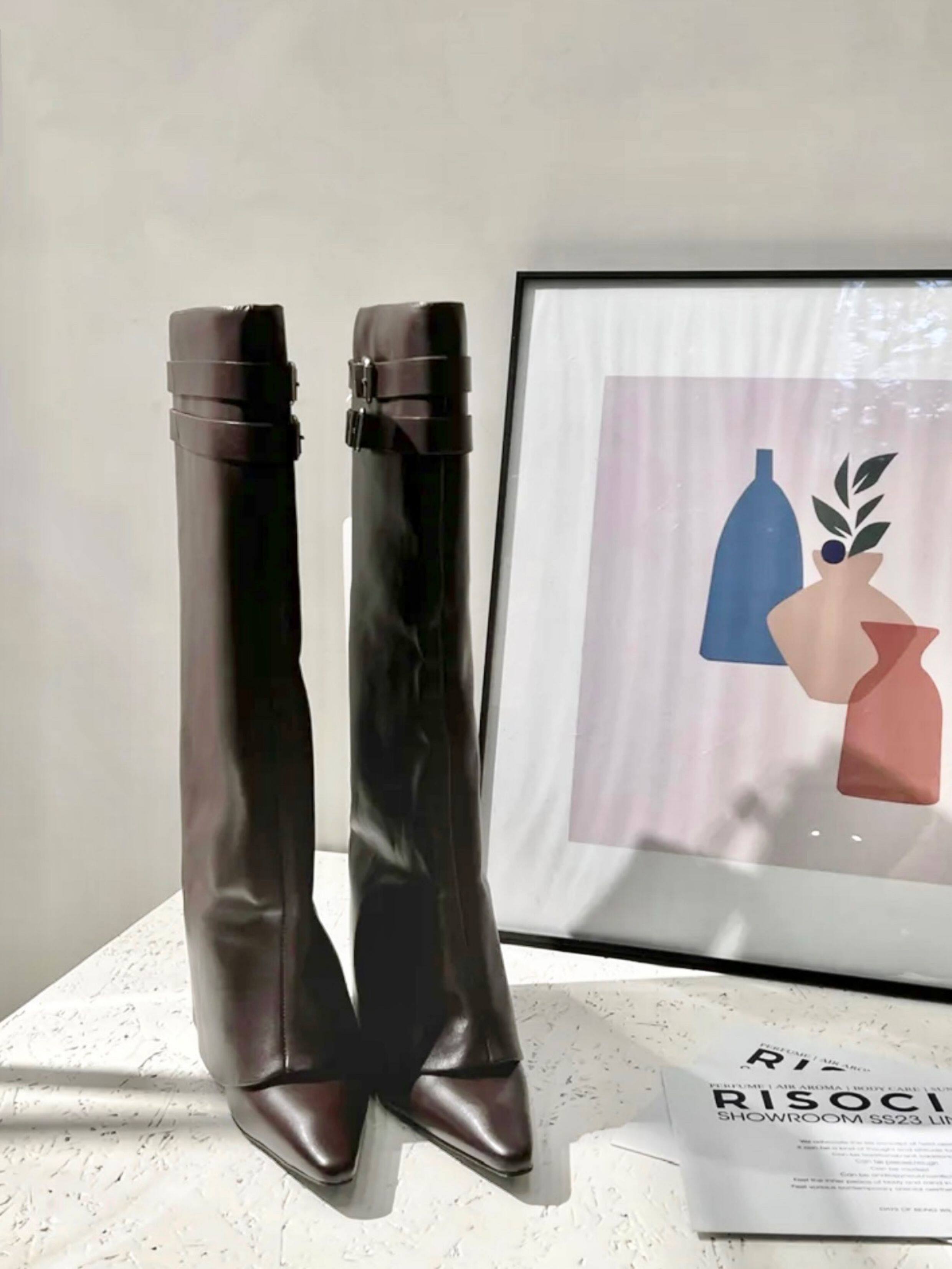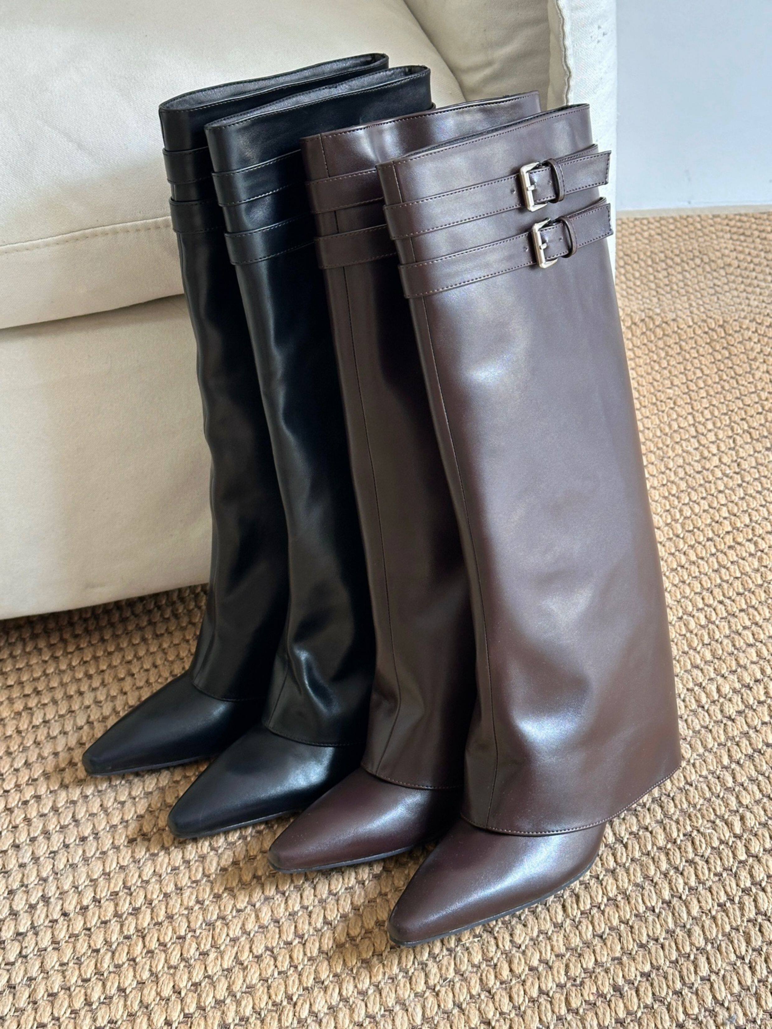 小衆設計細跟尖頭褲琯靴2026春夏新款百搭復古高跟長筒靴女不過膝