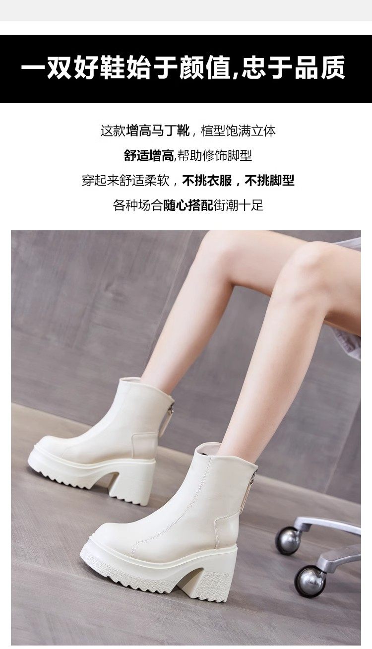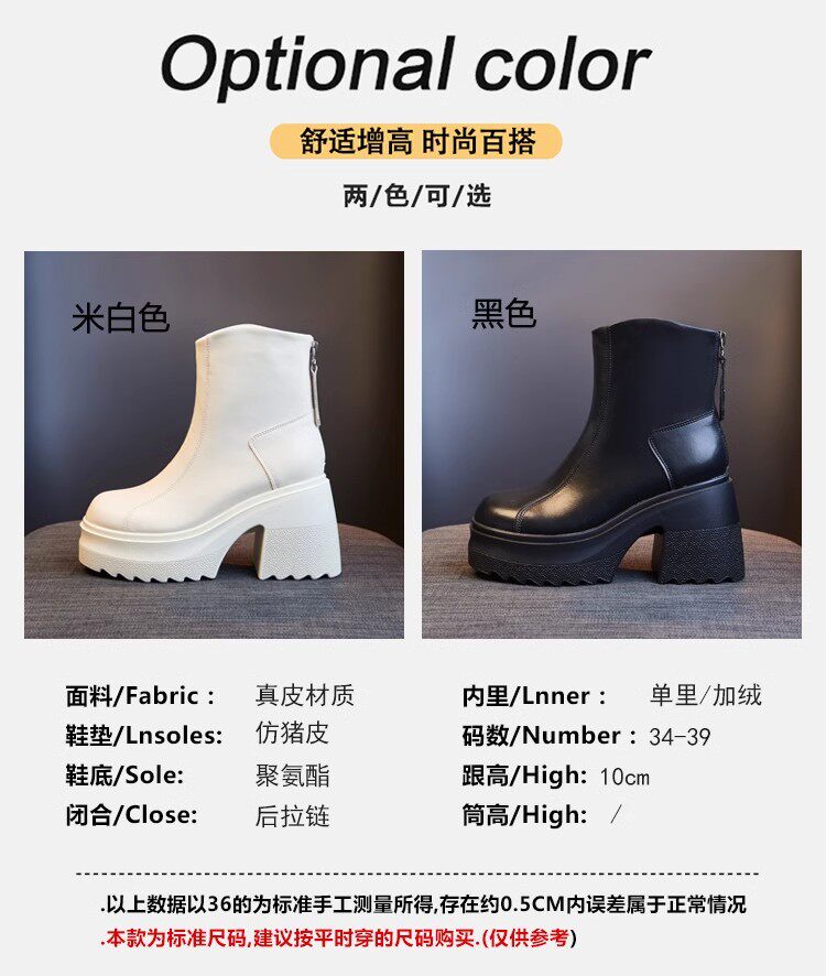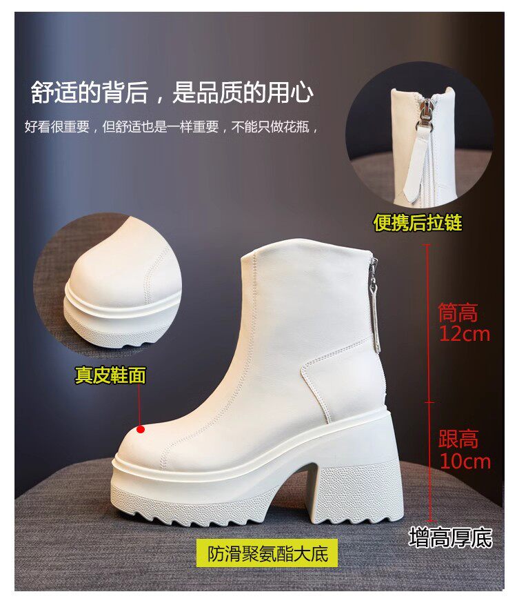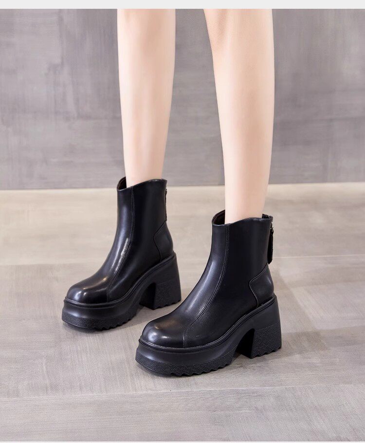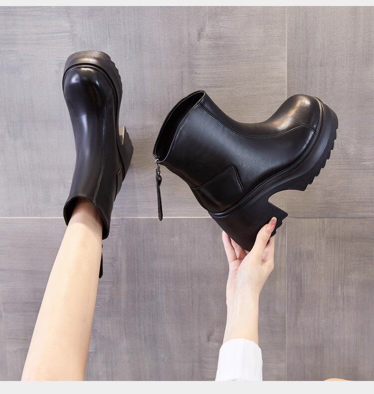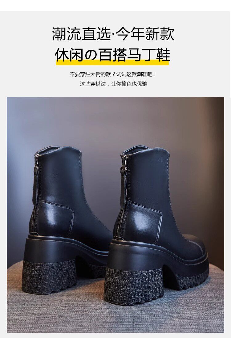 真皮馬丁靴女中筒2025新款小個子厚底高跟鞋秋冬加絨粗跟短靴顯瘦
