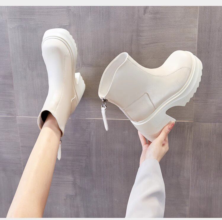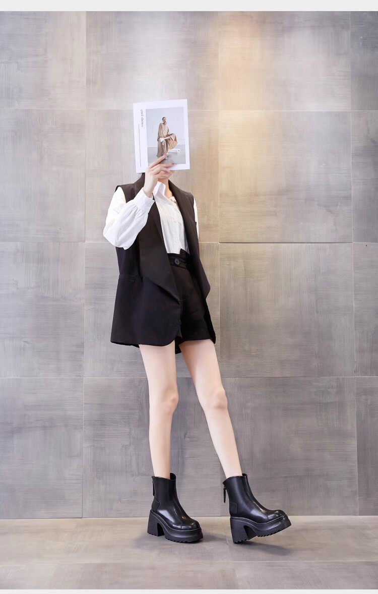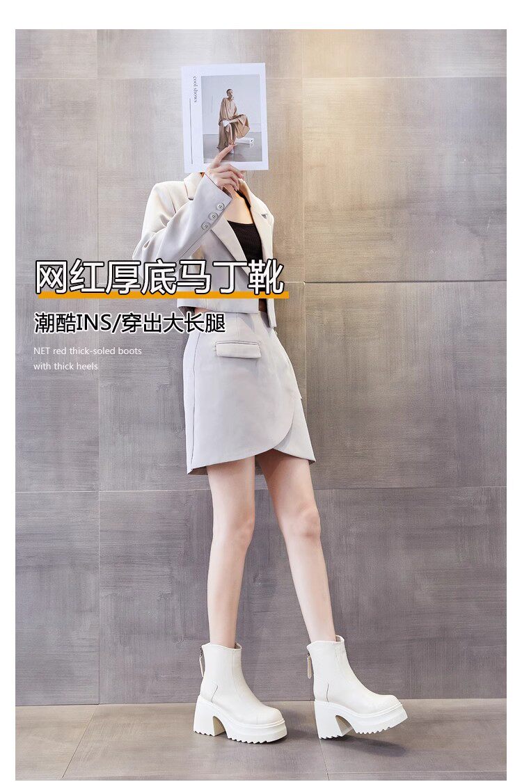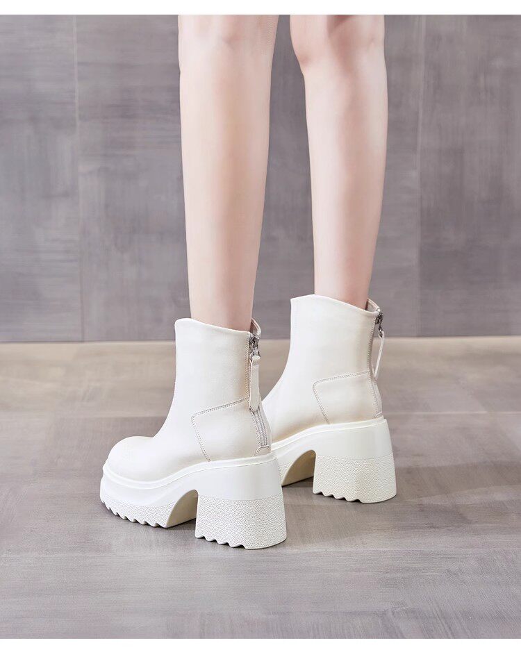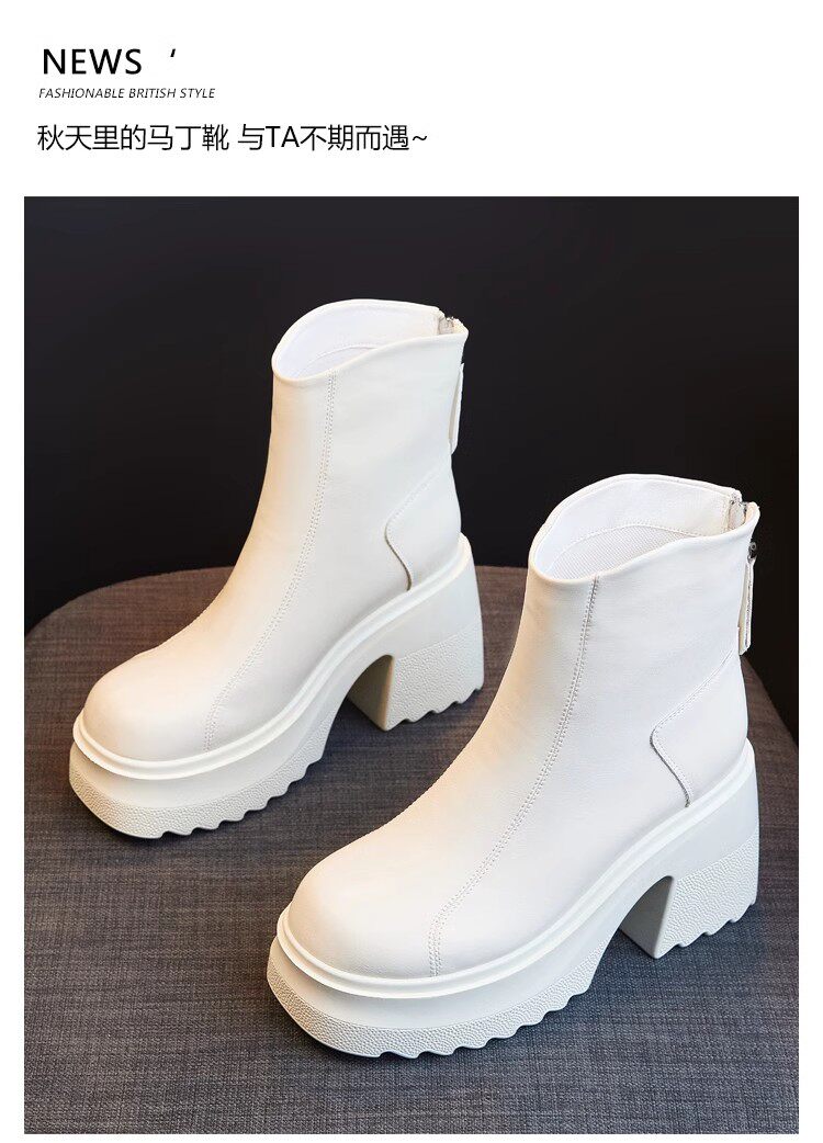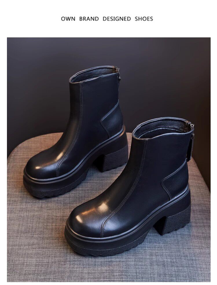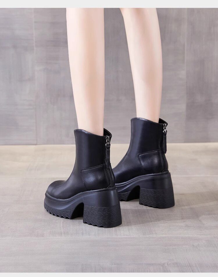 真皮馬丁靴女中筒2025新款小個子厚底高跟鞋秋冬加絨粗跟短靴顯瘦
