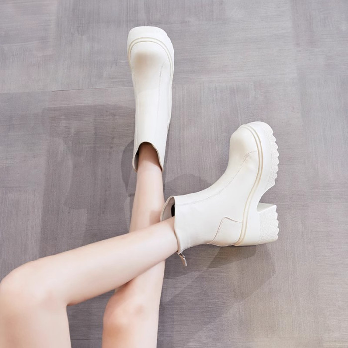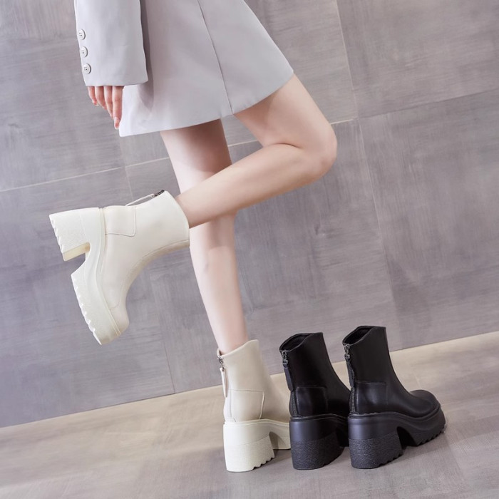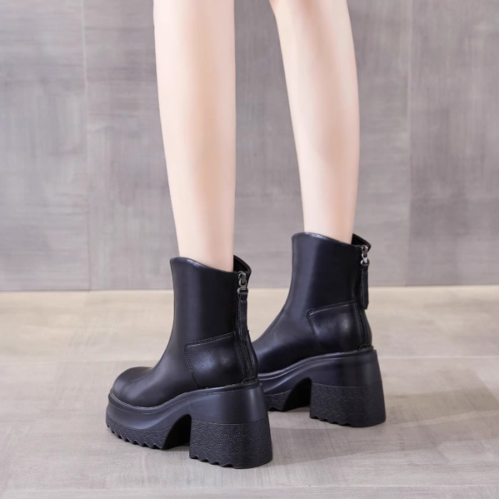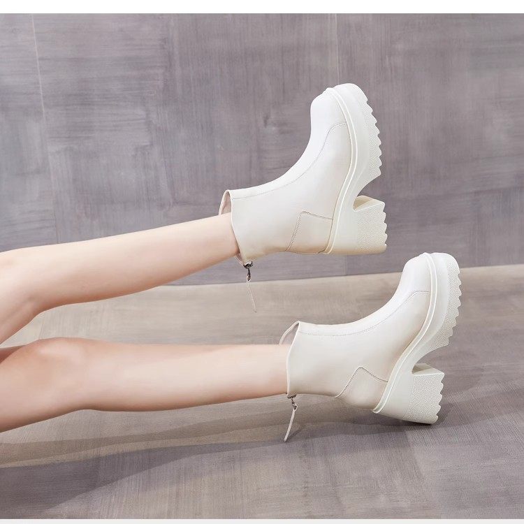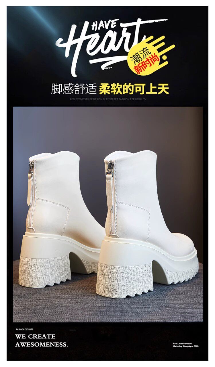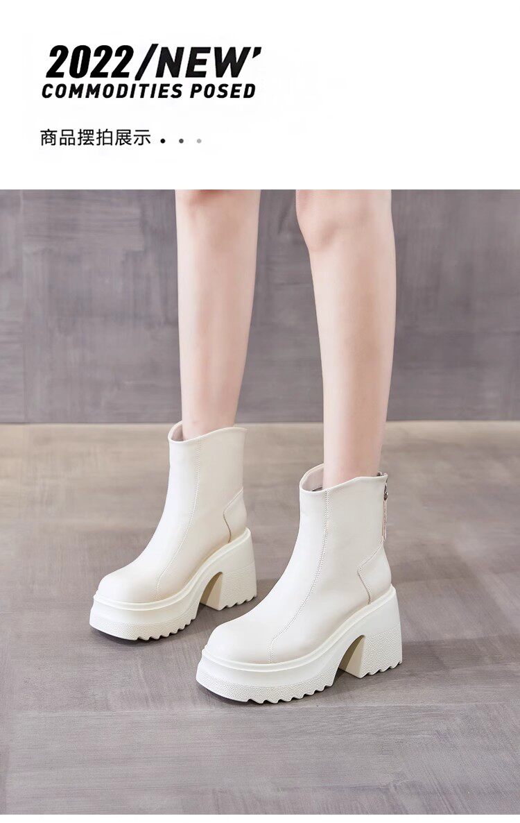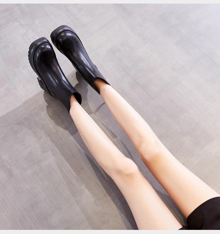 真皮馬丁靴女中筒2025新款小個子厚底高跟鞋秋冬加絨粗跟短靴顯瘦