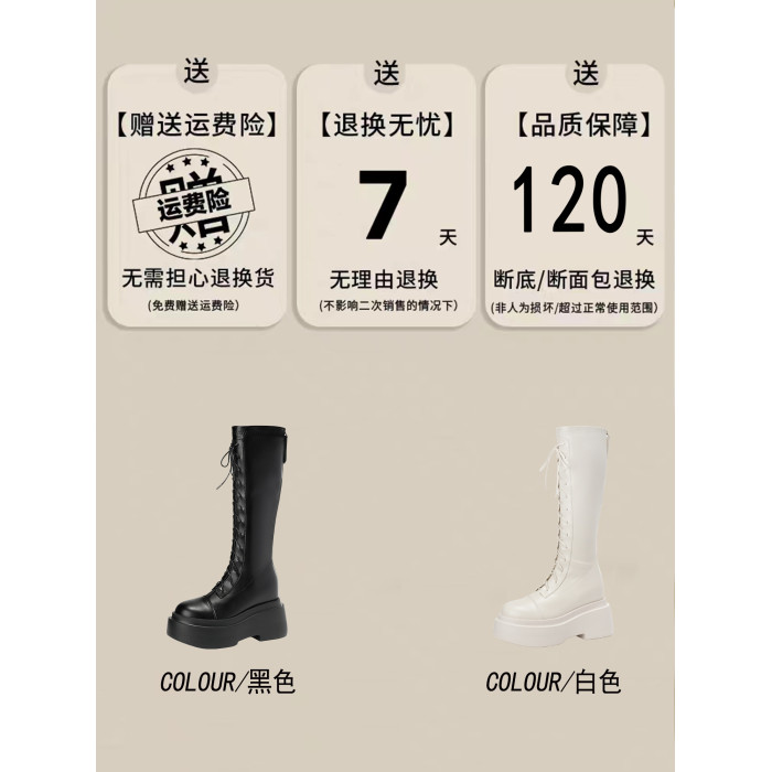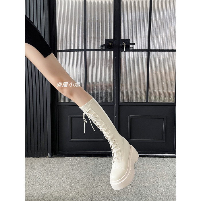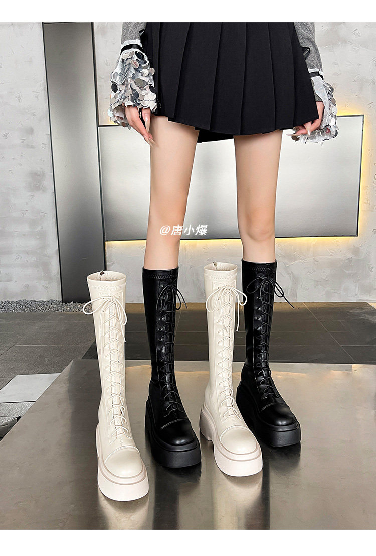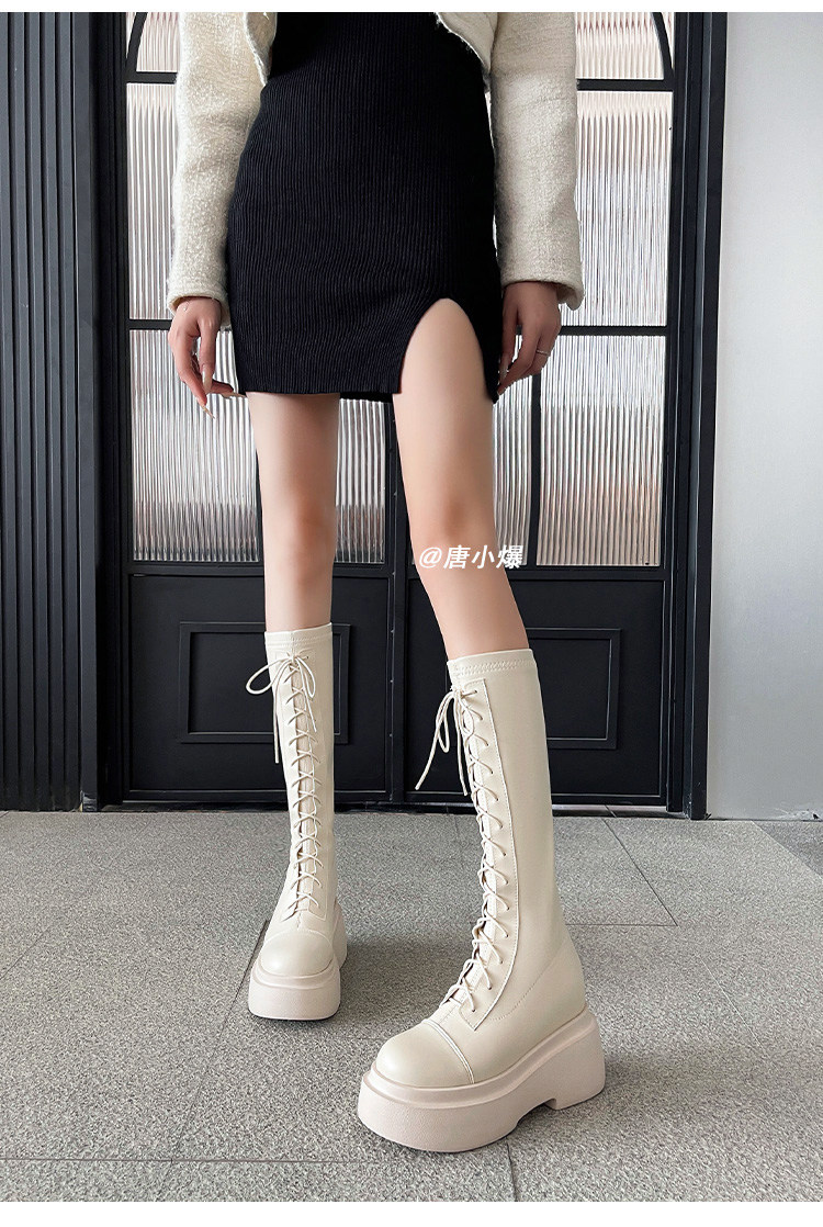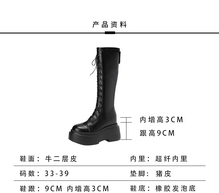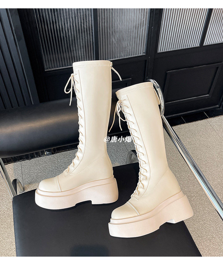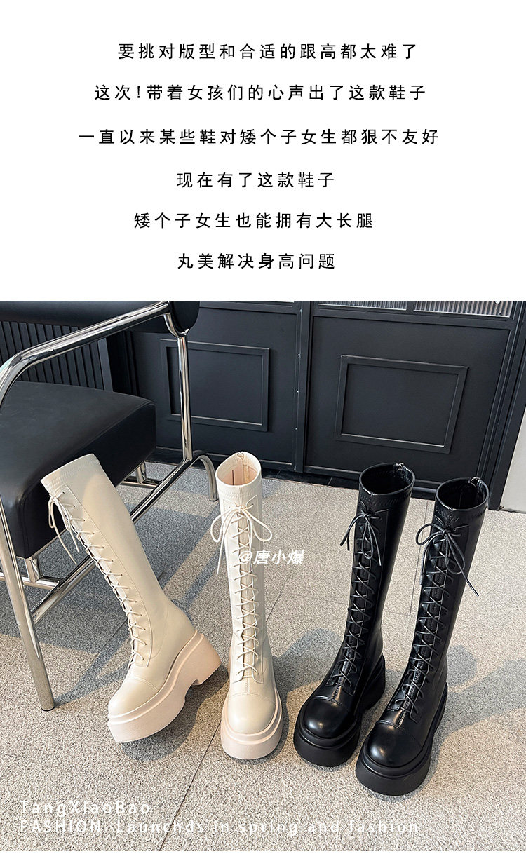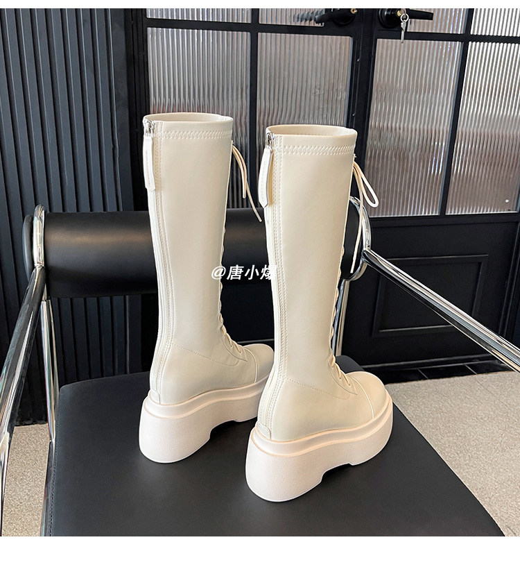 松糕厚底12cm長筒靴女小個子2025爆款不過膝白色瘦瘦靴長靴內增高